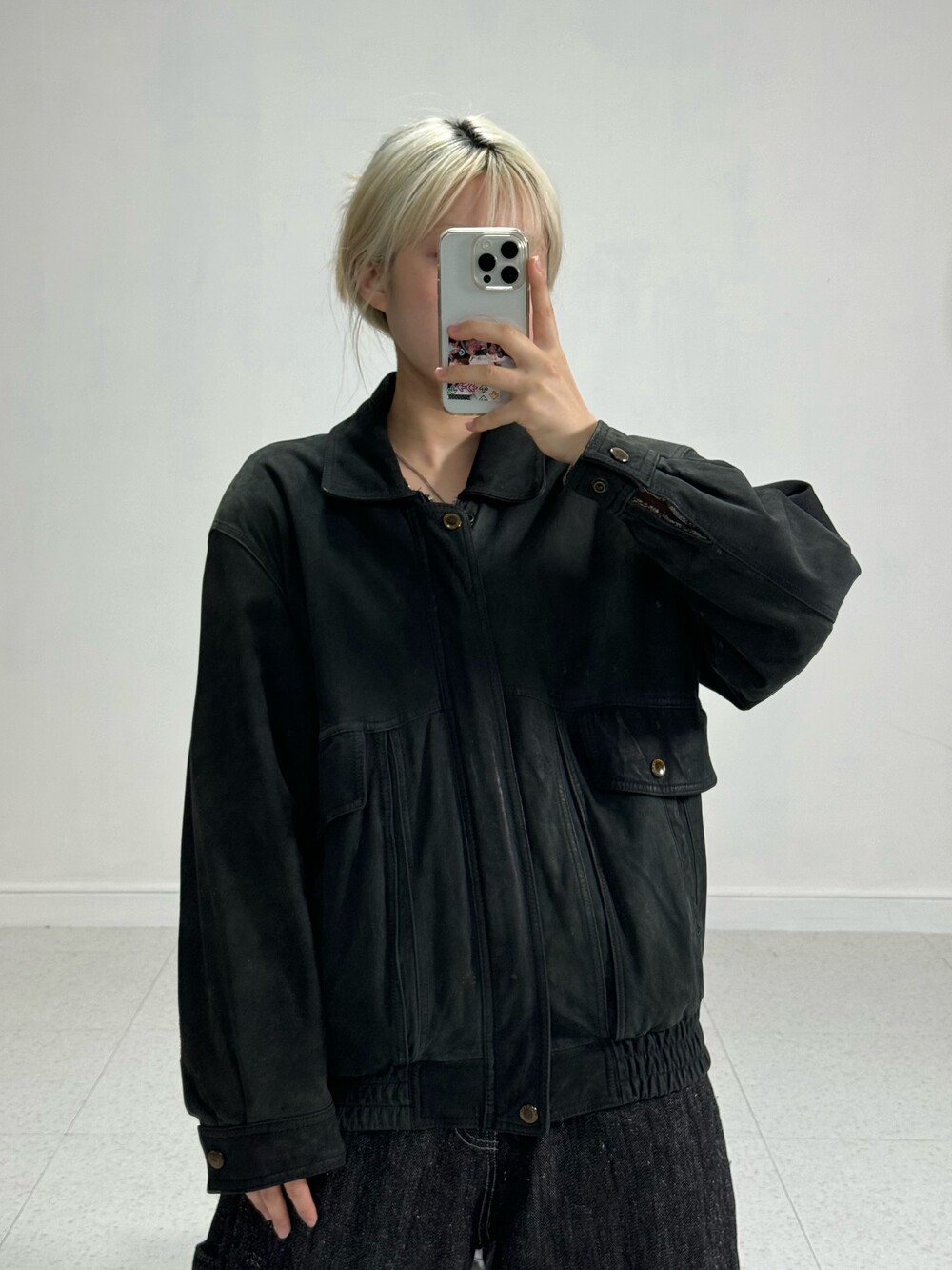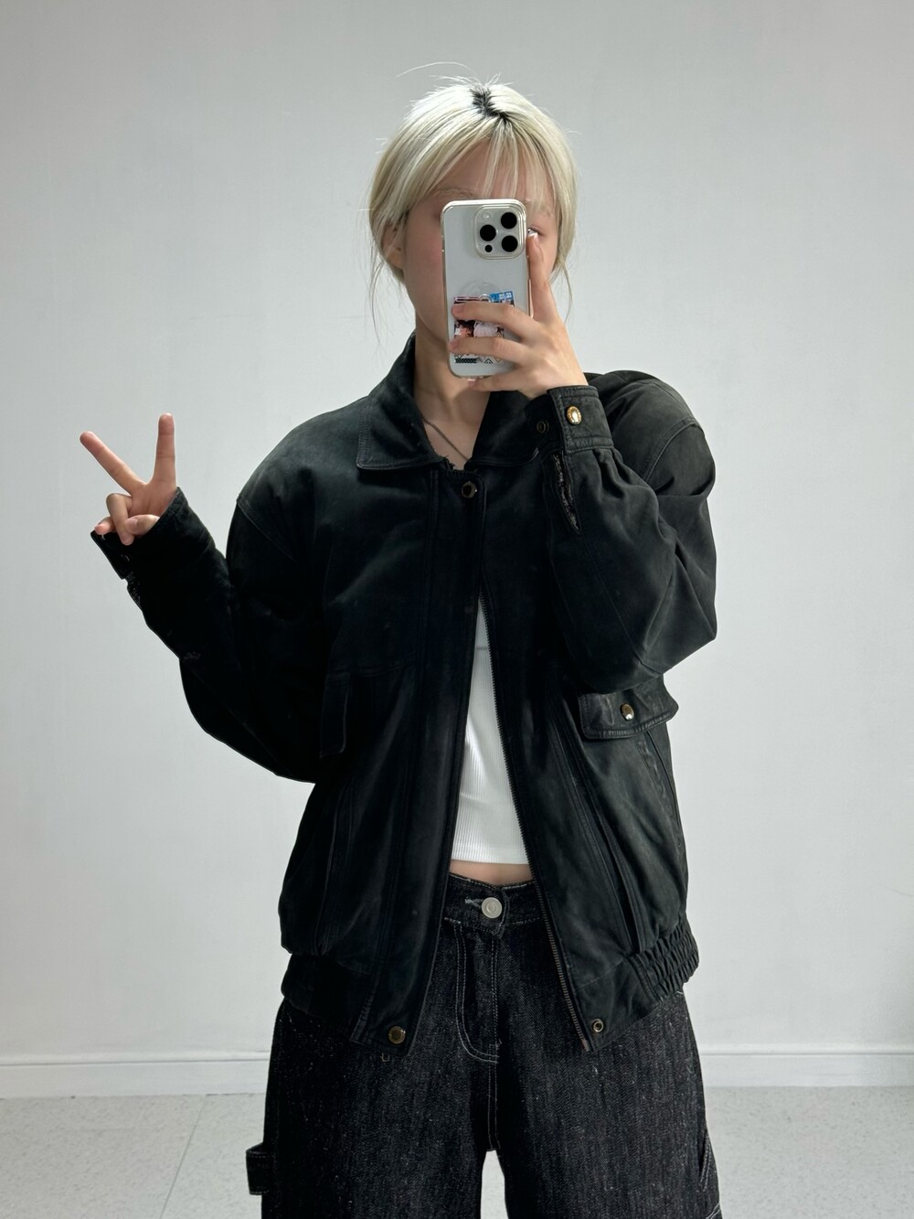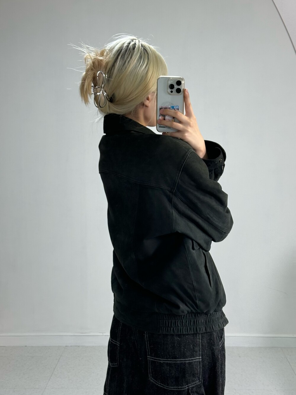 •흔하지 않은 양가죽 질감이랄까요!! 살짝 스웨이드 느낌도 나서 예쁘다 생각했는데!! 양가죽이라해서 더욱 놀랐던 봄버 자켓이랍니다.. 완전 희귀템이에요! 묵직한 핏감이 정말 사랑스러운 제품이랍니다 🖤