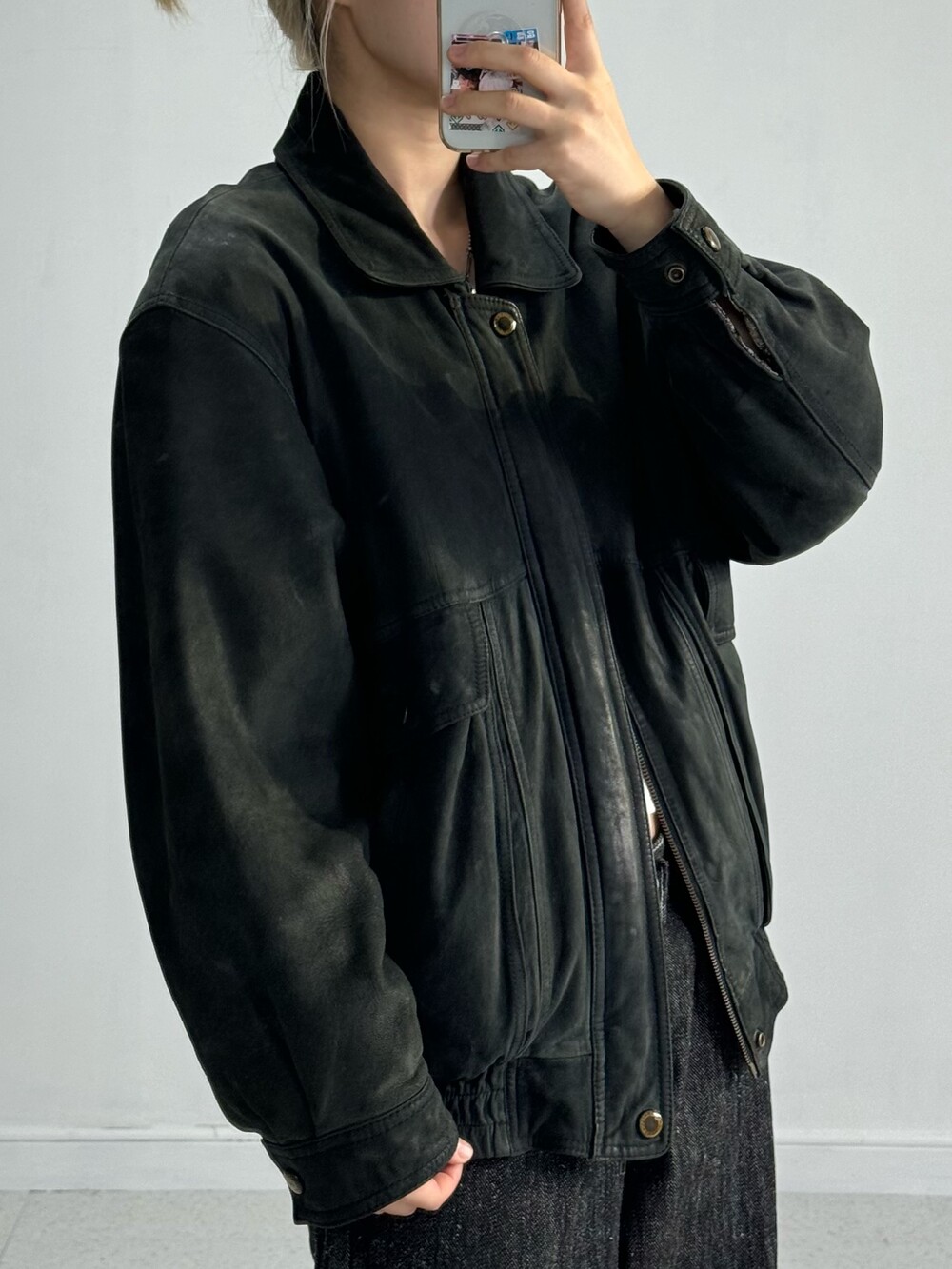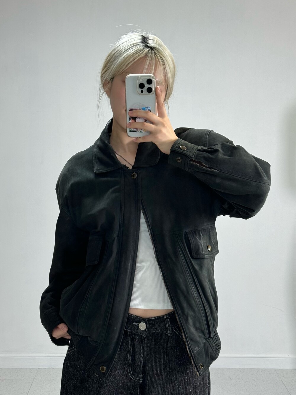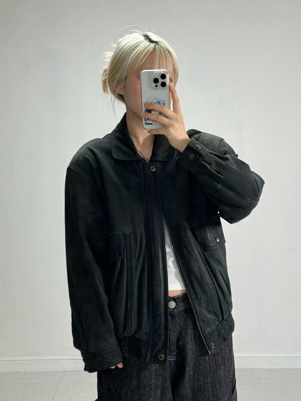 •흔하지 않은 양가죽 질감이랄까요!! 살짝 스웨이드 느낌도 나서 예쁘다 생각했는데!! 양가죽이라해서 더욱 놀랐던 봄버 자켓이랍니다.. 완전 희귀템이에요! 묵직한 핏감이 정말 사랑스러운 제품이랍니다 🖤