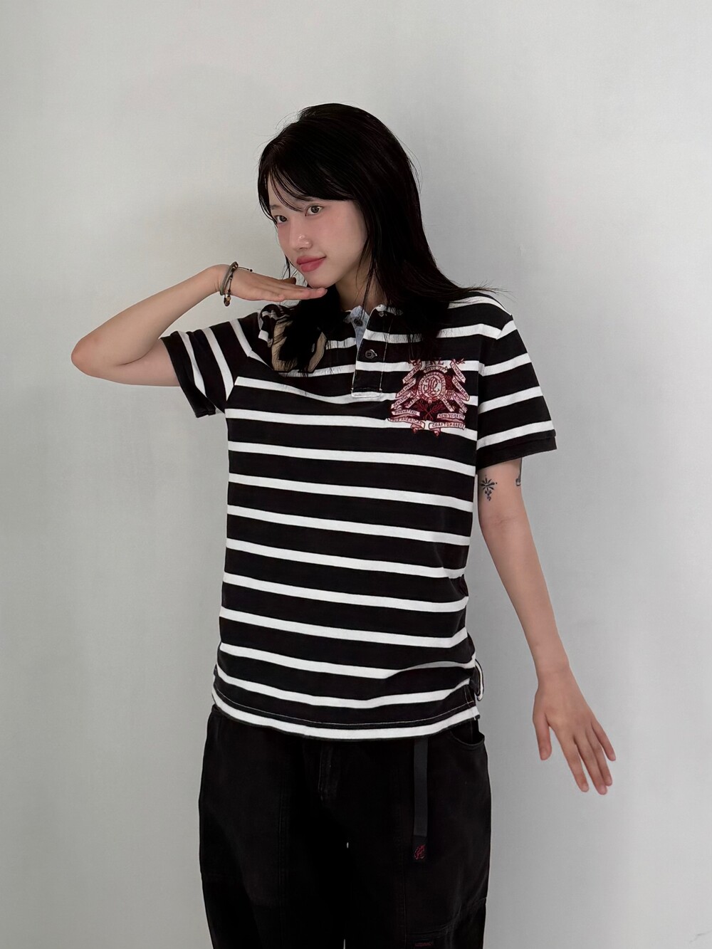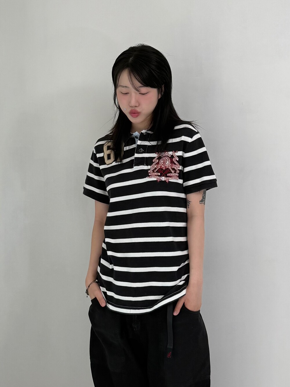 •폴로 스트라이프 pk 티셔츠 입니다! 블랙 앤 화이트 조합으로 깔끔하게 입어주시기 좋습니다ㅎㅎ