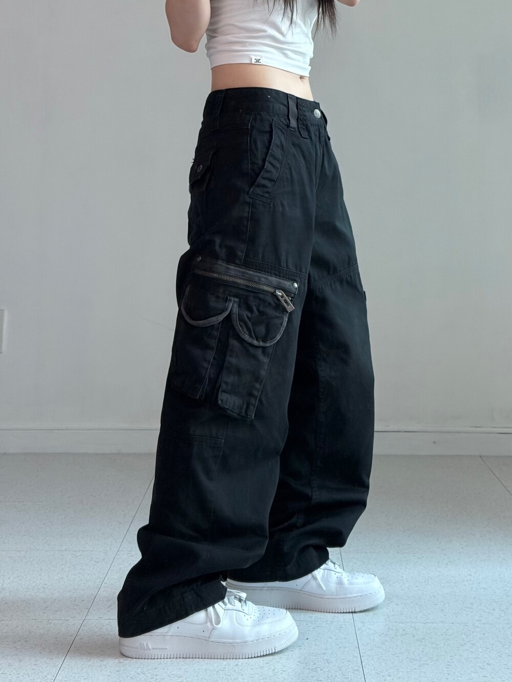 •귀여운 포켓 들어가있는거 봐주세요>_<! 사계절 내내 입어주시기 좋은 두께감에 빈티지 아이템이라 흔한 블랙 카고가 절대 아니라는점.. 유니크한 블랙 카고 입좌..