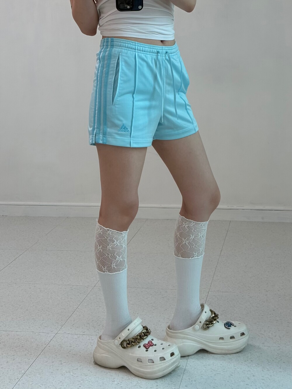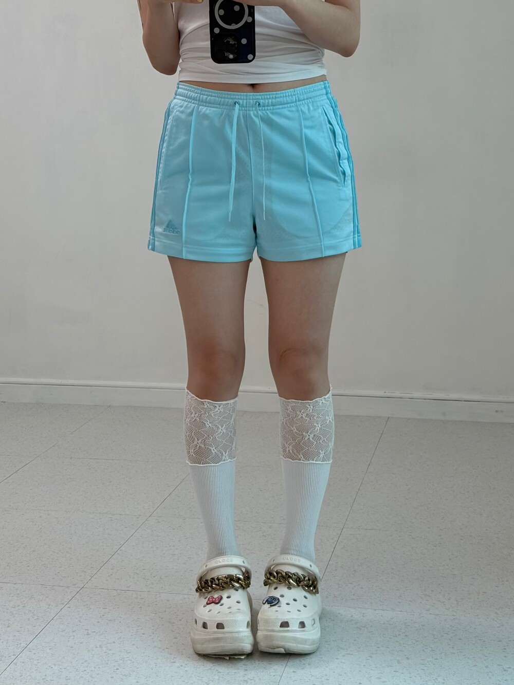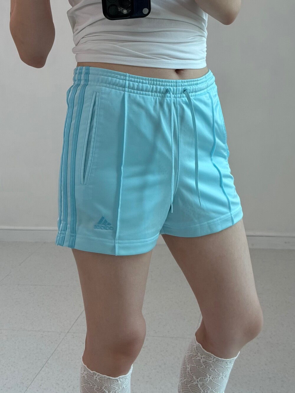 •아디다스 스카이블루 숏팬츠 입니다! 여름에 흰나시+포인트로 요녀석 슥 입어주기~