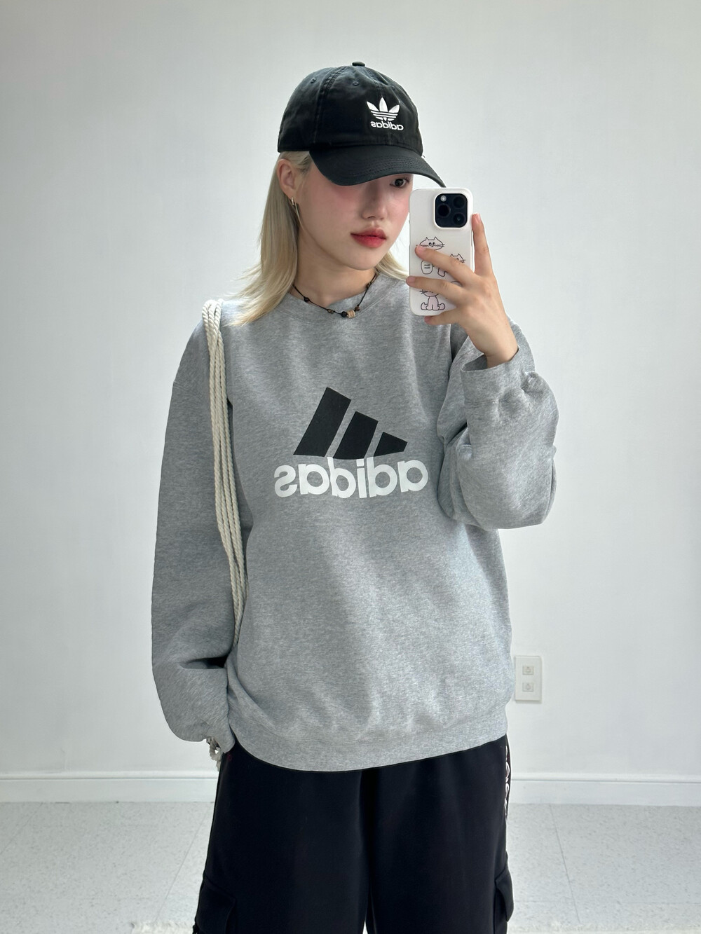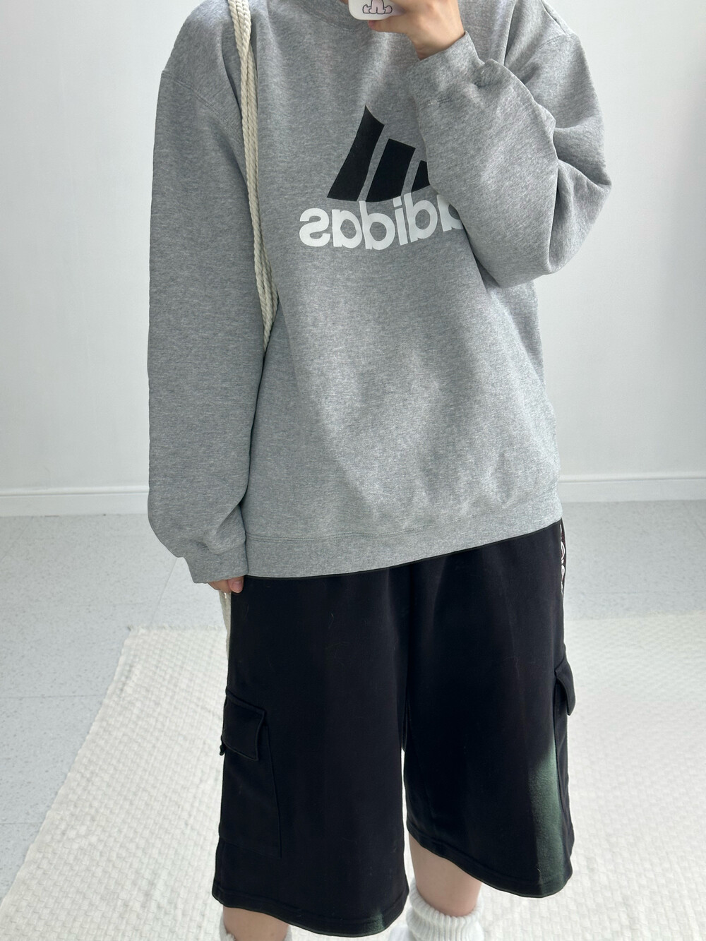 •그레이 컬러의 에센셜 빅로고가 포인트인 맨투맨이에요! 아방폭닥 핏이라 정말 사랑스러워요 ㅎㅎ