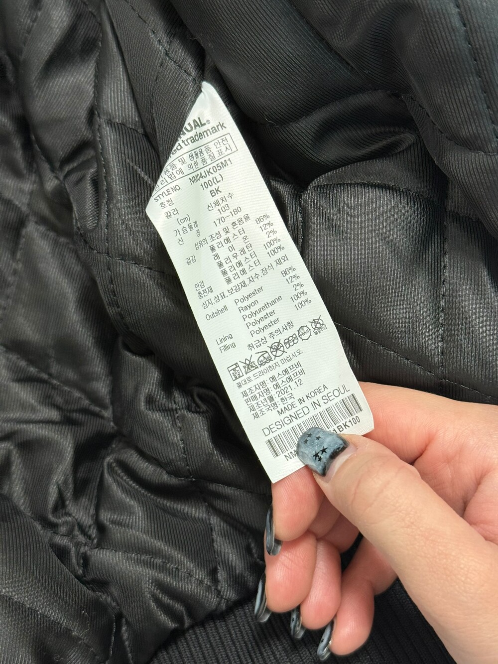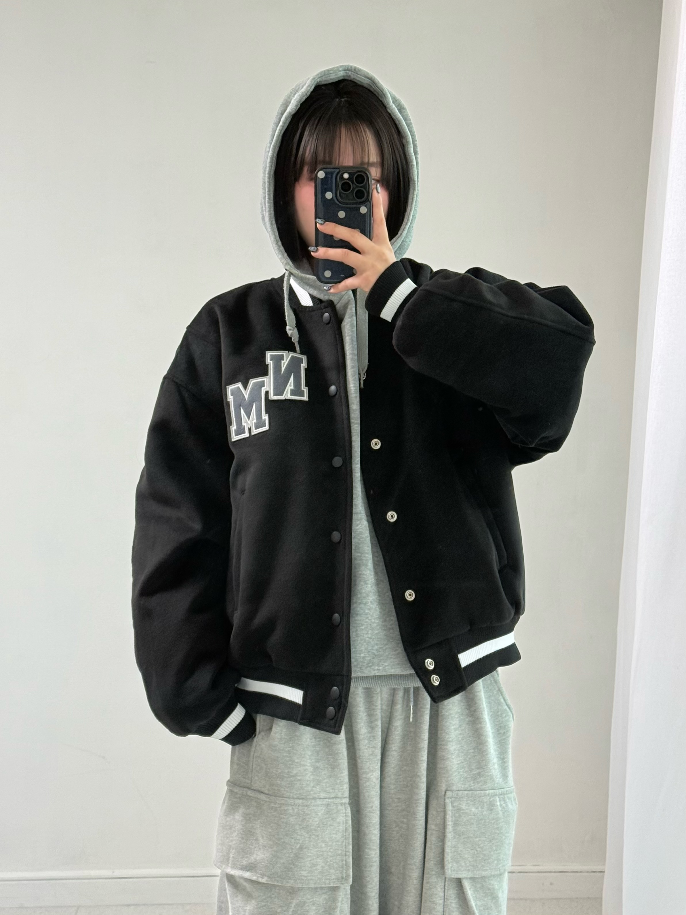 •노메뉴얼 블랙 바시티 자켓 입니다. 안감 누빔처리 되어 있어서 따수워요!