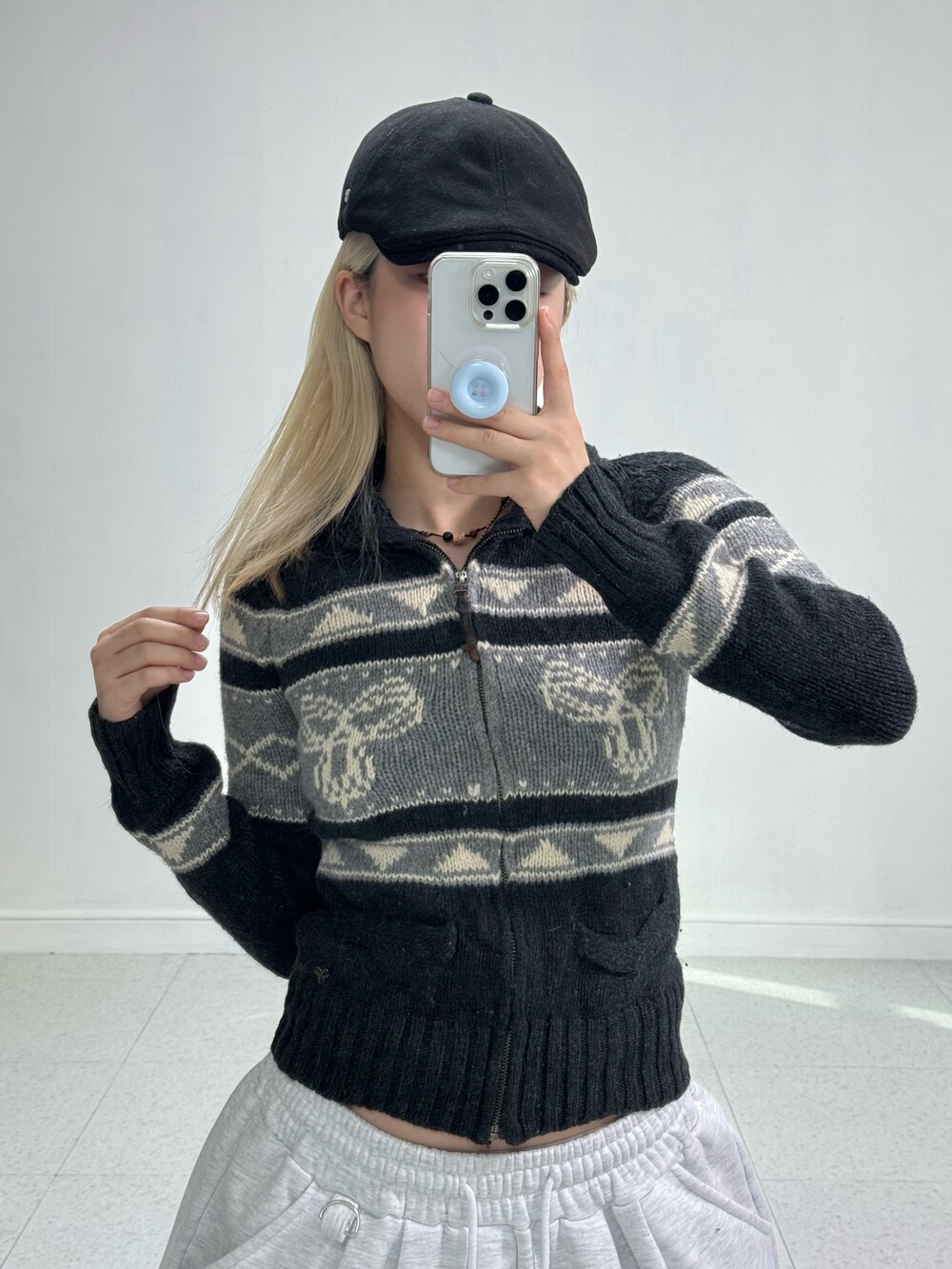 •제가 너무 사랑하는 슬림핏 울니트 집업><! 리본 디자인이 들어가있어 더욱 러블리한 집업이에요!🖤