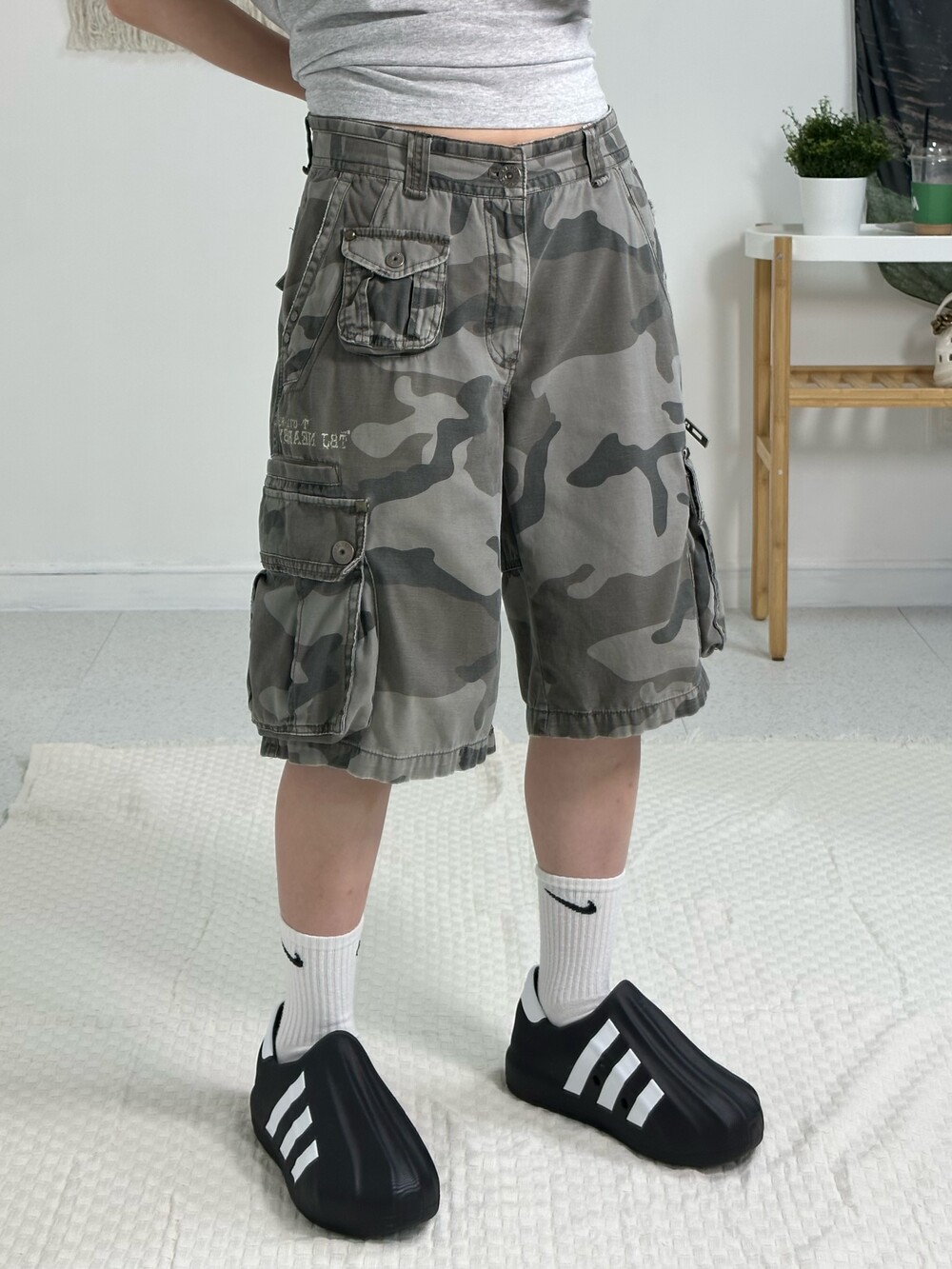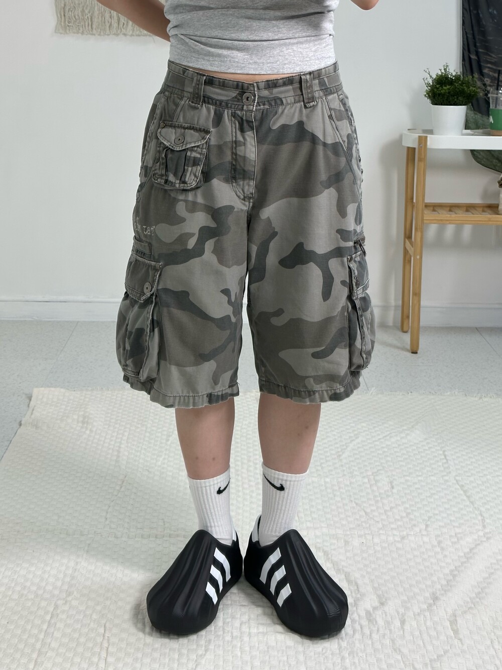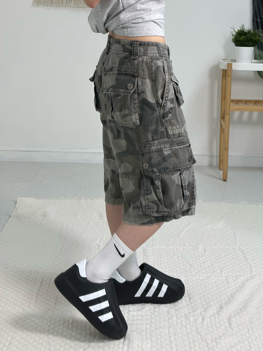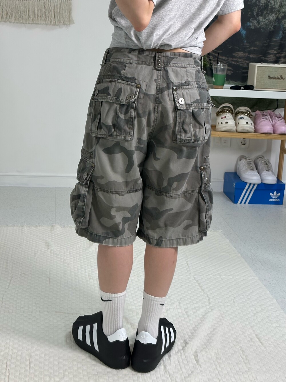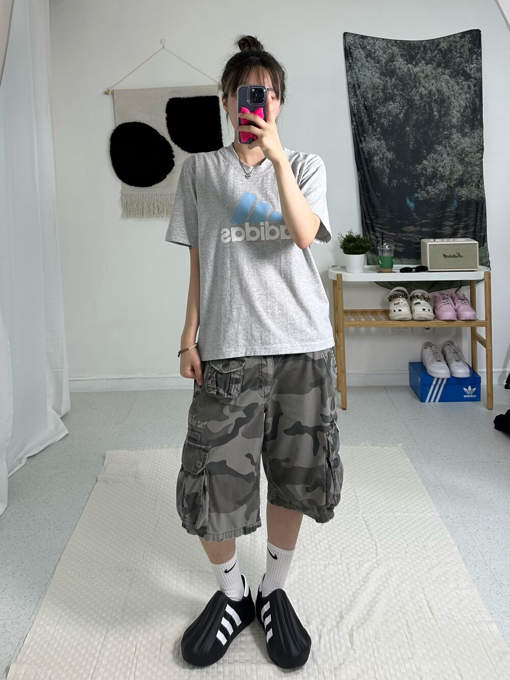 •아방하고 루즈한 핏의 카모하프팬츠에요! 미니포켓과 지퍼 디테일이 있어 더욱 빈티지스러움이 묻어나는 제품이에요ㅎㅎ 전체적으로 상태도 깨끗하고 핏이 넘 예쁜 제품이랍니다아