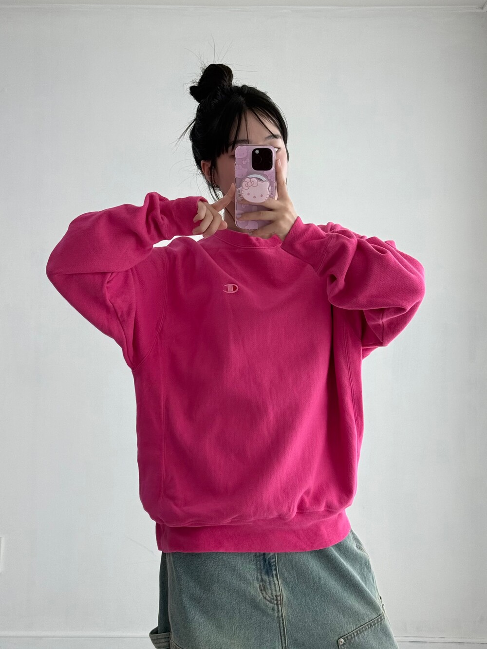 •흔한 챔피온 리버스위브 맨투맨이 절대 아닙니다! 따로 염색을 하여 택까지 전부 핫핑크인 온리원 제품이여요>< 타사이트 챔피온 리버스위브 가격대 보시면 아시겠지만 디자인 대비 정말 합리적인 가격으로 보여드리는거에요! 착용감도 좋고 안감이 기모라 따뜻하게 이번 겨울을 함께 보내주시면 좋을듯 합니다 히히