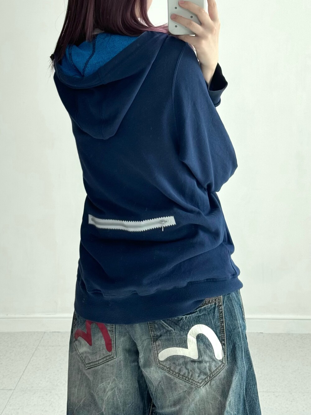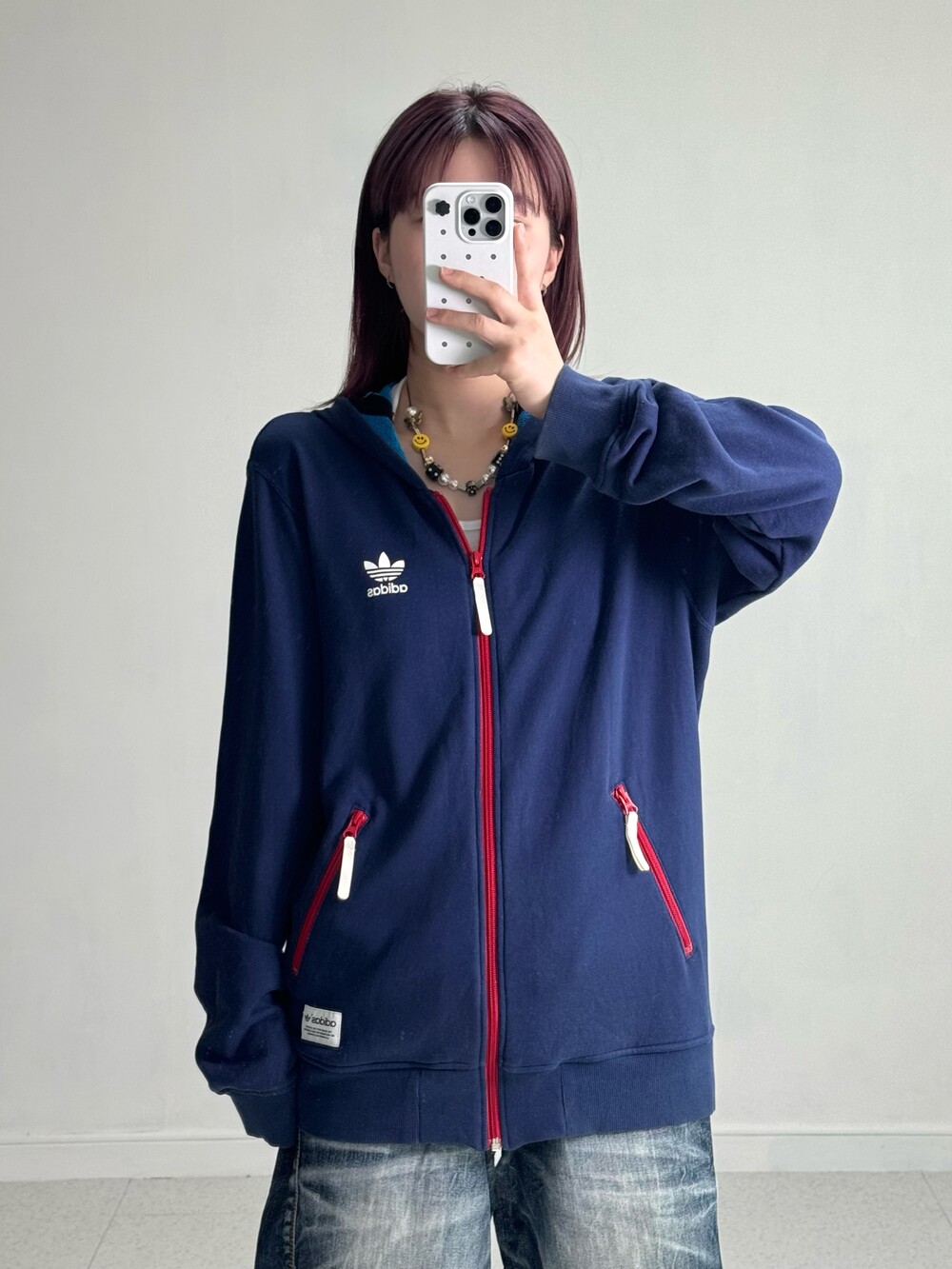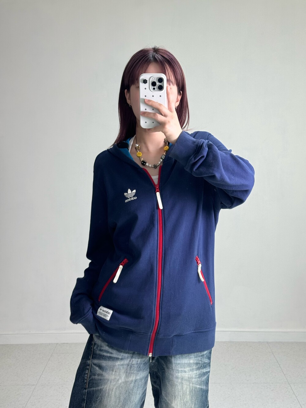 •루즈한 핏감의 네이비 후집>,< 귀여운 디자인과 색상이 넘 귀여워요ㅎㅎ 등에 지퍼 디테일까지 굿👍🏻