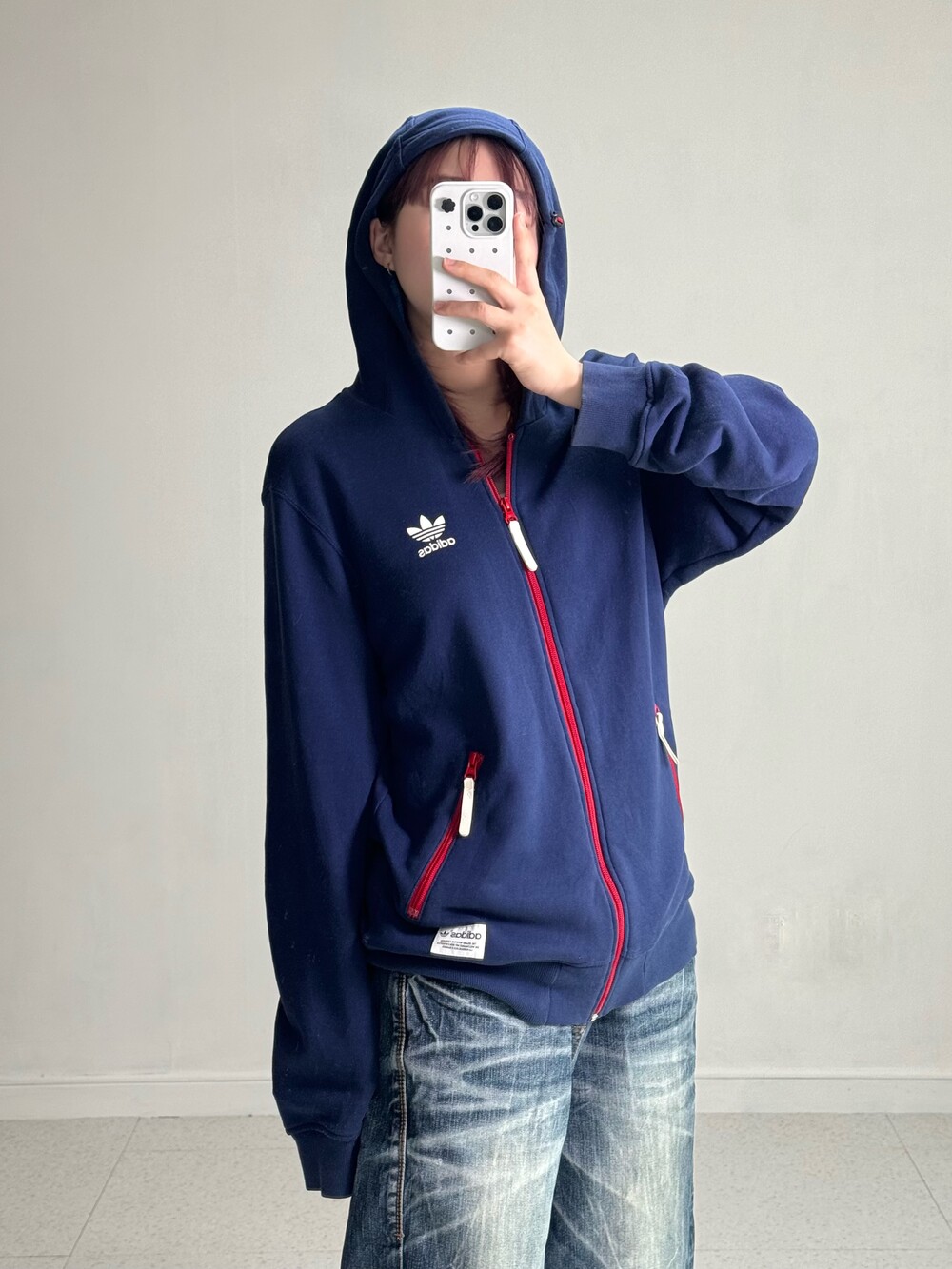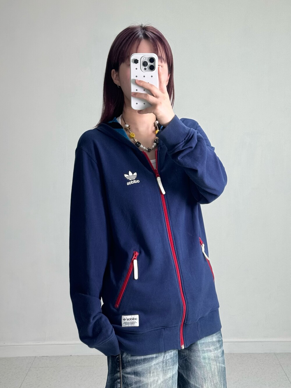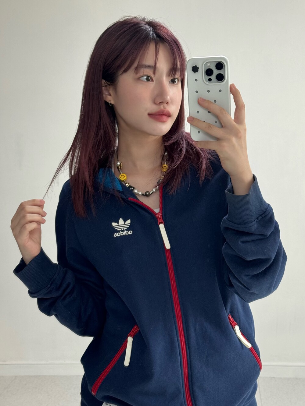 •루즈한 핏감의 네이비 후집>,< 귀여운 디자인과 색상이 넘 귀여워요ㅎㅎ 등에 지퍼 디테일까지 굿👍🏻