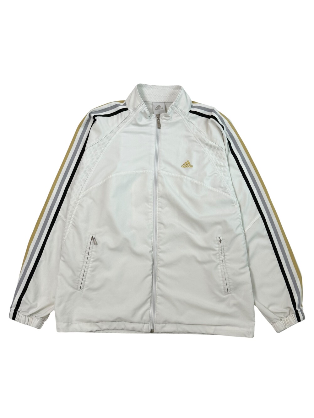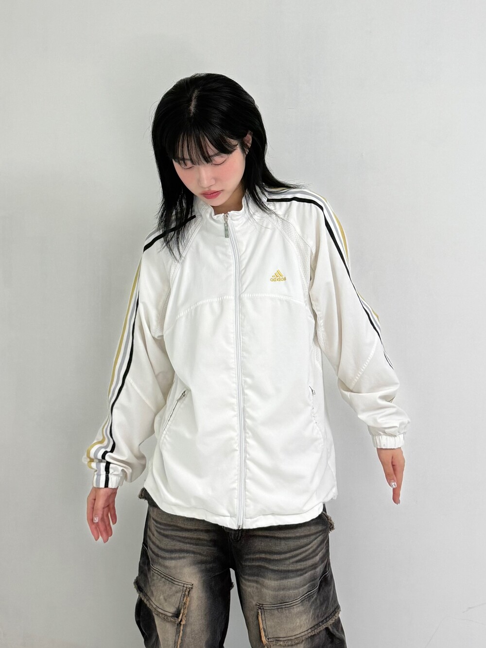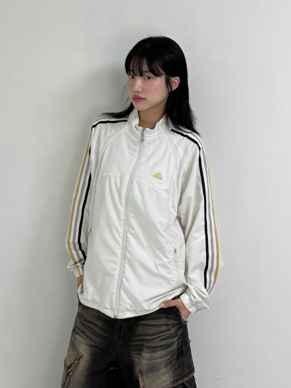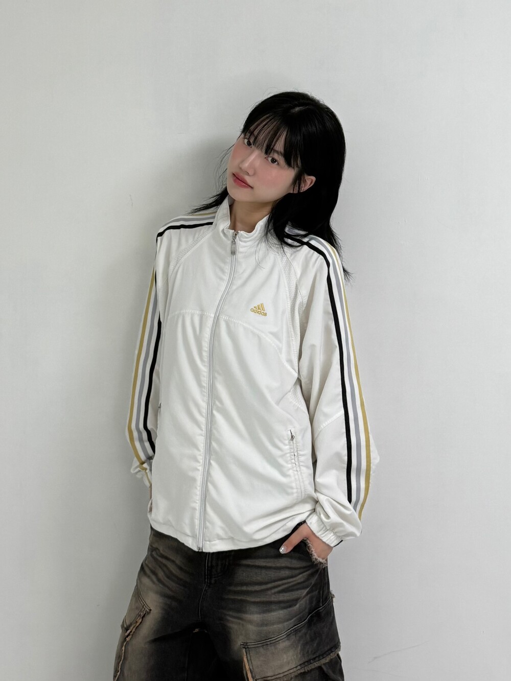 •아디다스 화이트 골드 바람막이 입니다! 시보리에 스트링도 달려있고 전체적으로 아방루즈한 핏감이랍니다ㅎ.ㅎ