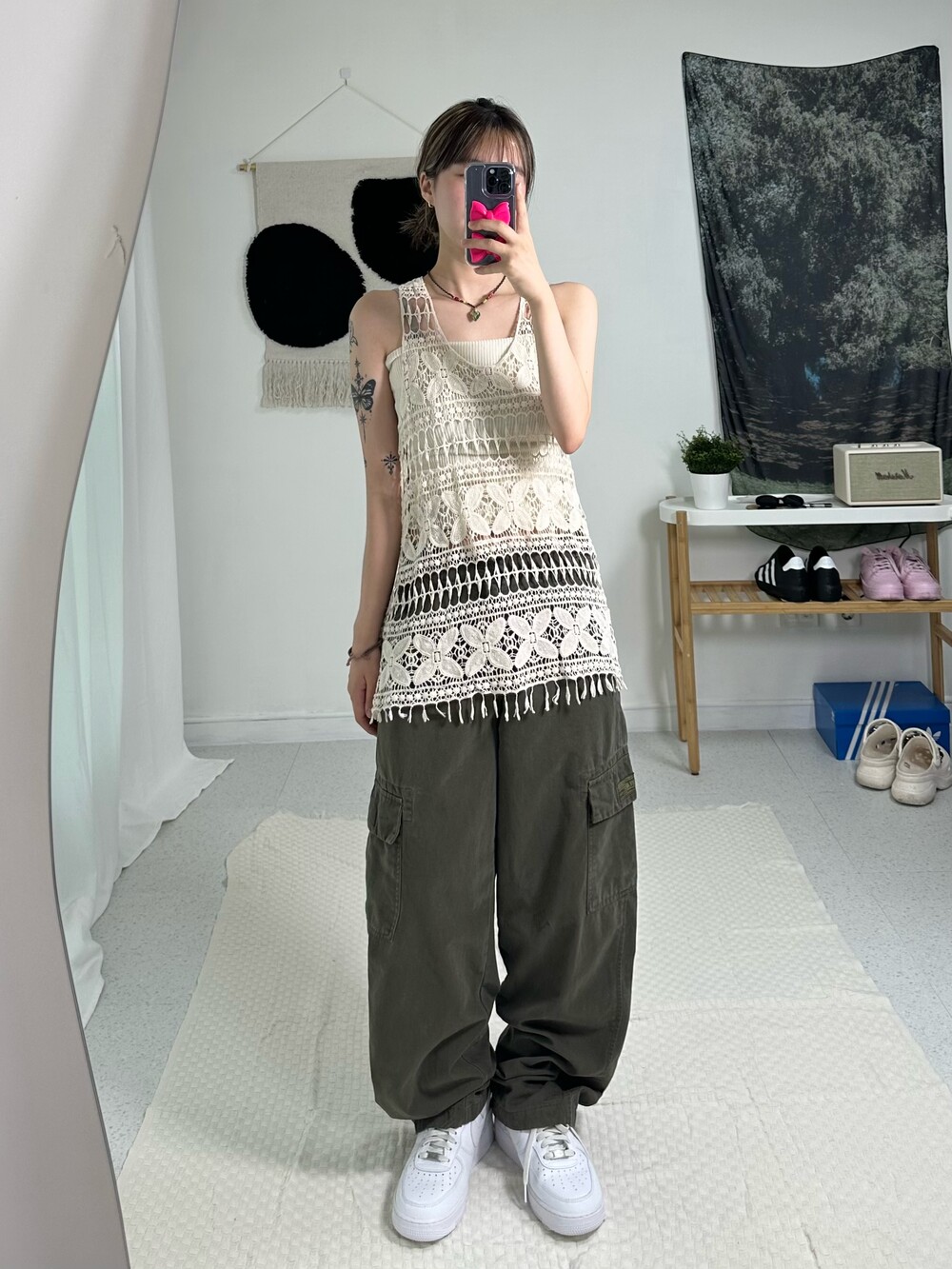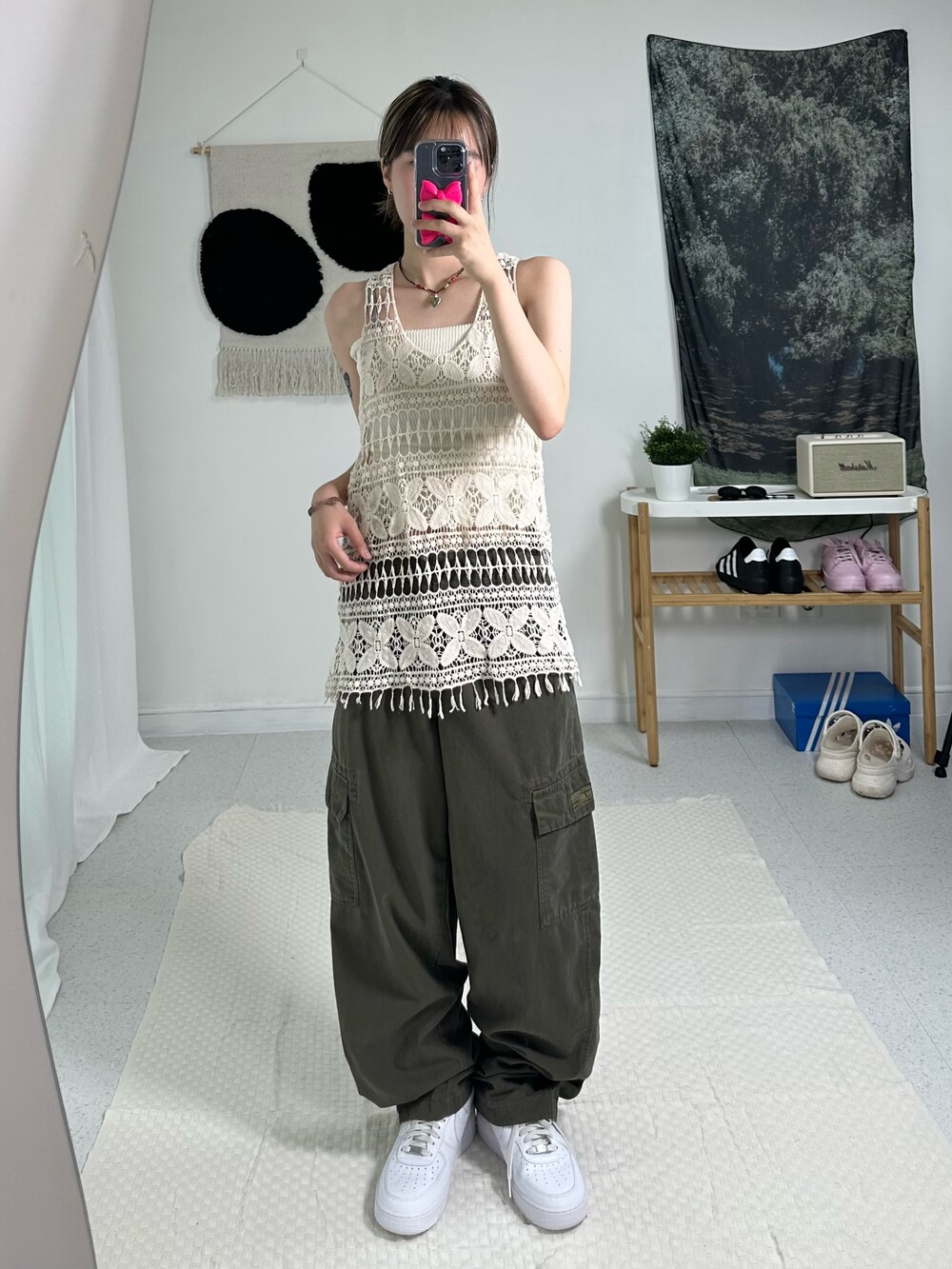 •가을,겨울에도 착용하실 수 있는 두께감의 카고팬츠에요! 와이드루즈핏을 가지고 있으며 톡 떨어지는 핏이 넘 예뻐요 <3