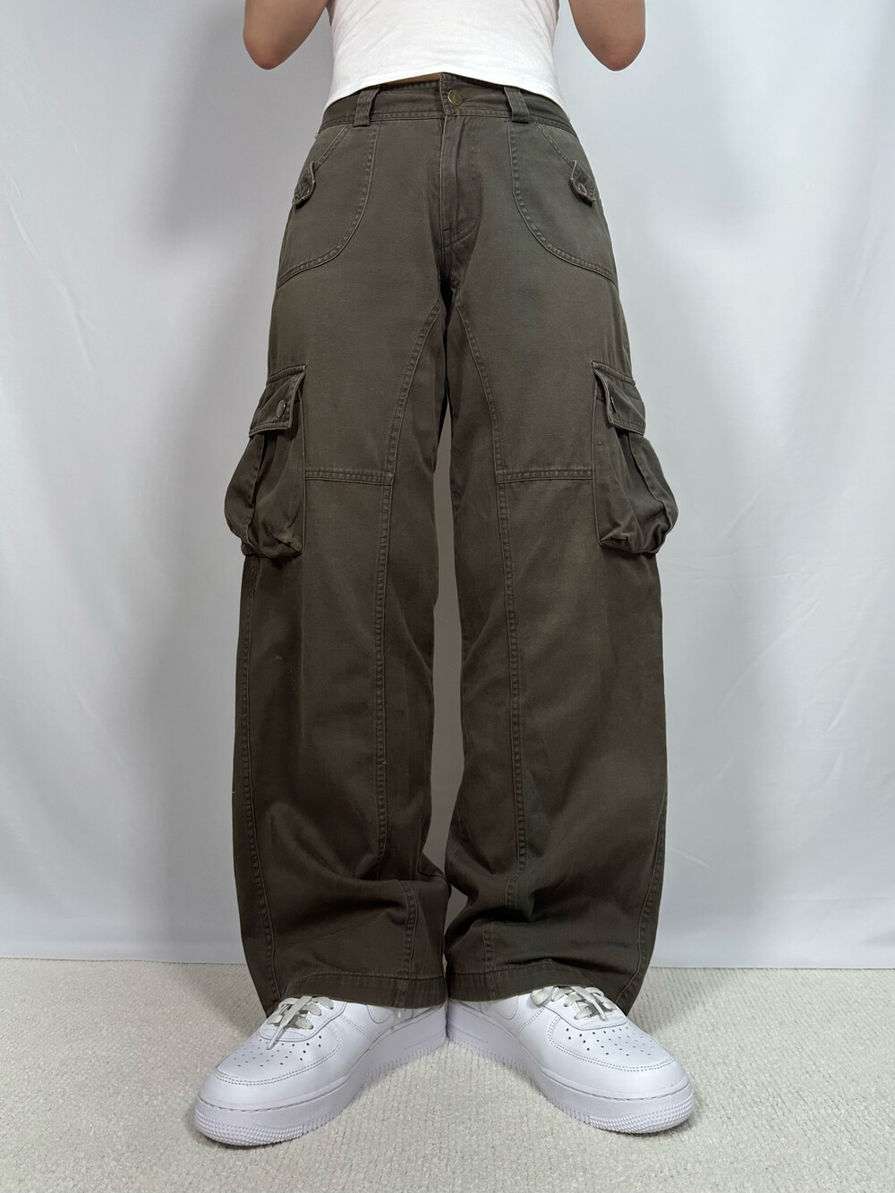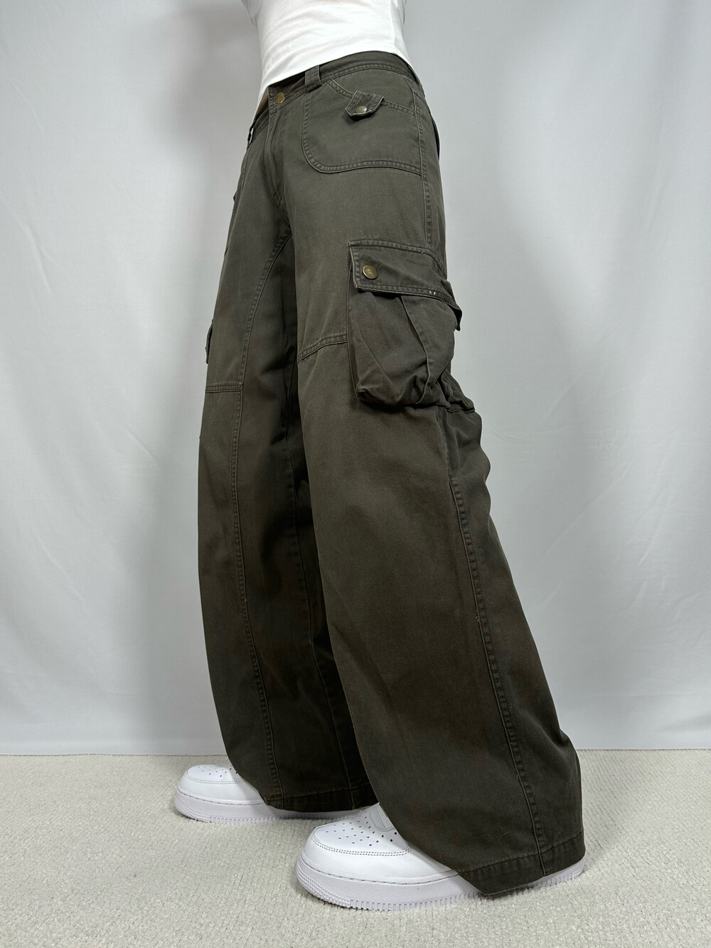 Wide khaki cargo pants