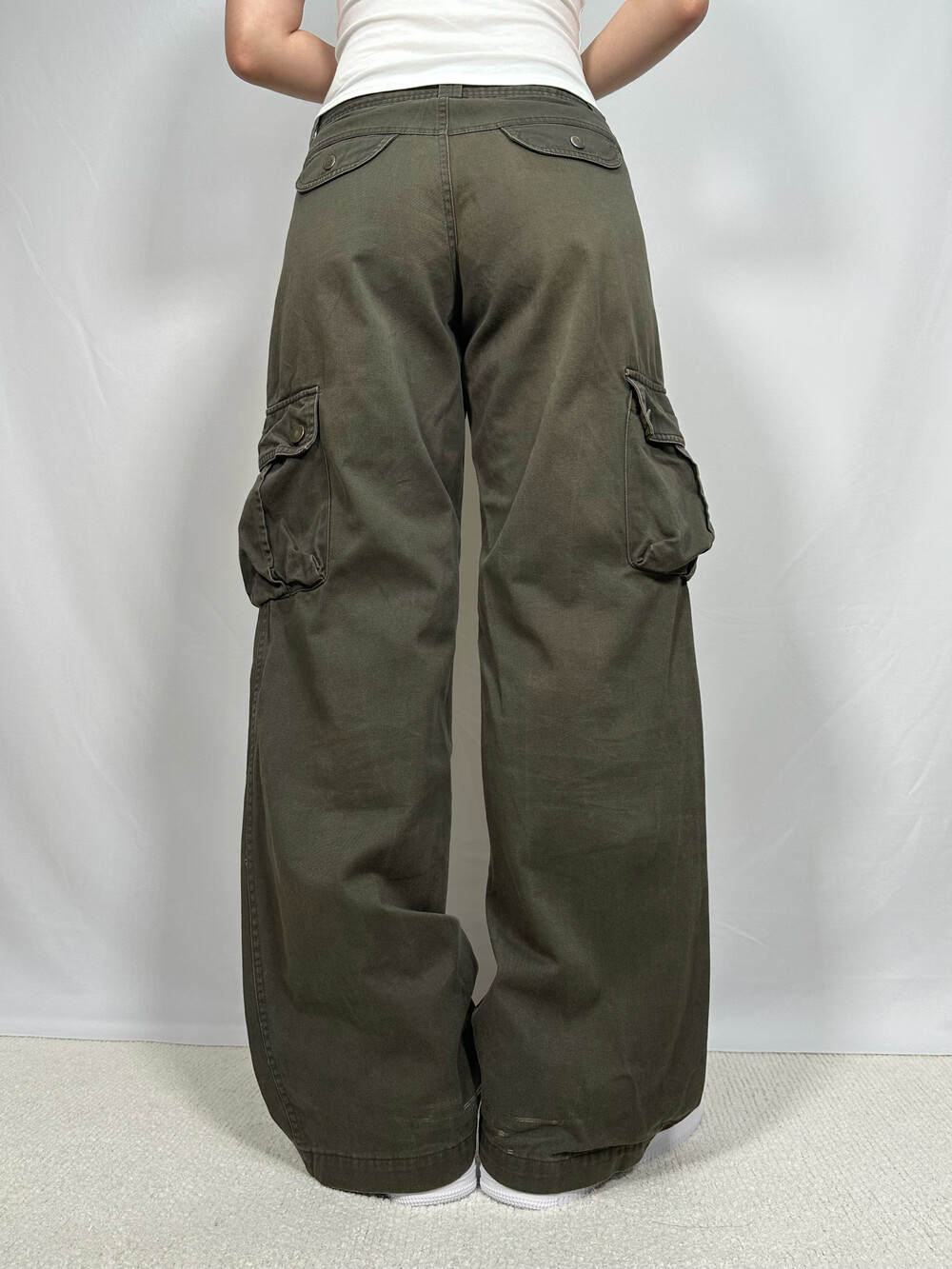[Wide khaki cargo pants]