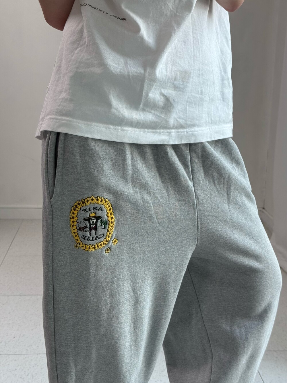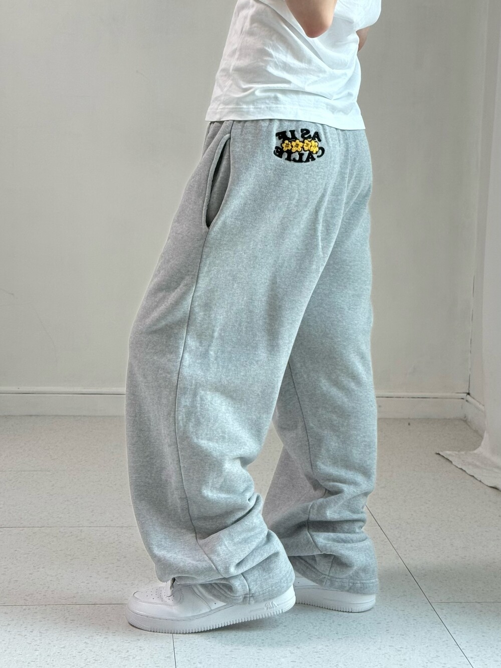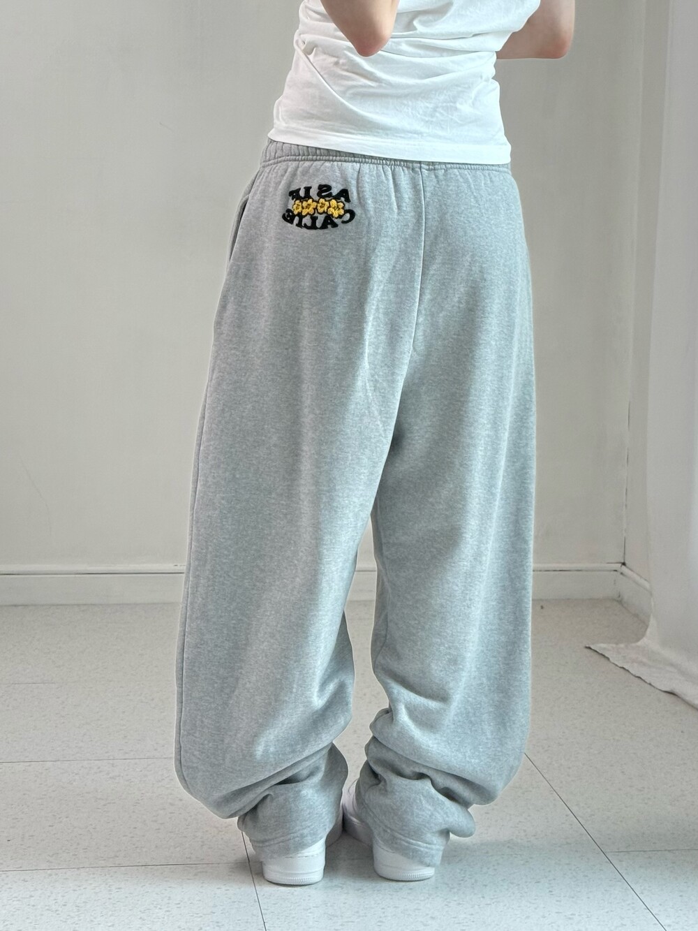 •제가 입으려다가 보여드립니다.. 에즈이프캘리 스웻팬츠에요! 앞뒤로 자수 로고 디테일이 넘 귀여워융ㅎㅎ
