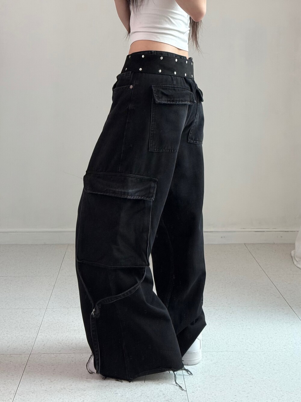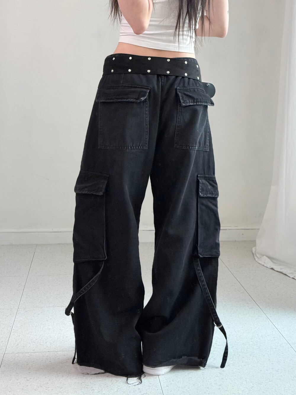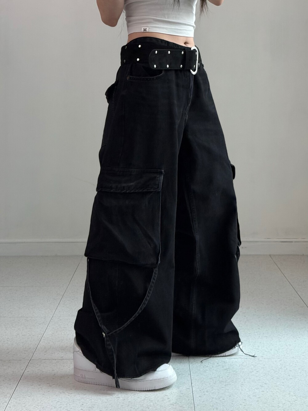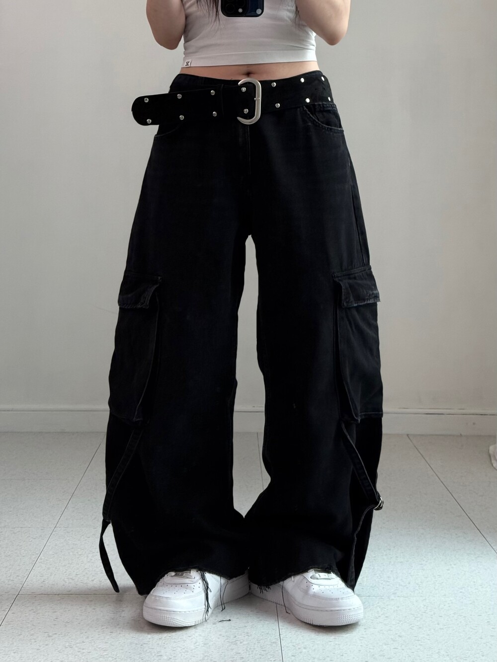 •와이드 묵직 루즈핏 블랙 카고 입니다! 사이드에 빅포켓과 스트랩 디테일이 들어가있어 착용했을때 정말 멋스러워요>,<..팬츠 러버들이 좋아할 디자인🖤