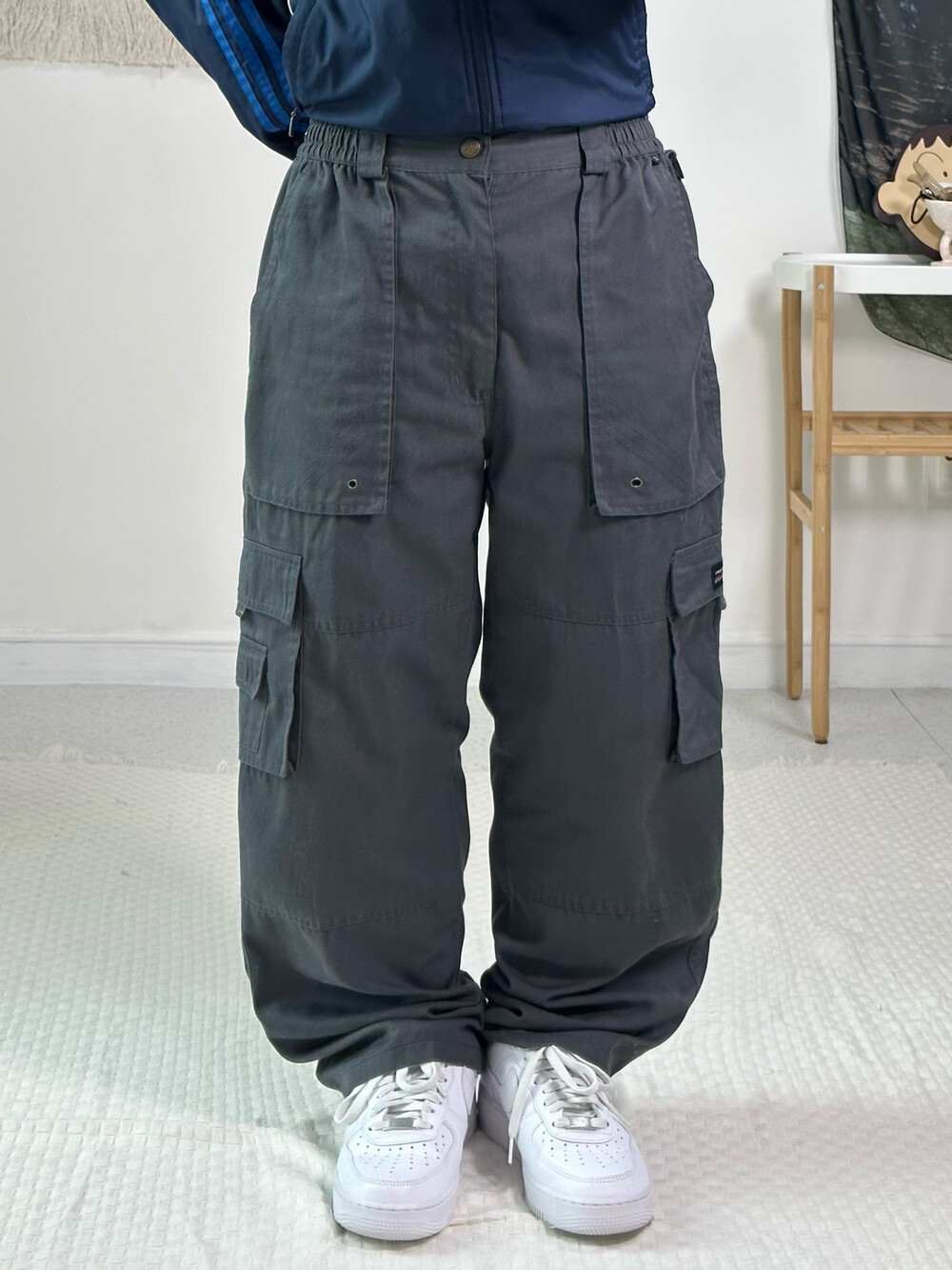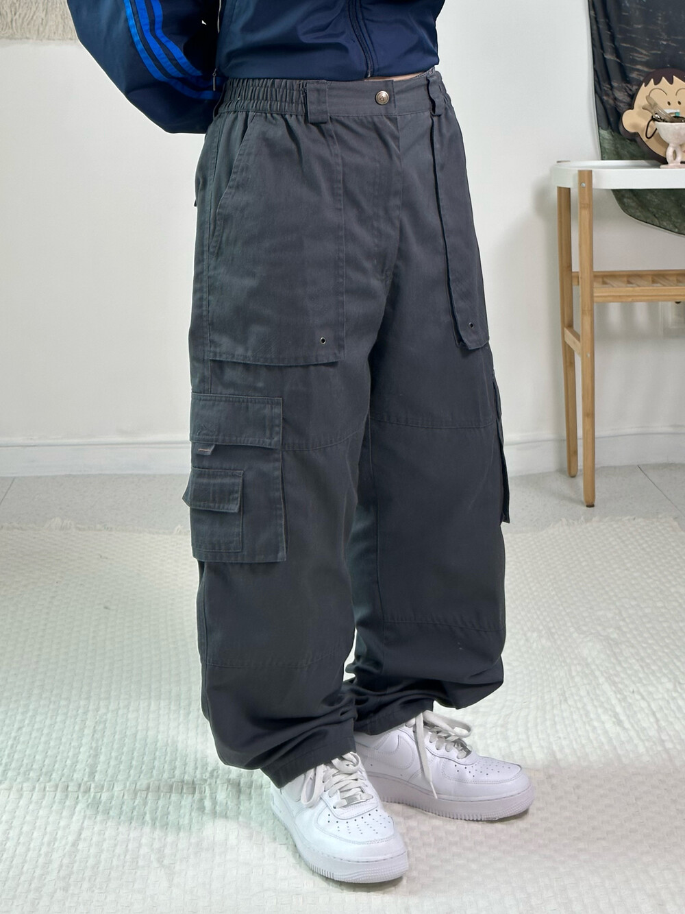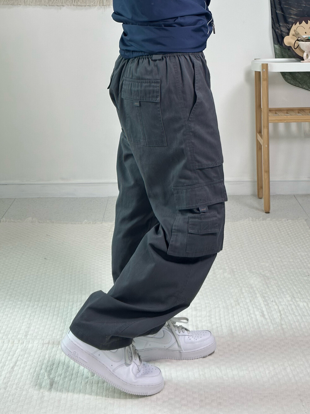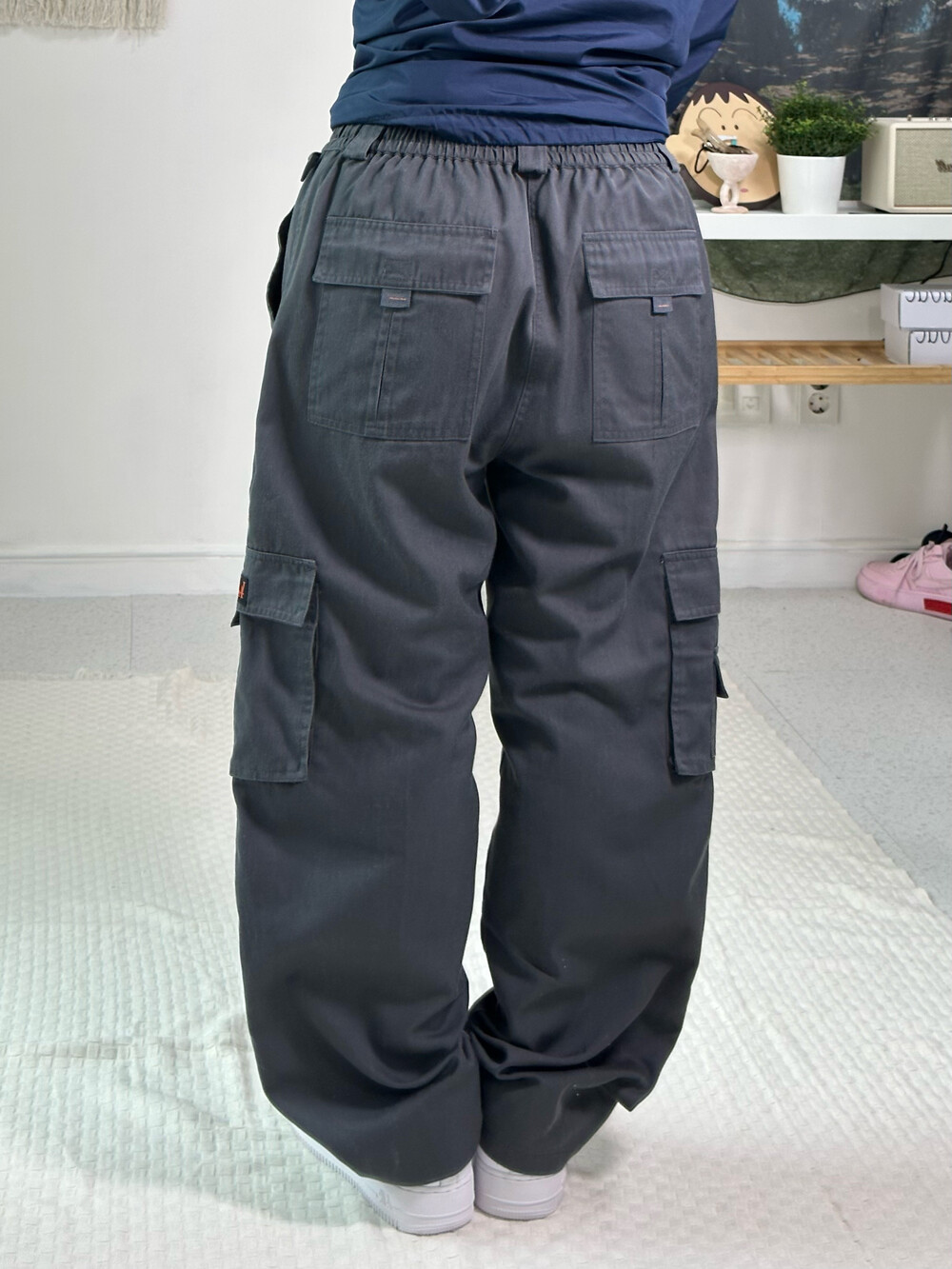 •챠콜 컬러의 인기라인 카고팬츠에요! 원단이 가벼워 착용했을때 편안하고 허리가 부분밴딩이라 핏도 예뿌다는점ㅎㅎ