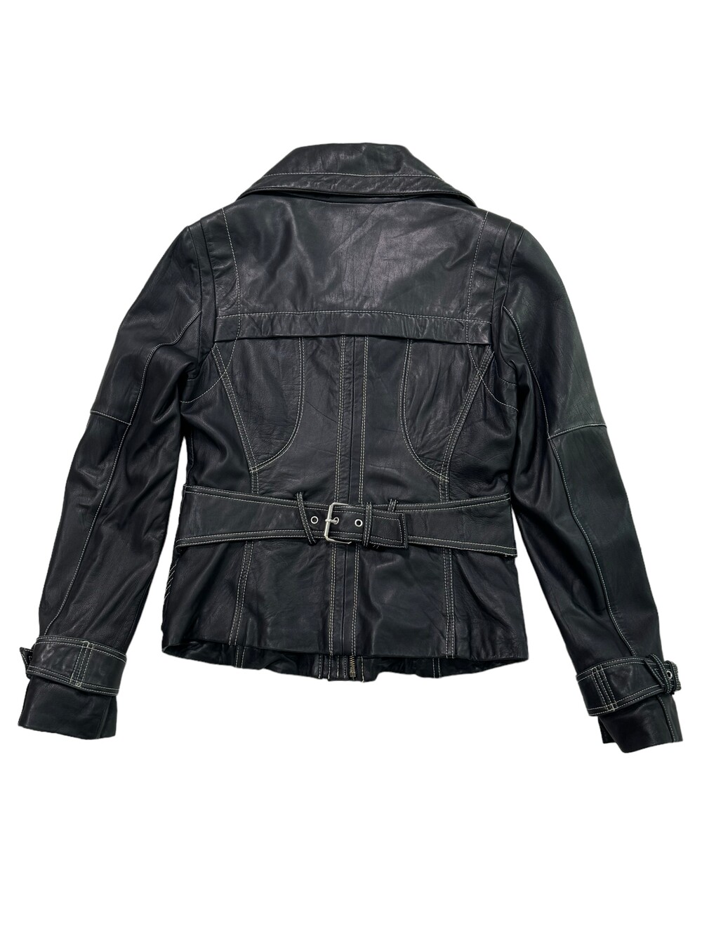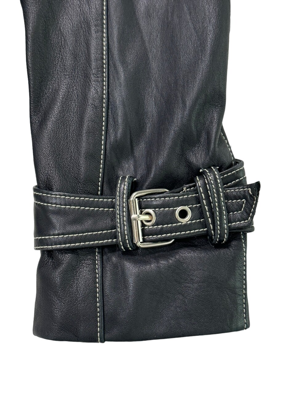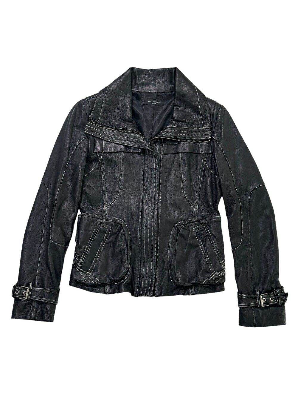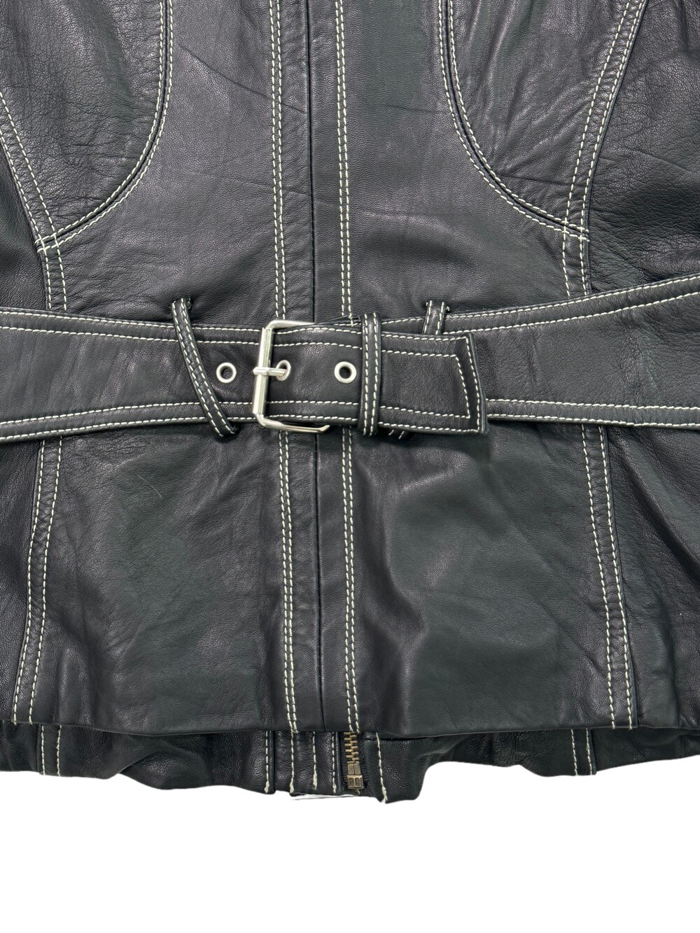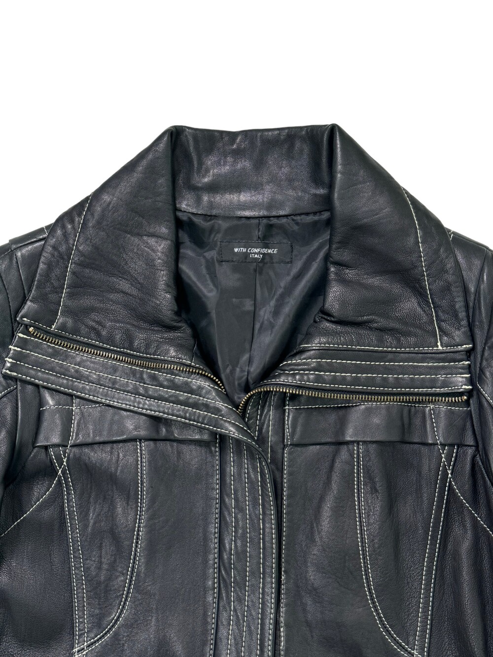 •끝까지 올려입어도 갑갑하지 않아서 더욱 마음에 들었던 레더 집업인데요! 화이트 스티치가 굉장히 멋스럽습니다>,< 소매와 등쪽 벨크로 디자인 넘 멋있어요 🖤