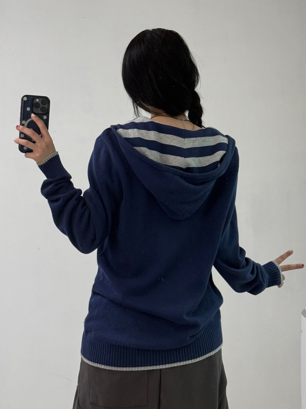 •리바이스 네이비 니트 후집 입니다! 오버핏+루즈하게 떨어지는 느낌이 완전 느좋ㅋㅋ 특히 후드 안감이 스트라이프 패턴이라 더 예쁜듯해요ㅎㅎ