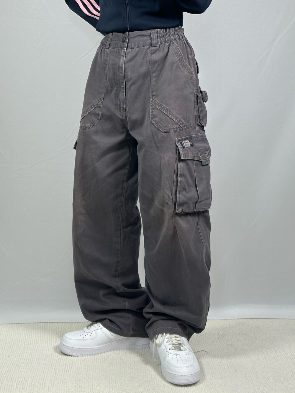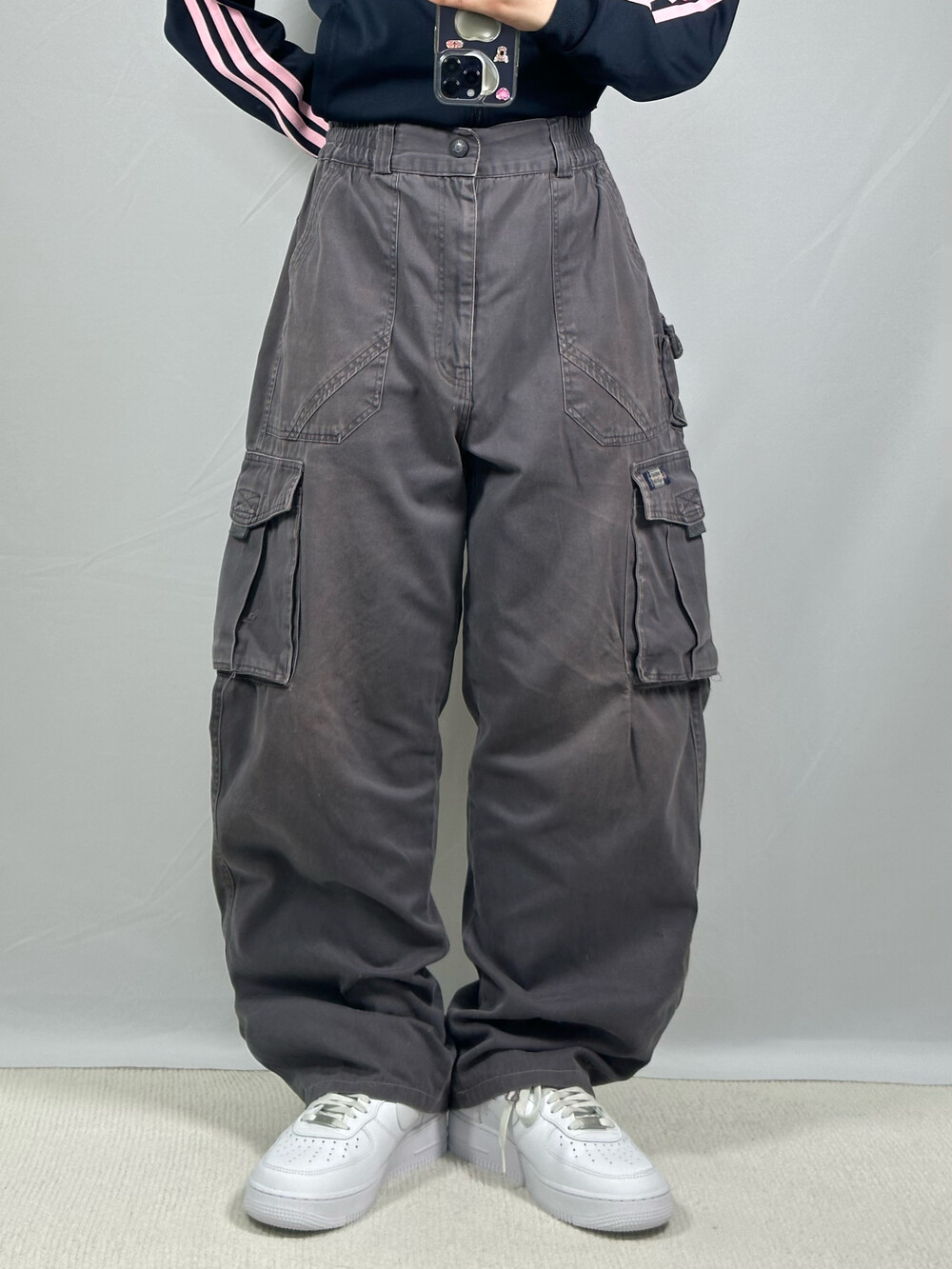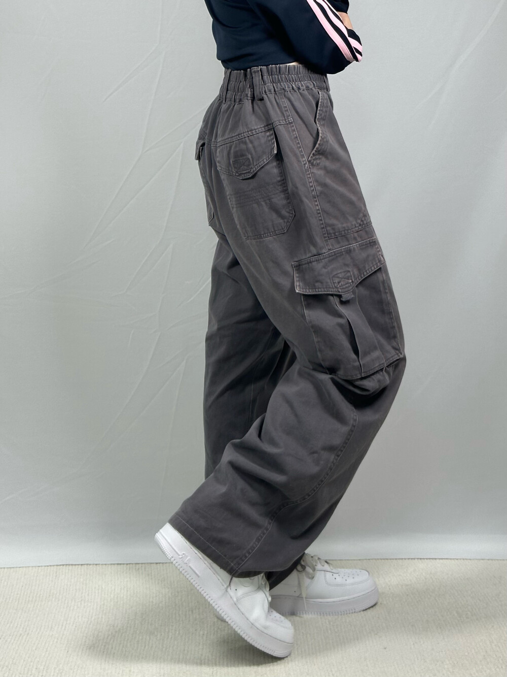[Charcoal wide fit cargo pants]