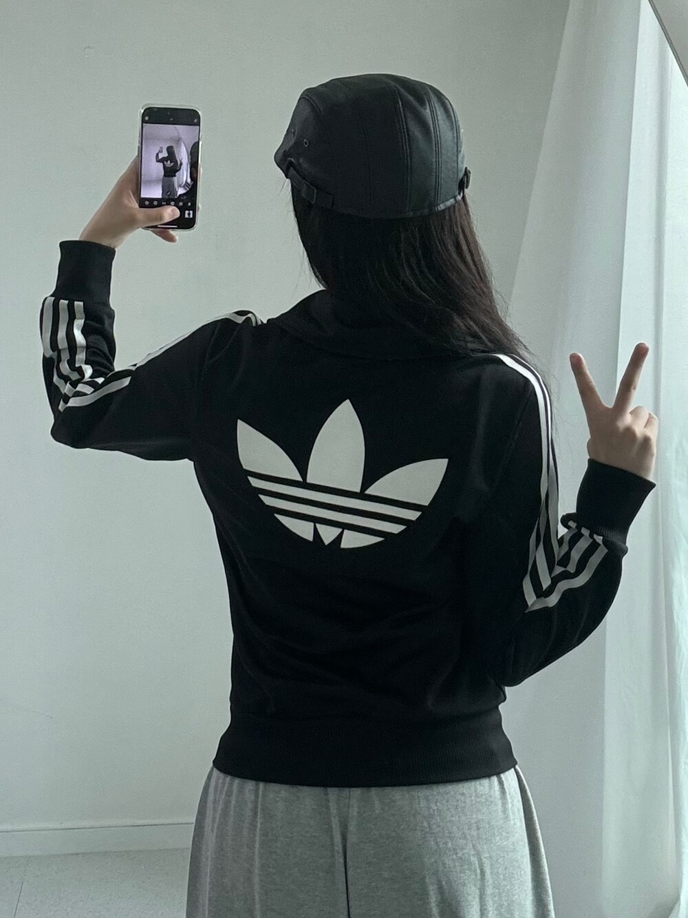 •지퍼까지 파이어버드 로고인 아디 블랙 져지~~ 숏한 기장감이라 골반에 걸쳐서 힙하게 입어주시기 좋아요!