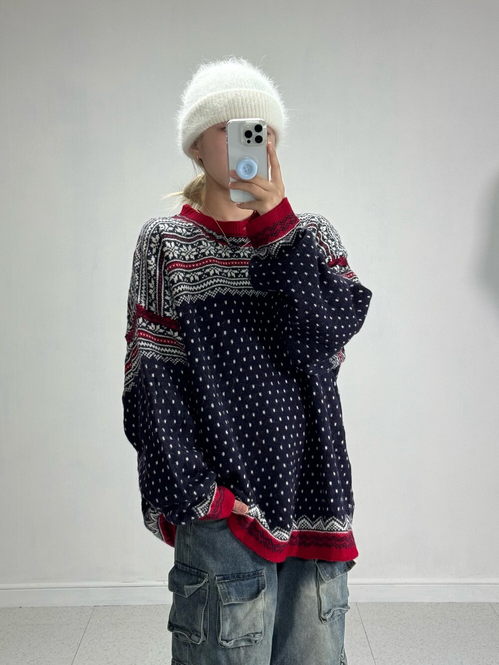 •겨울분위기 낭낭한 아방니트에요! 네이비,레드,화이트 조합=❤️