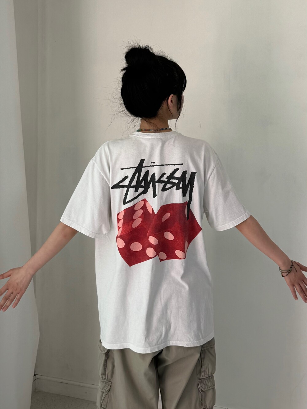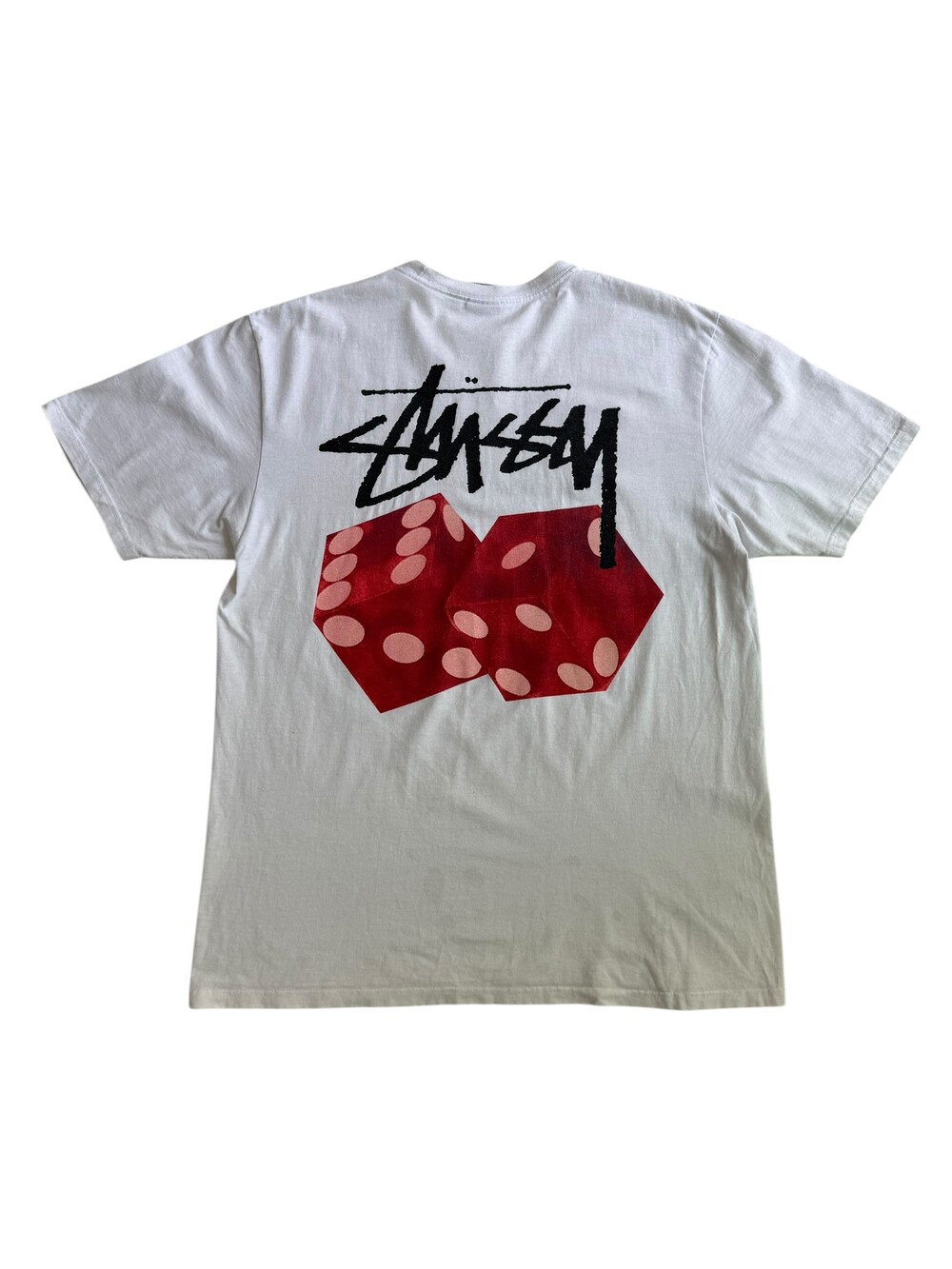 •스투시 다이스 아웃 반팔티 입니다. 크림에서 17만원에서 20만원대에 거래되고 있는 제품이에요. 귀여운 디자인과 깔끔한 핏감이 아주 굿 이랍니다. 오염 확인해주세요!