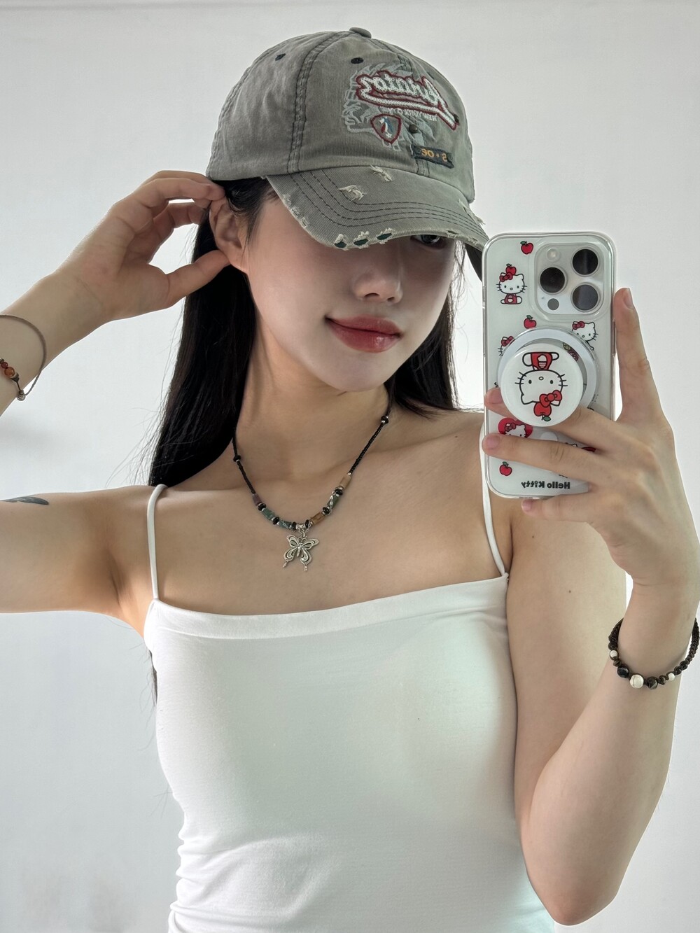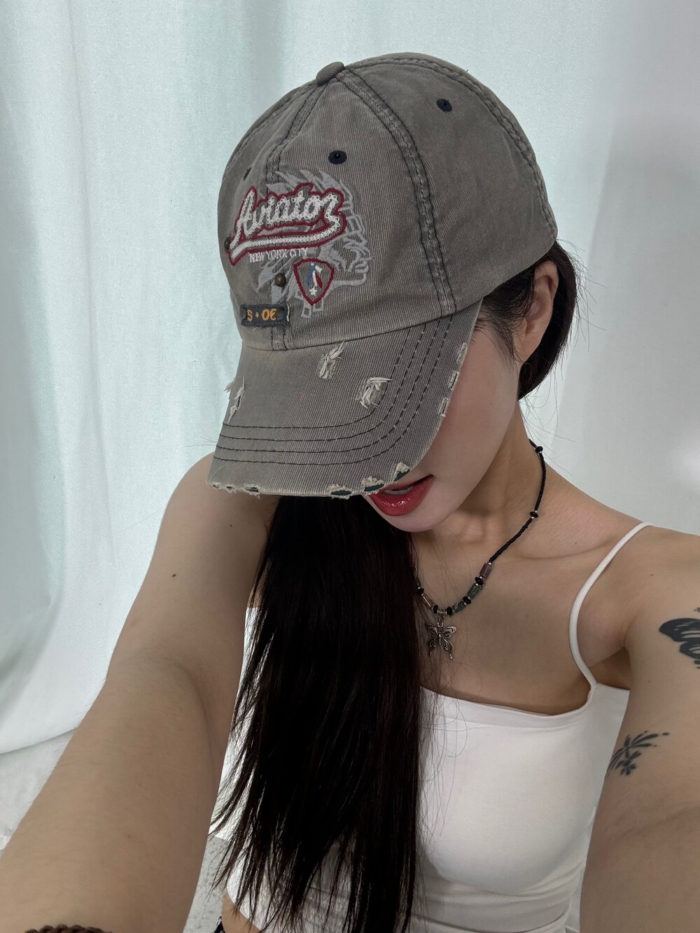 뮤트그레이 컬러라 넘 예쁜 발망 캡! 빈티지한 무드 낭낭+데미지 디테일이 멋스러운 아이템이라 손이 자주갈것같아요!ㅎㅎ 디자인두 짱 예붐..