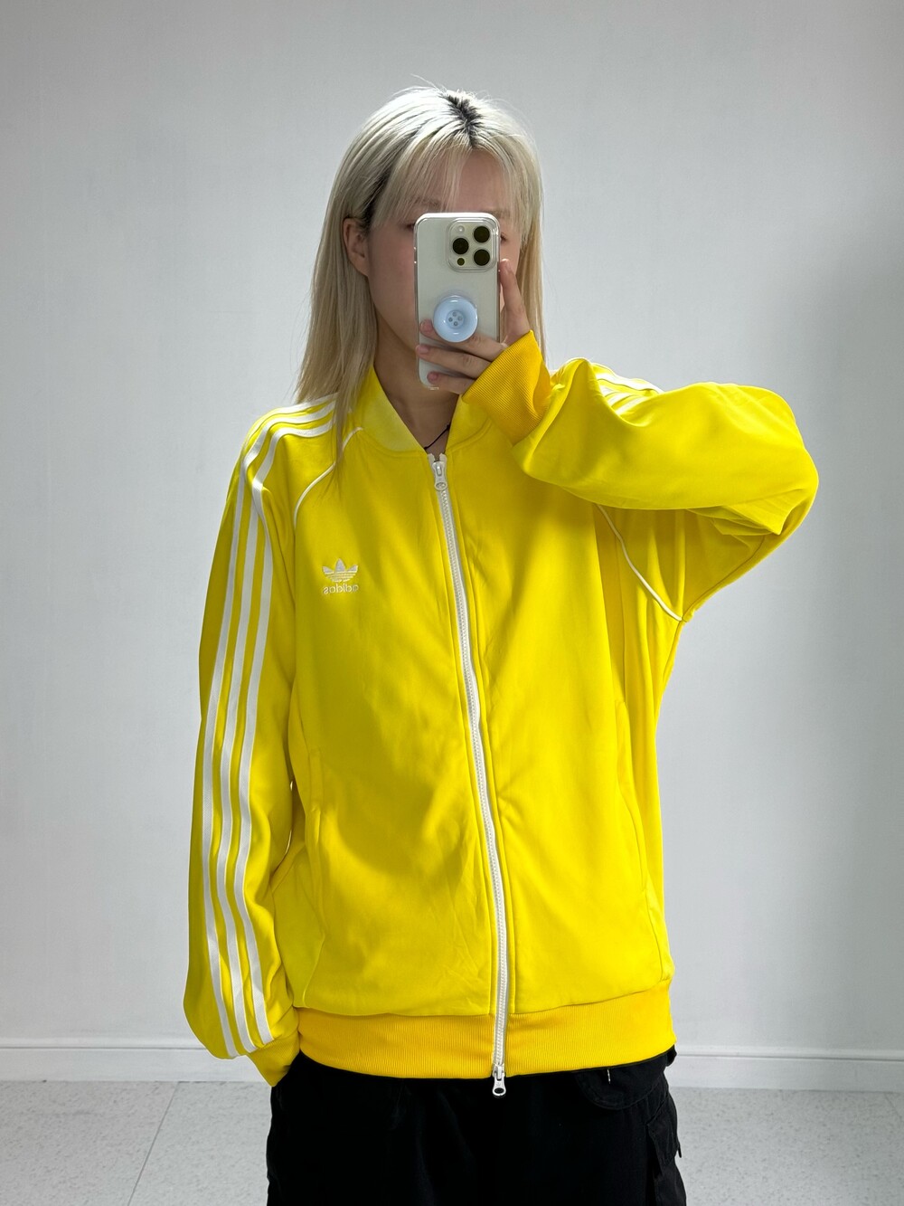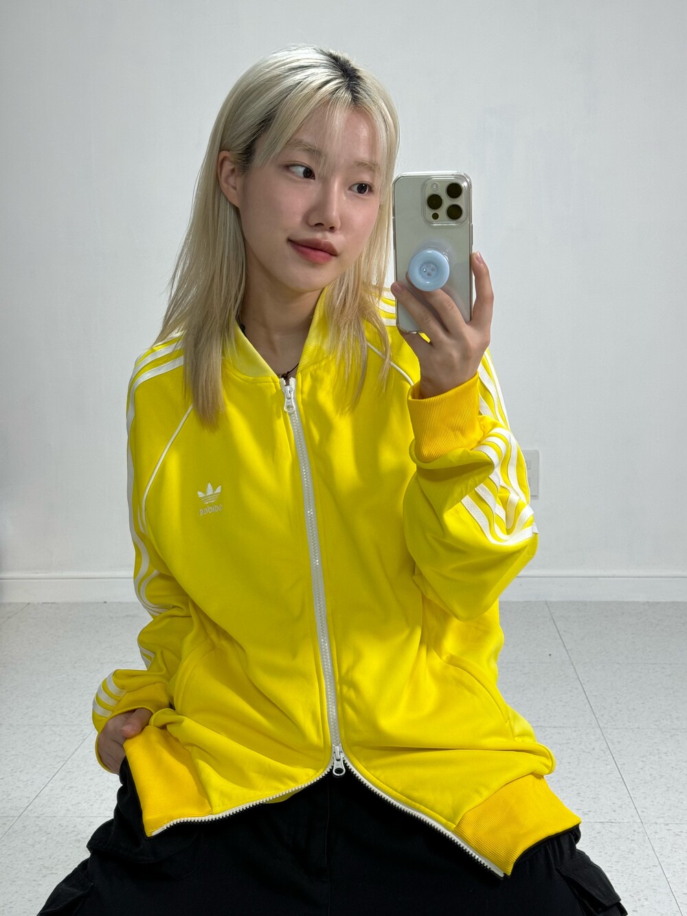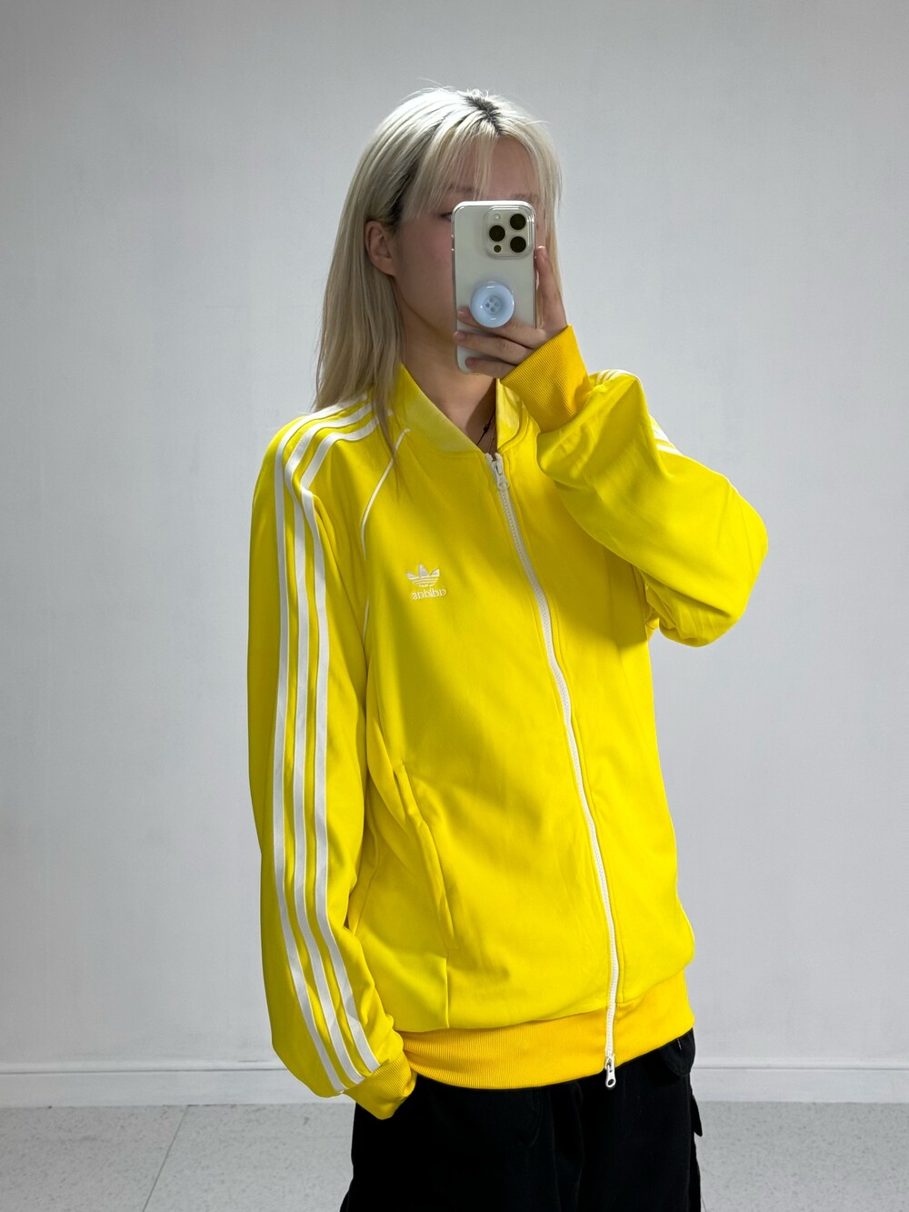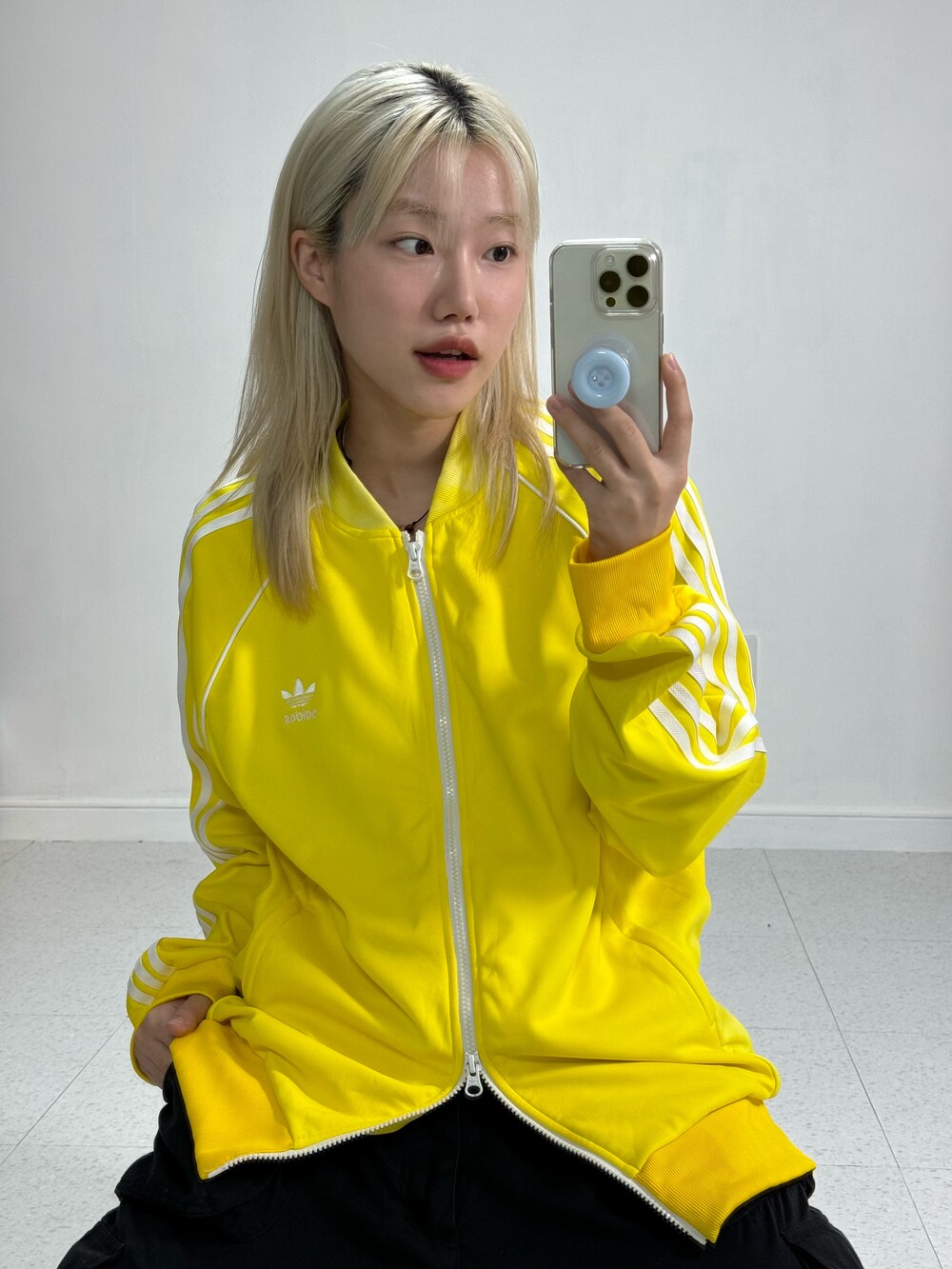 •pharrell williams 디자이너와 함께 콜라보한 져지에요! 쨍하고 귀여운 컬러감과 투웨이 집업이라 더욱 소장욕구 뿜뿜>,< 살짝 물빠진것 처럼 등판에 타이다이 디자인으로 되어있습니닷 ㅎ 무오데 유일매물!