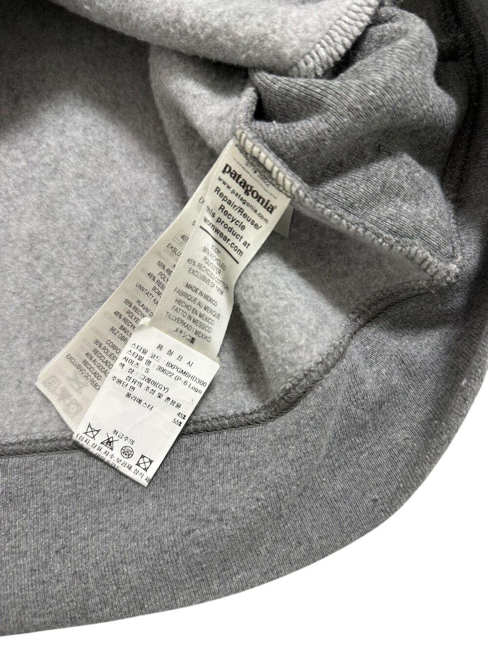 •파타고니아 그레이 후디 입니다. 군더더기 없는 깔끔한 핏이 예쁜 제품이에요! (한국어택ㅇ)