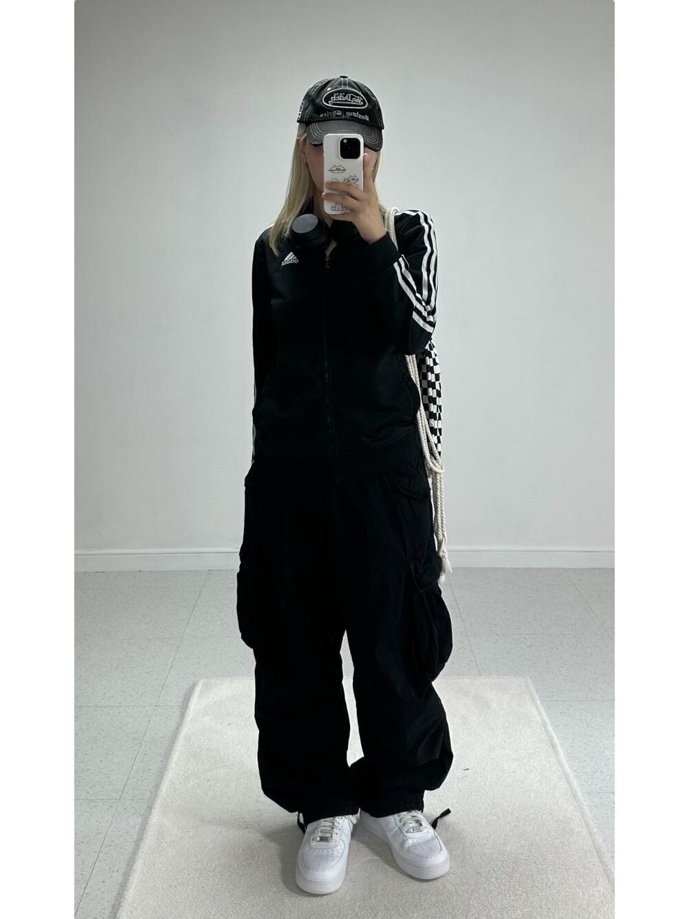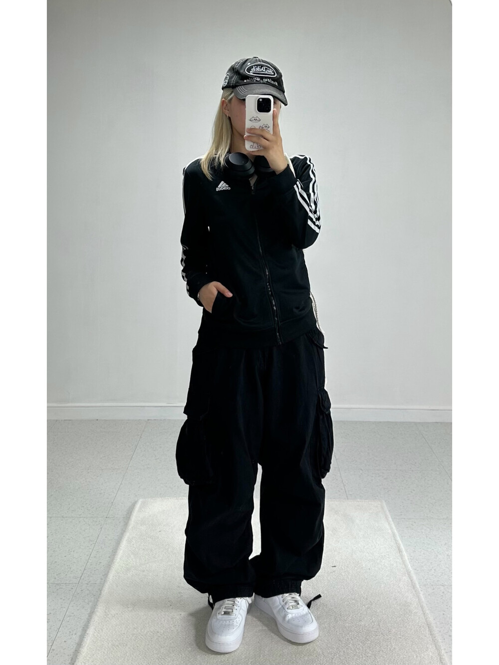 •핏 무진장 예쁘구요- 적당한 와이드, 예쁘게 잡히는 루즈 실루엣.. 다른 블랙카고랑 비교할 수 없을만큼 예쁩니닷. . 무릎에 핀턱이 잡혀있어 서있을때 살짝 잡히는 주름이 넘 멋스럽답니다 !