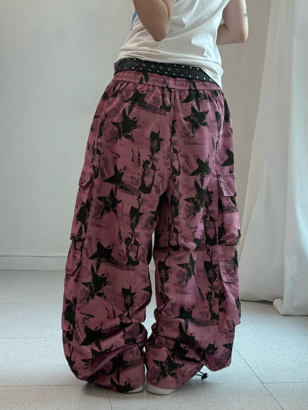 •빈티지한 핑크와 스타 패턴이 들어간 귀여운 팬츠에요! 와이드한 핏에 원단도 가벼운편이라 편하고 유니크하게 착용 가능하세요!