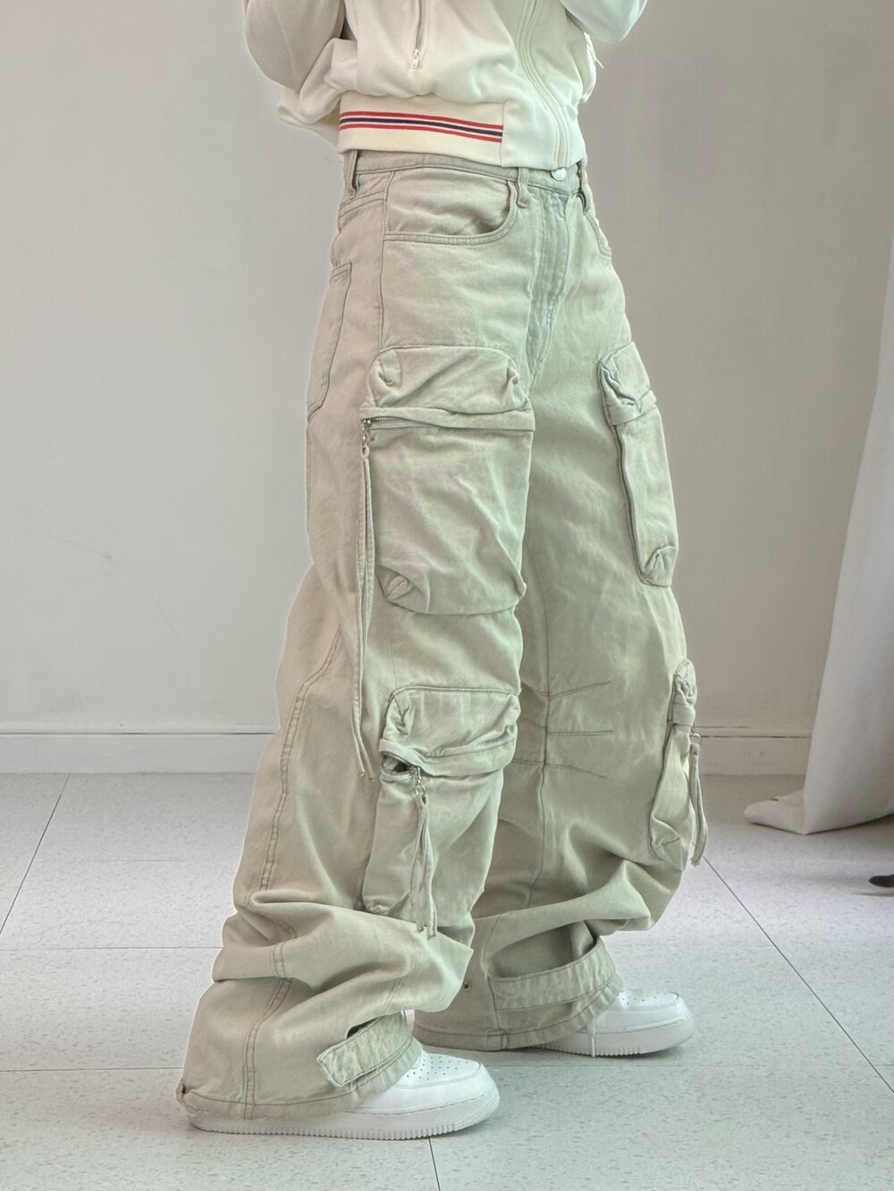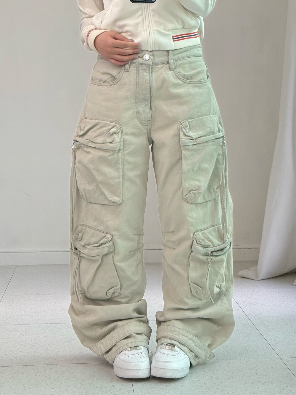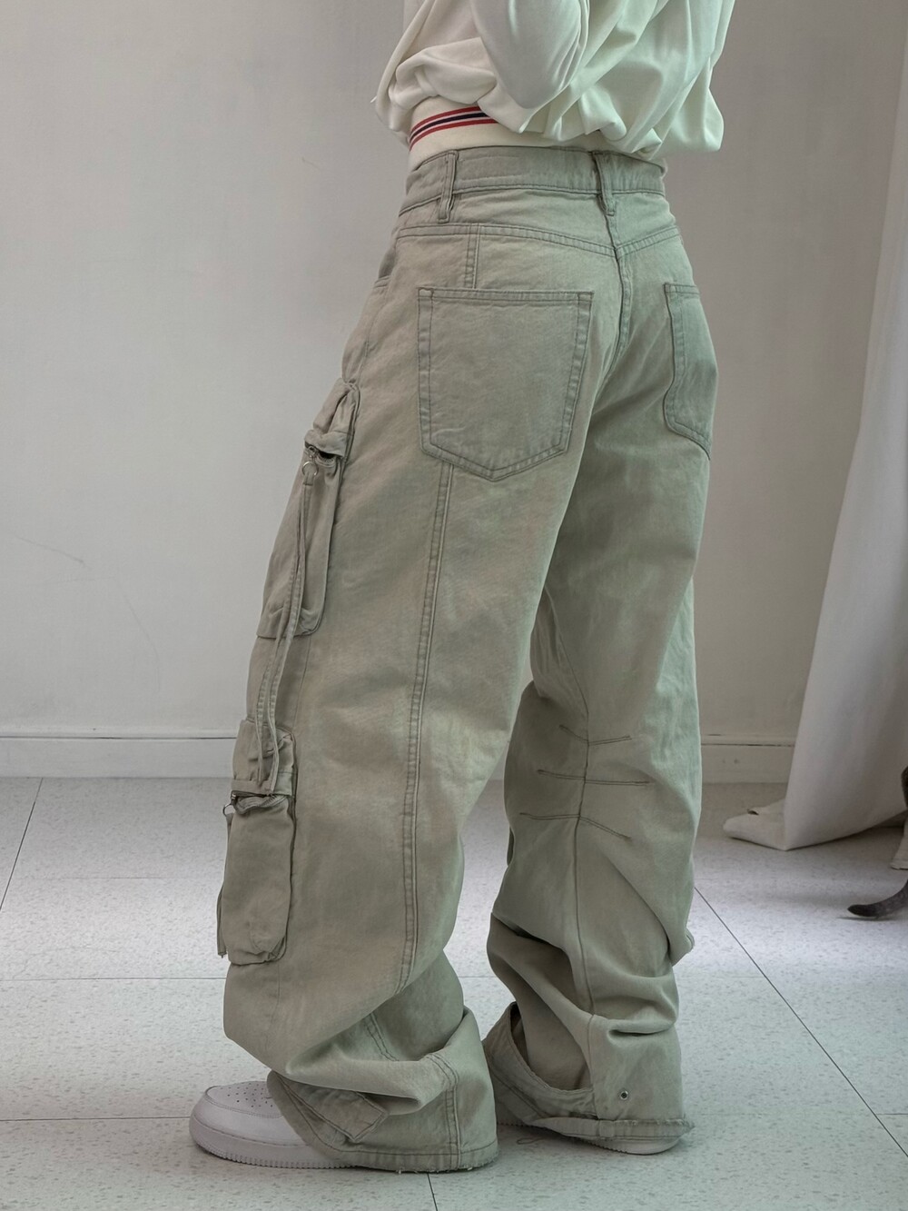 •큼직하게 들어가있는 포켓 디자인이 유니크한 카고팬츠✌🏻 깔곰와이드한 실루엣이 넘 예쁘져