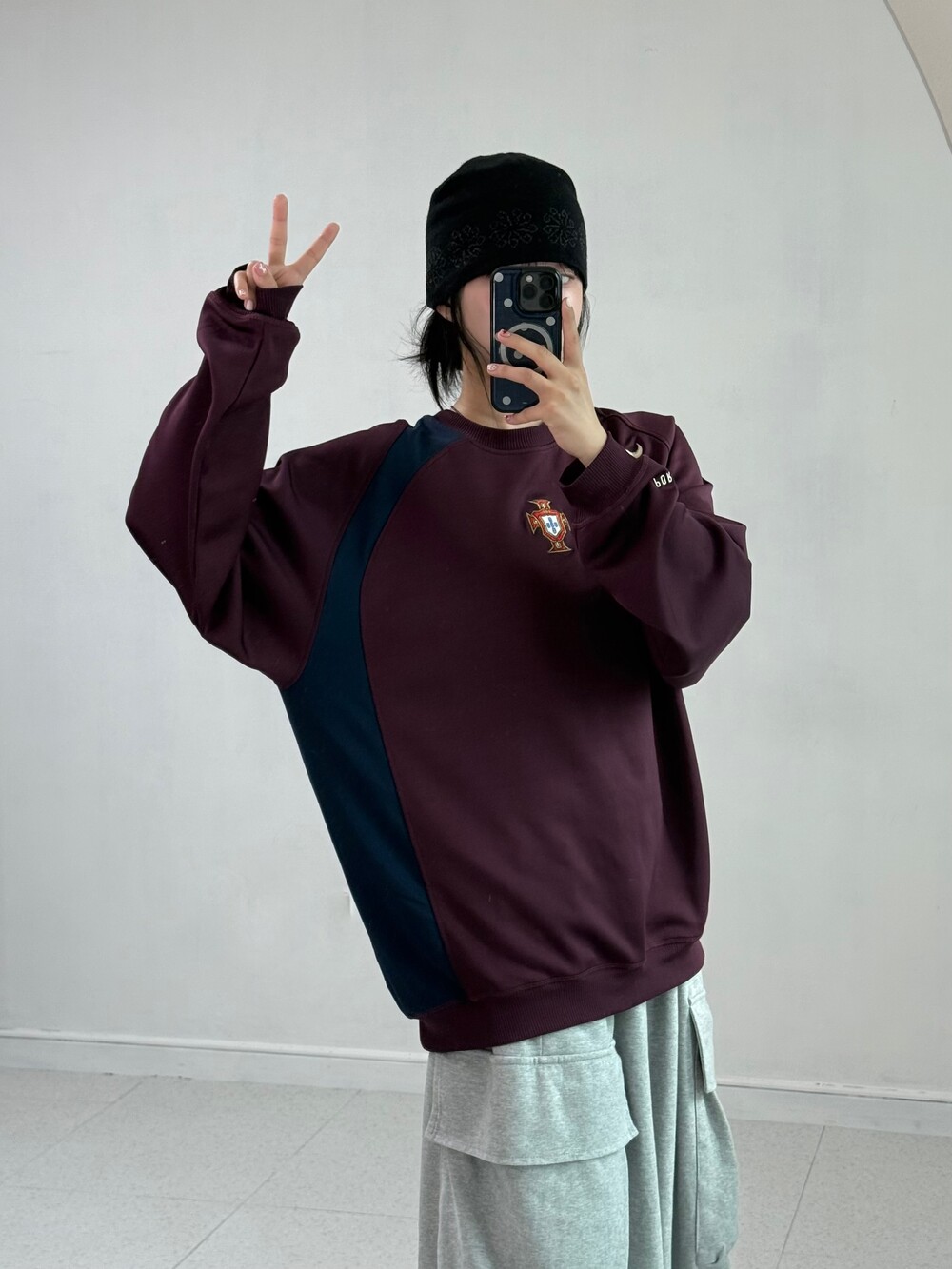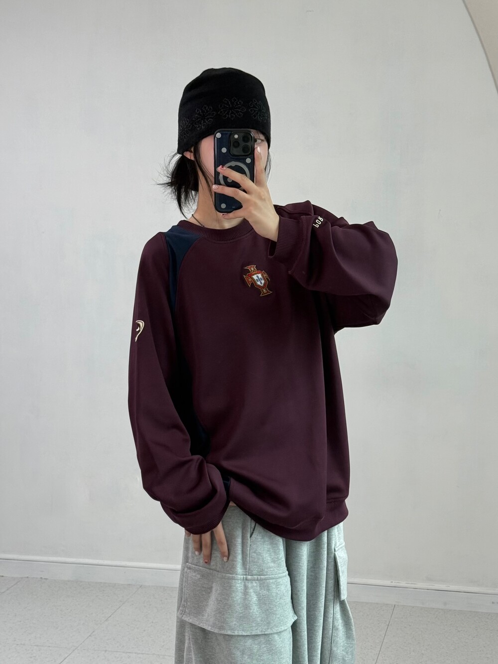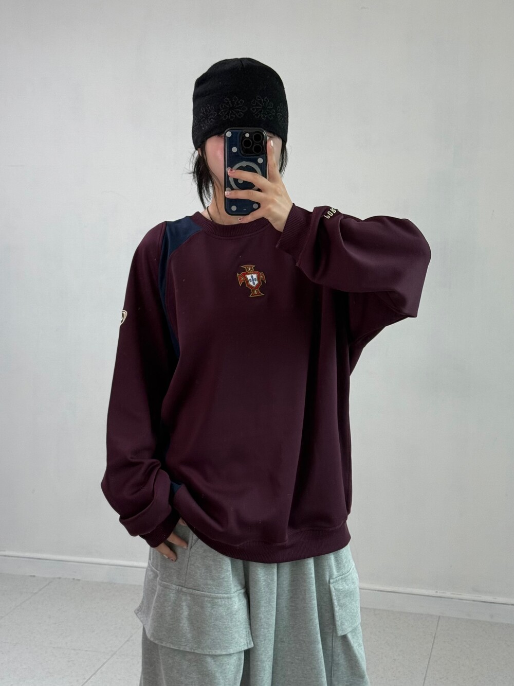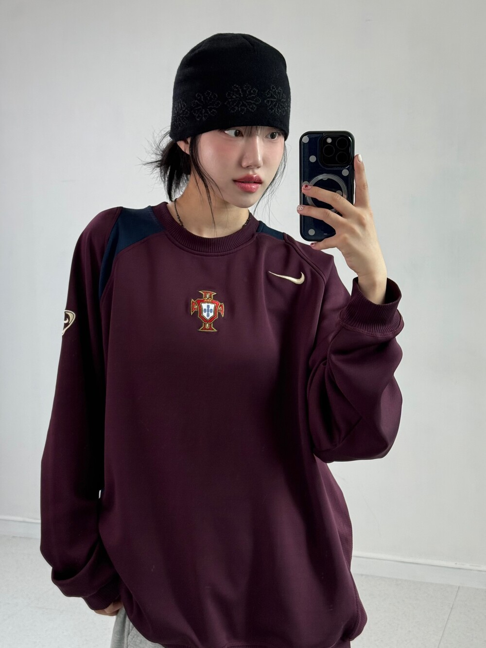 •나이키 포트투갈 04-06시즌 써멀탑 입니다! 버건디+네이비 조합이 넘 예쁘구 아방루즈핏이 진짜 도라방스 입니다.. 안팔리면 제가 입고싶네여 ㅜㅜ(진심x100)