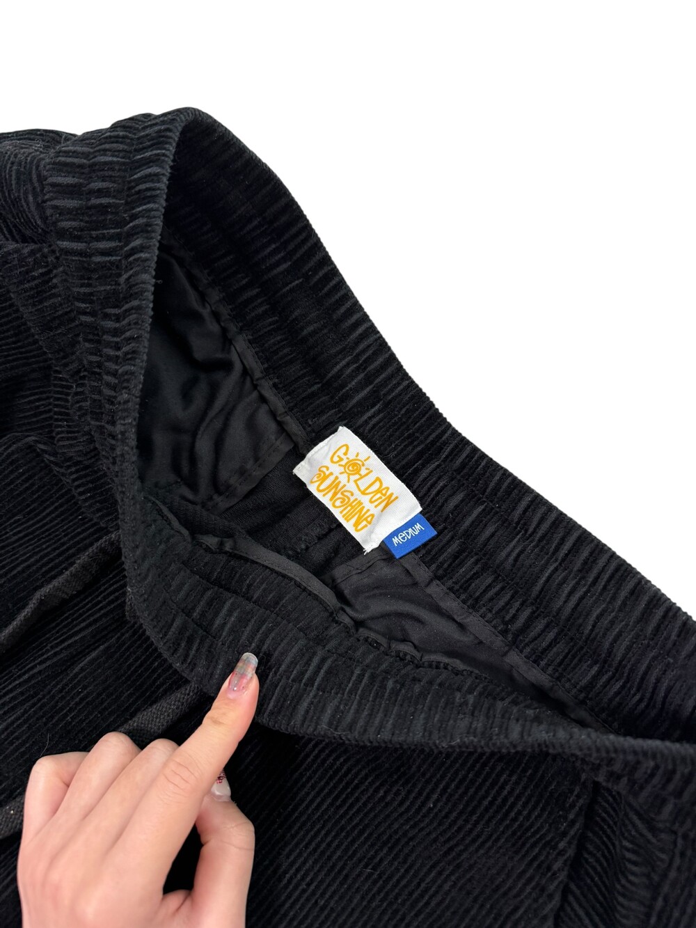 •골든 선샤인 코듀로이 커브드 팬츠 입니다. 깔끔한 와이드핏이 정말 너어무 예뻐요! 데일리템으로 최고,,
