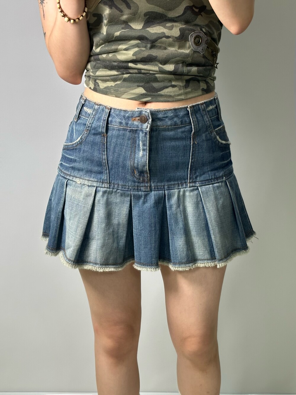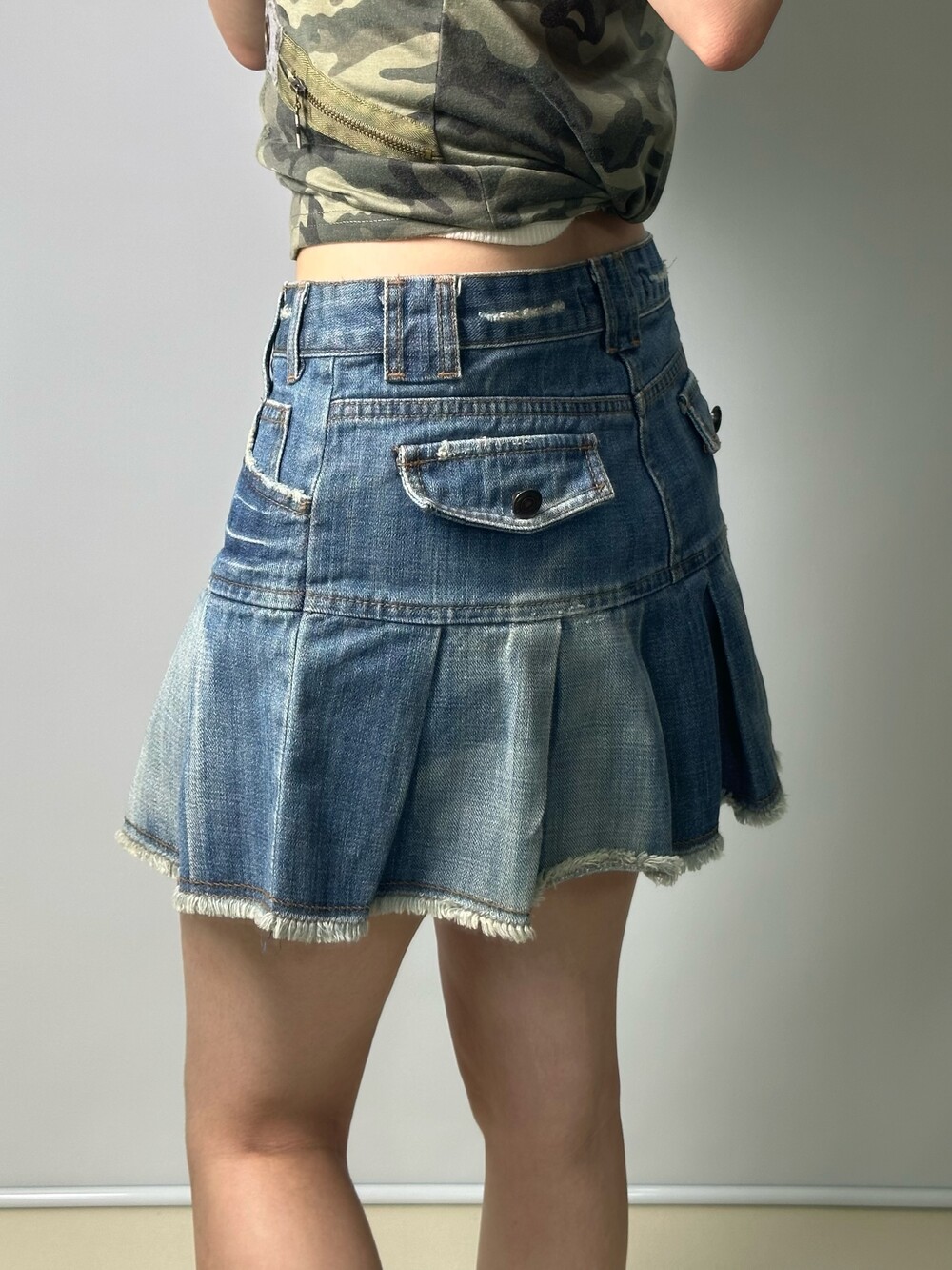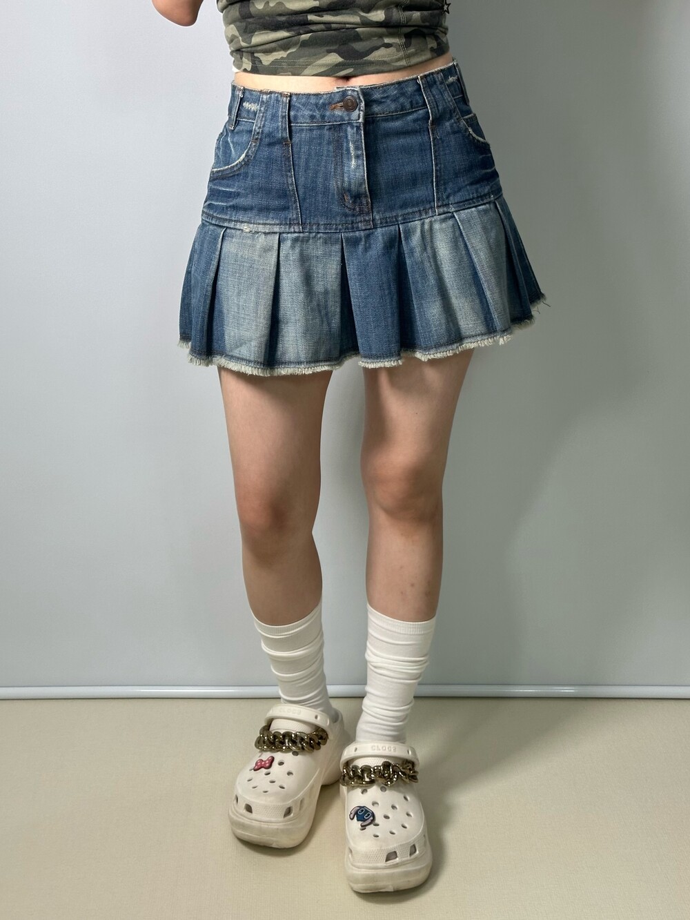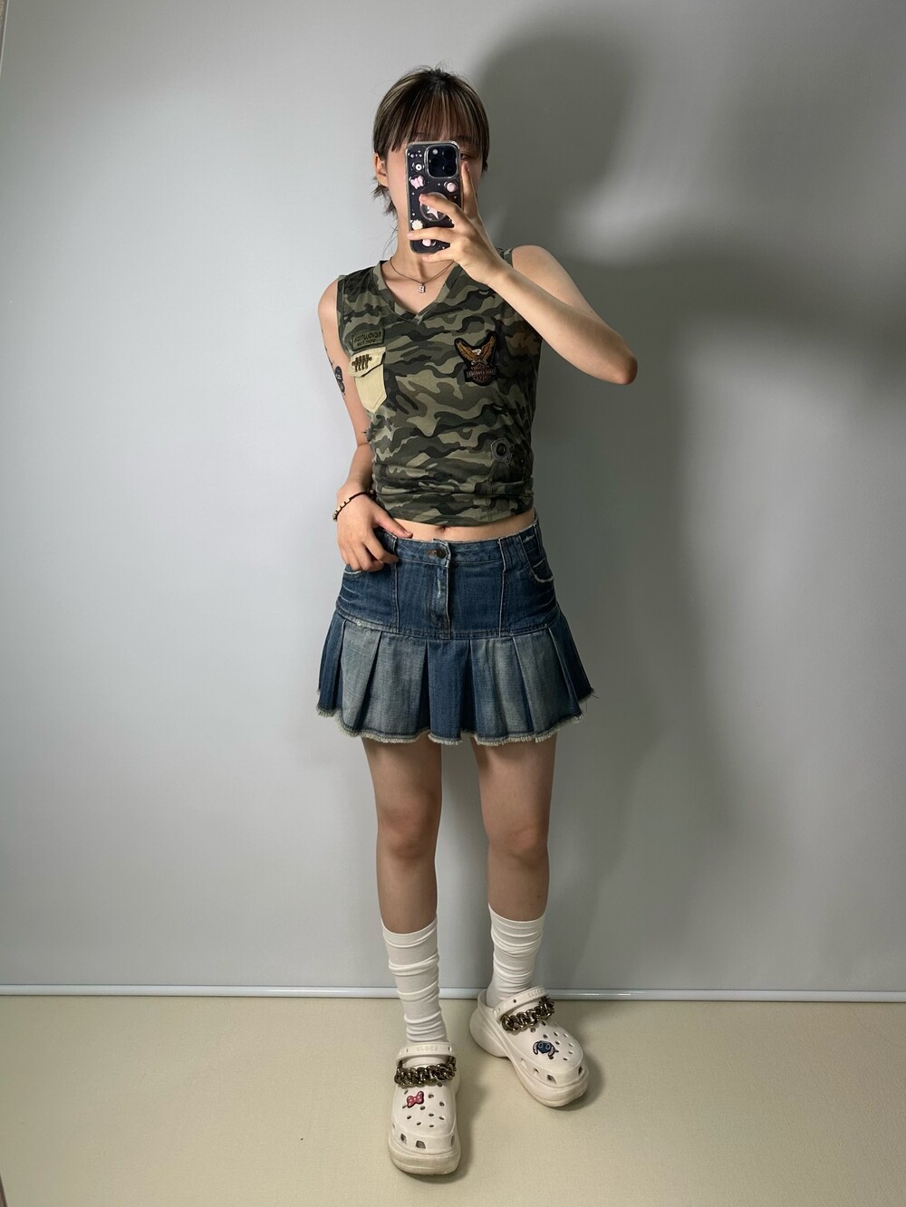 •릴스에서 착용한 스커트와 비슷한 디자인으로 스커트 가지고 왔어요! 기장도 163기준 너무 짧지 않고 허리에 걸쳐 하이틴스럽게 착용하기 너무 좋았어요:)! 앞에 워싱도 예쁘게 빠지고,, 넘 귀여운 스커트에요!
