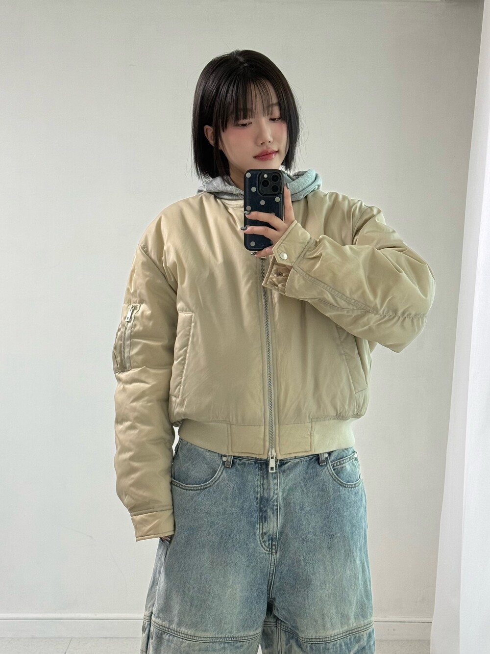 •쿠어 나일론 봄버자켓 입니다. 투웨이라 원하시는 대로 연출하시기 좋습니다ㅎ.ㅎ