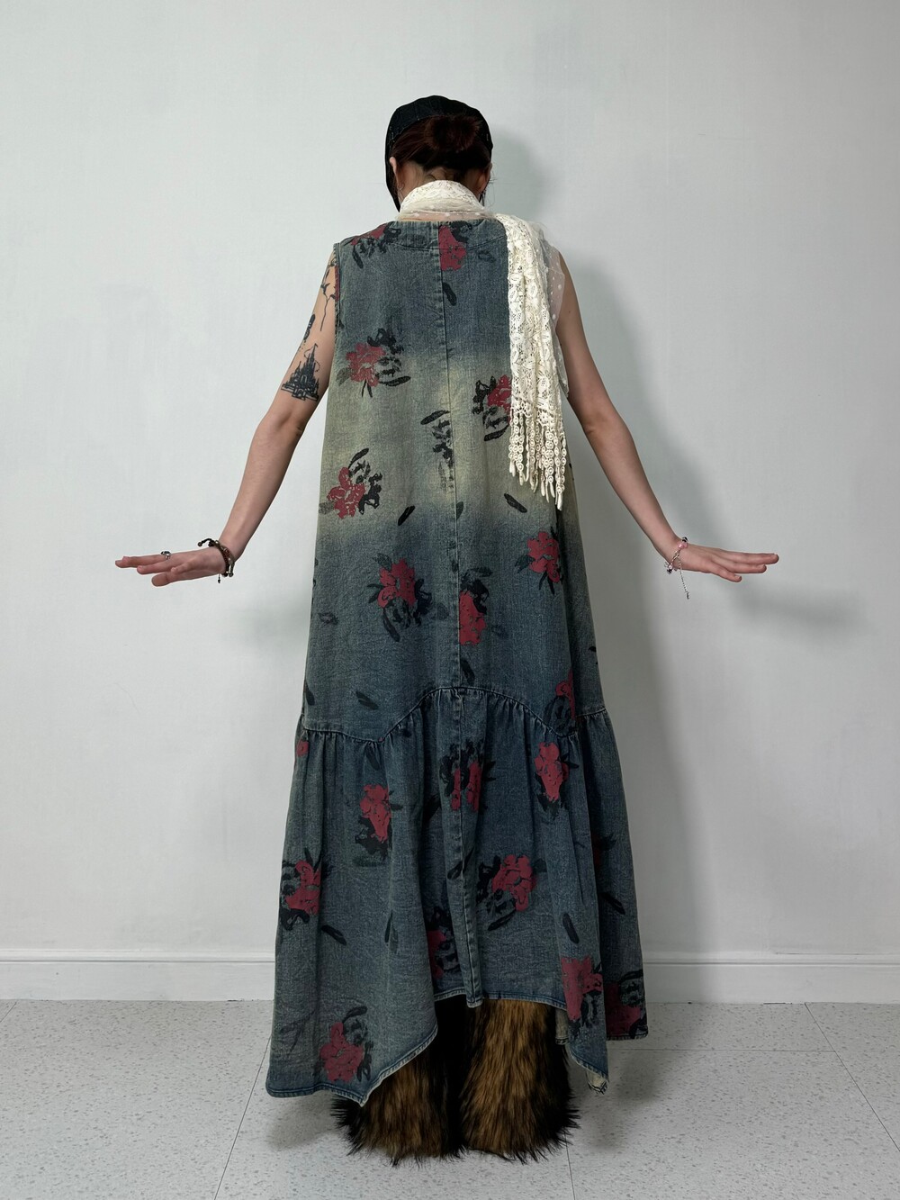 Denim washing flower onepiece