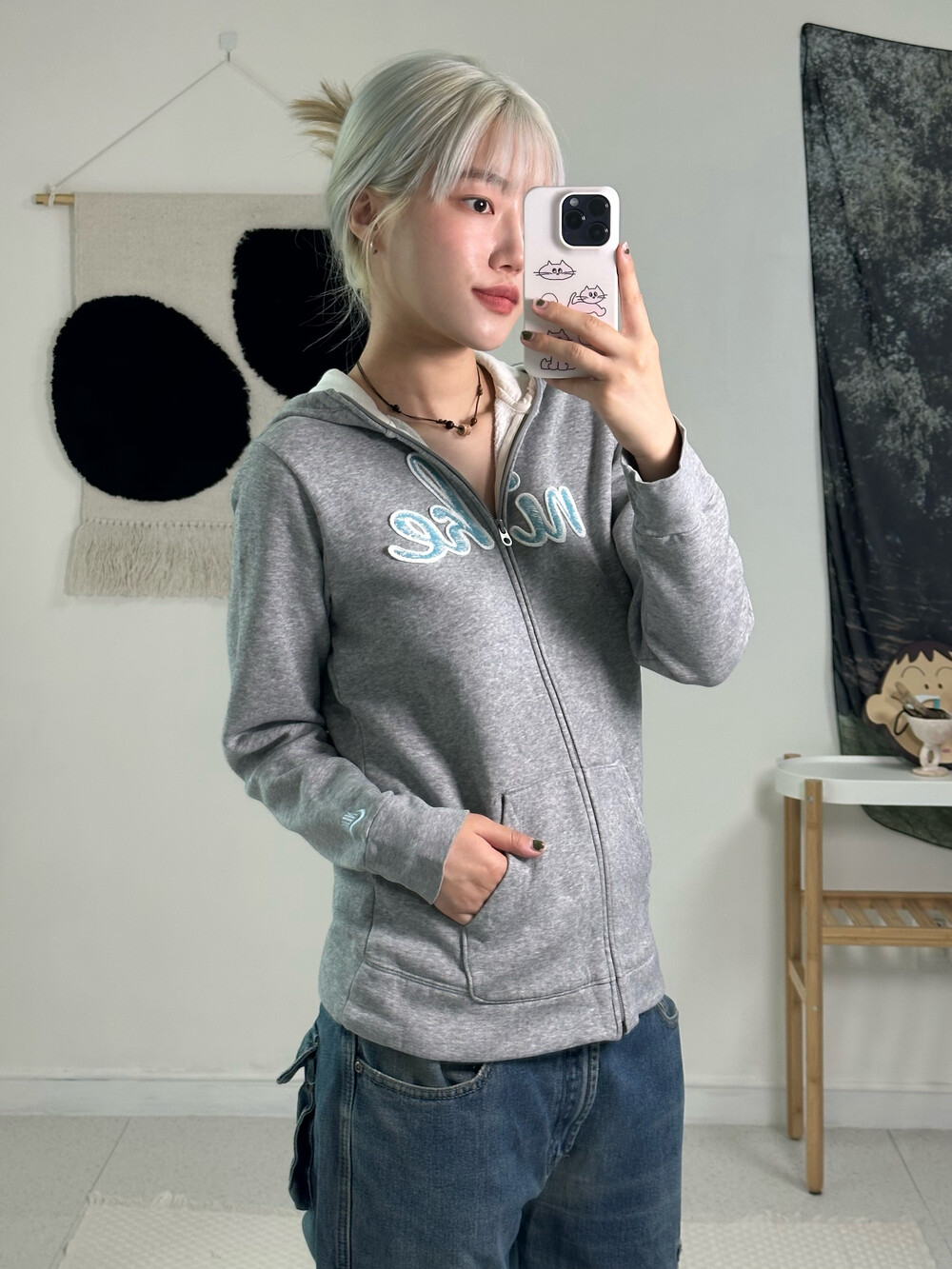 •그레이 컬러의 나이키 후드집업 이에요! 특히 그레이와 스카이블루 조합이 무진장 폭닥하답니다 .. 상체라인을 예쁘게 잡아줘서 더 마음에 들었던 제품입니다ㅎㅎ