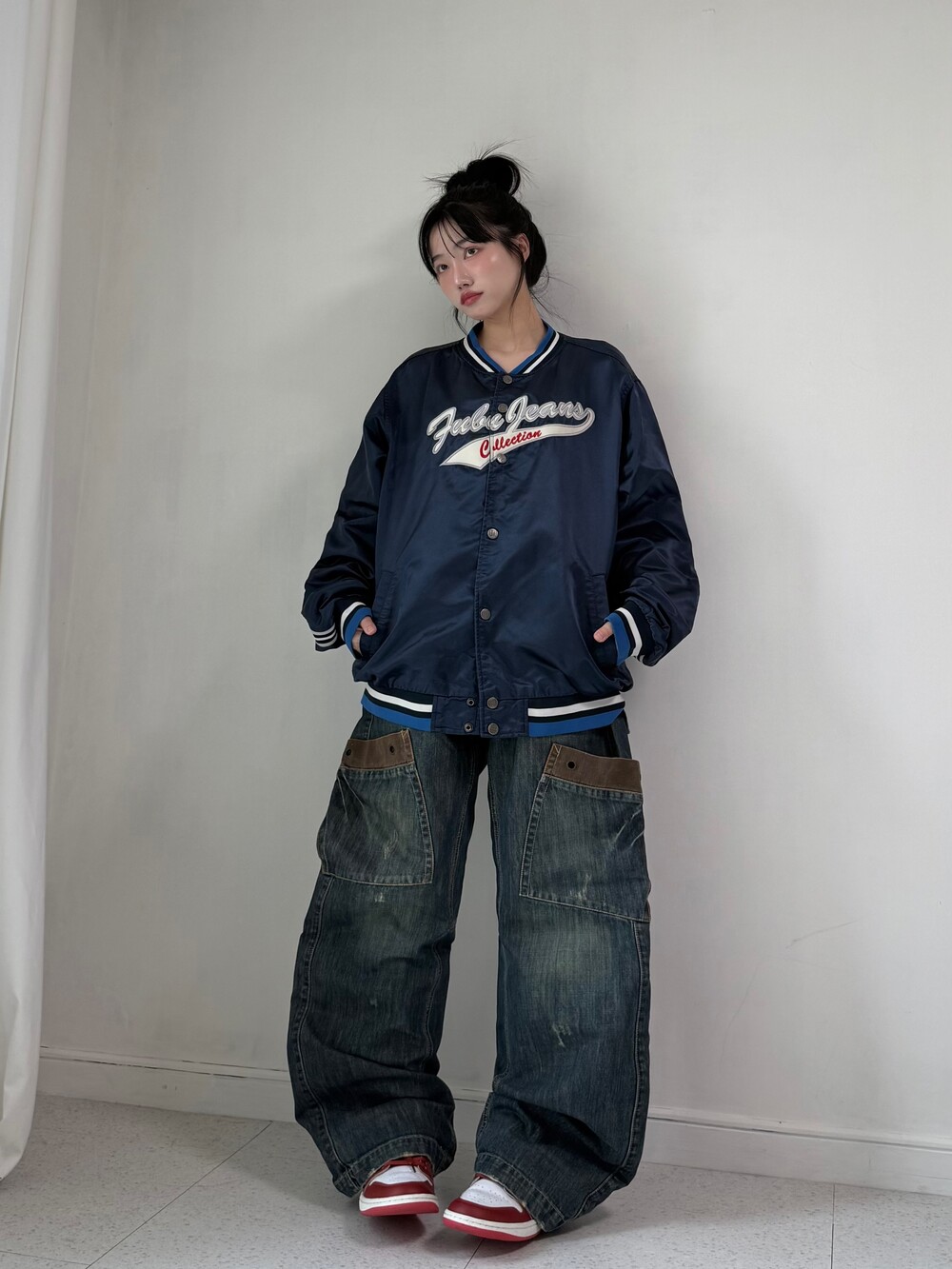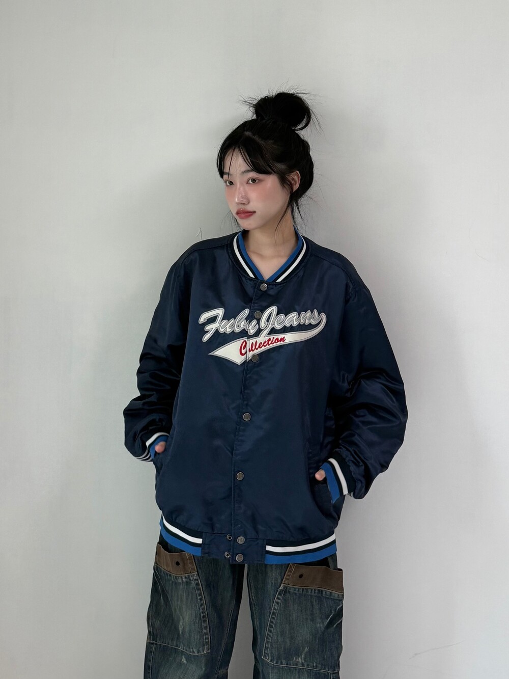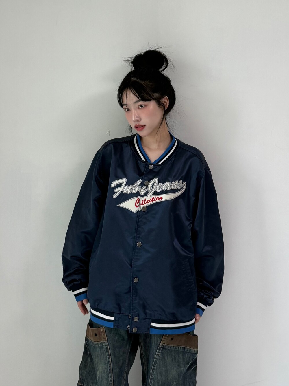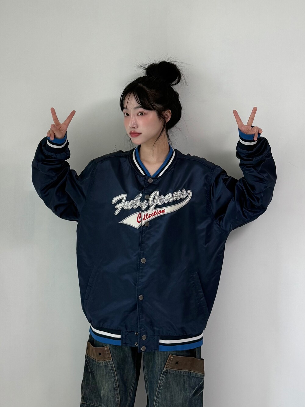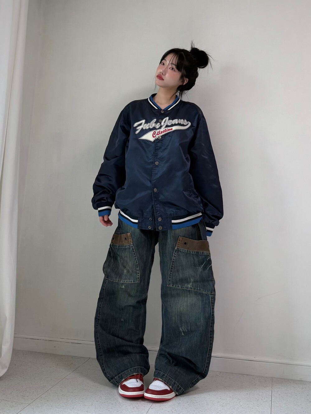 •후부 네이비 스타디움 자켓이에요! 입었을때 가벼우면서 편안한 착용감이라 봄에 입어주시기 딱 좋은 아우터랍니다ㅎㅎ 디자인도 넘 귀엽고 힙하지요