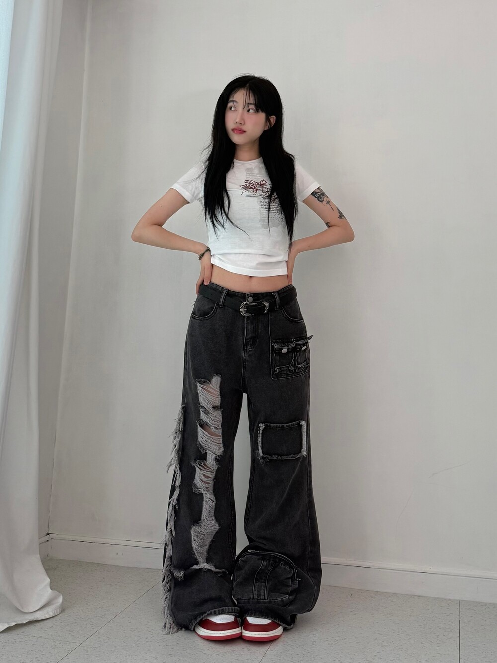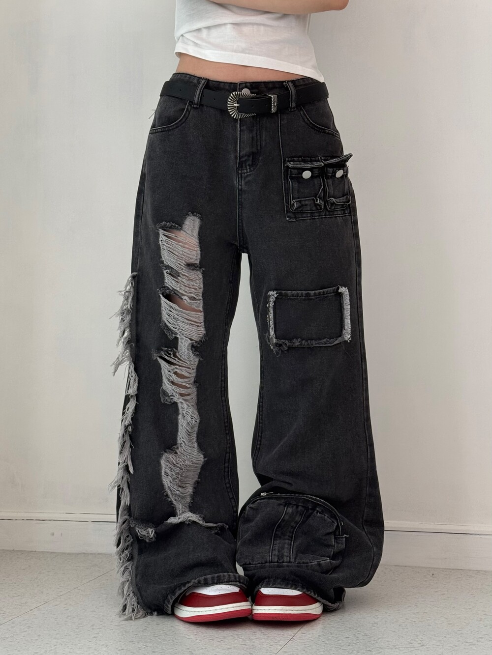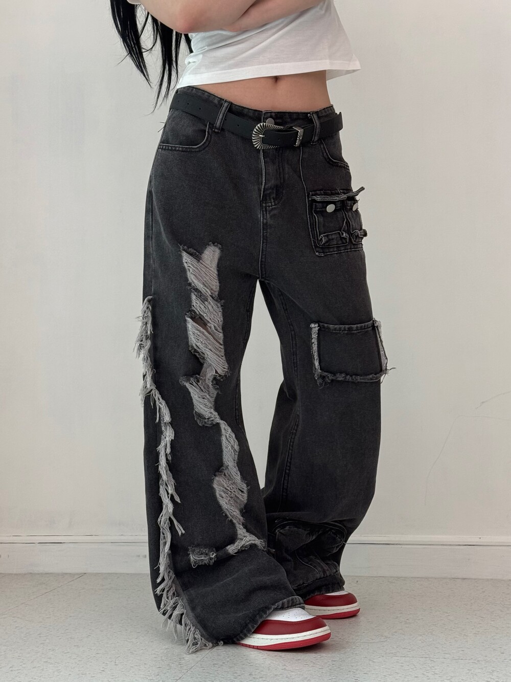 •와이투케이 빈티지 무드 낭낭- 데미지 디테일이 멋스러운 팬츠에요ㅎㅎ 부츠컷이라 다리도 말라보이는 매직,,><