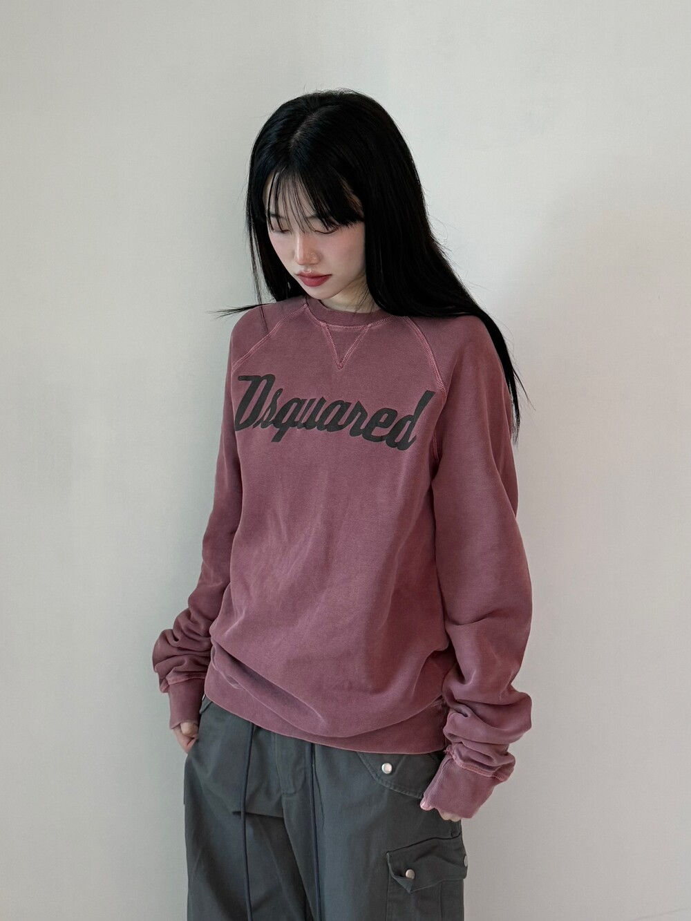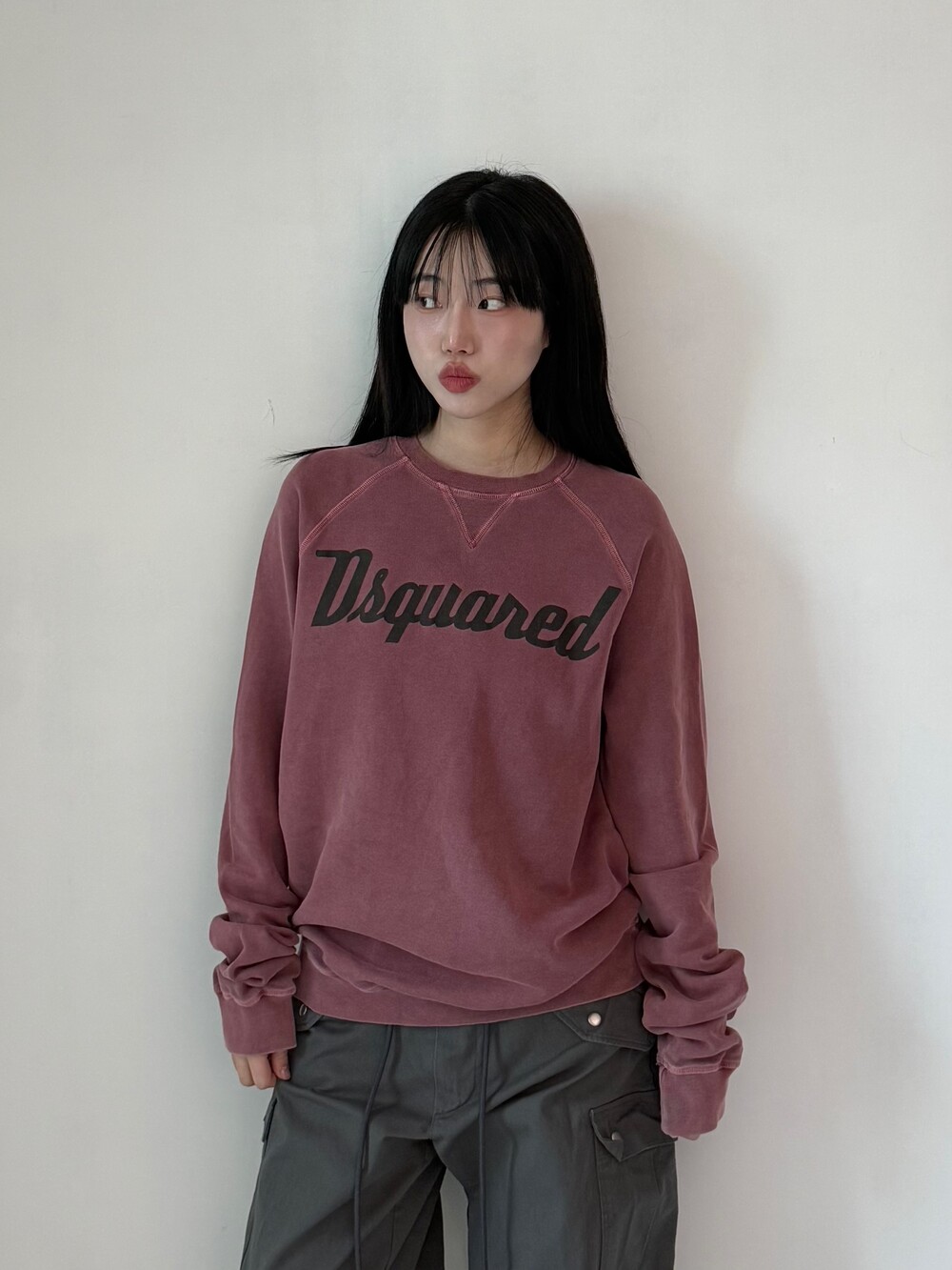 •은은한 워싱이 들어간 디스퀘어드 빈티지 핑크 맨투맨이에요! 색감이 흔하지 않은 빈티지 컬러감이라 더욱 마음에 드는거 있죠~~🥰
