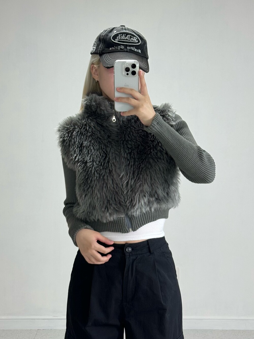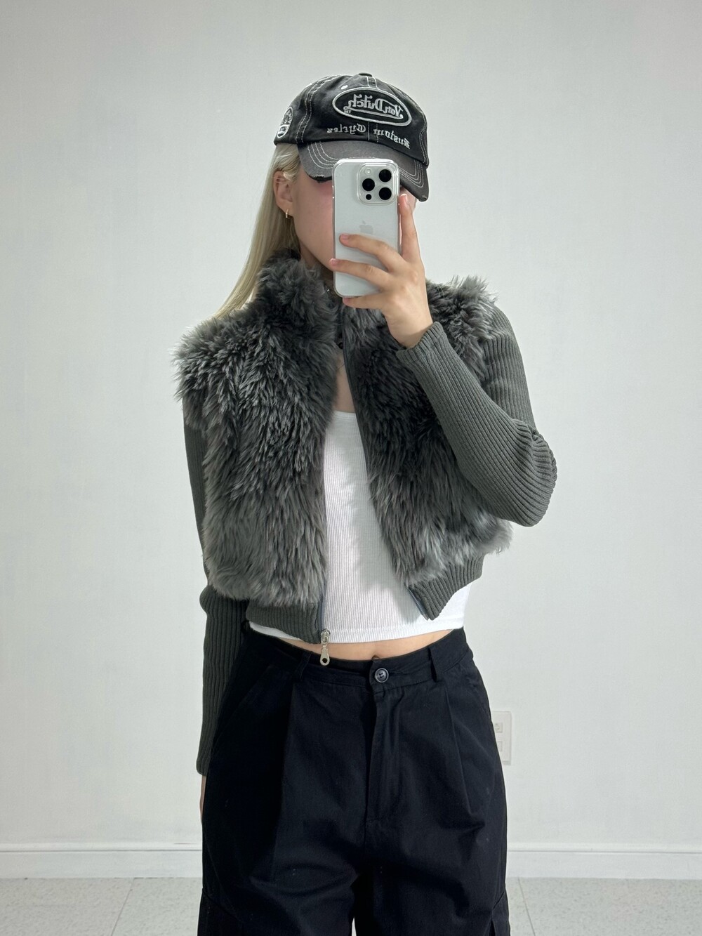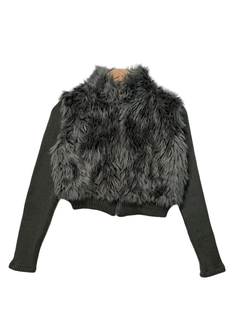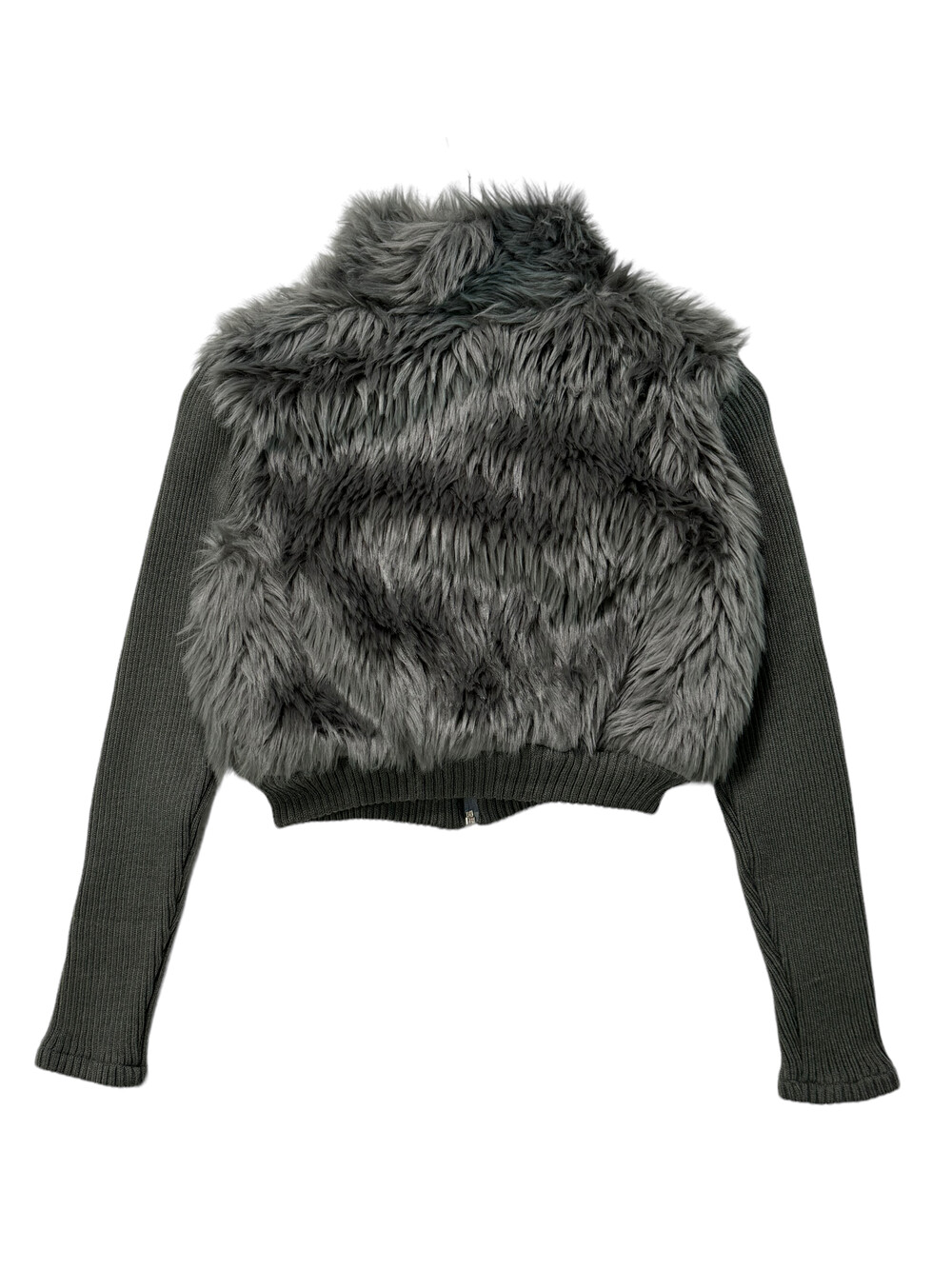 Knit fur crop zipup
