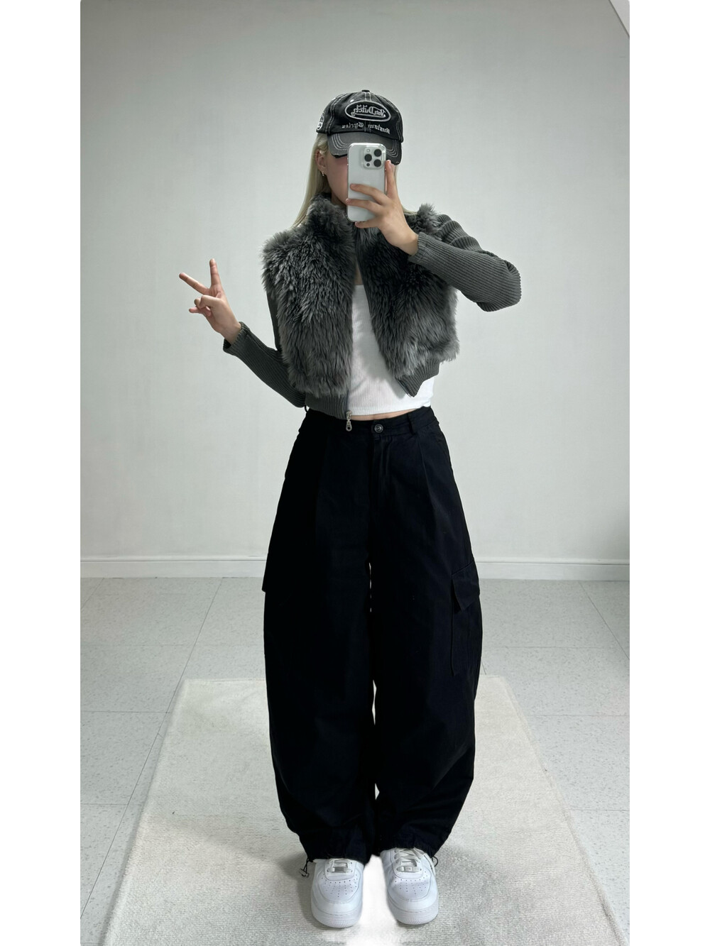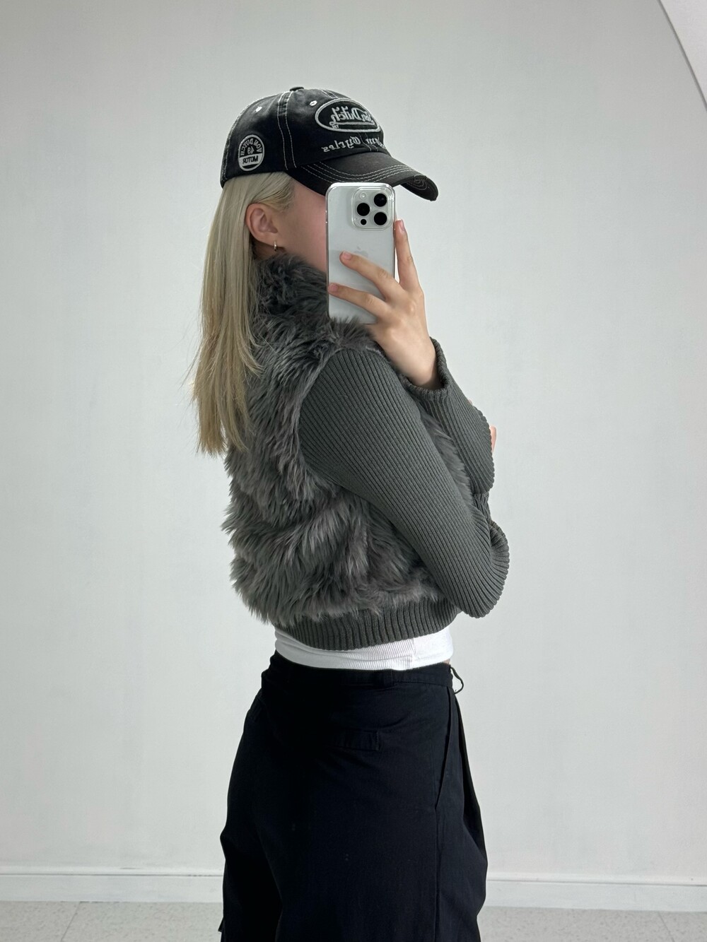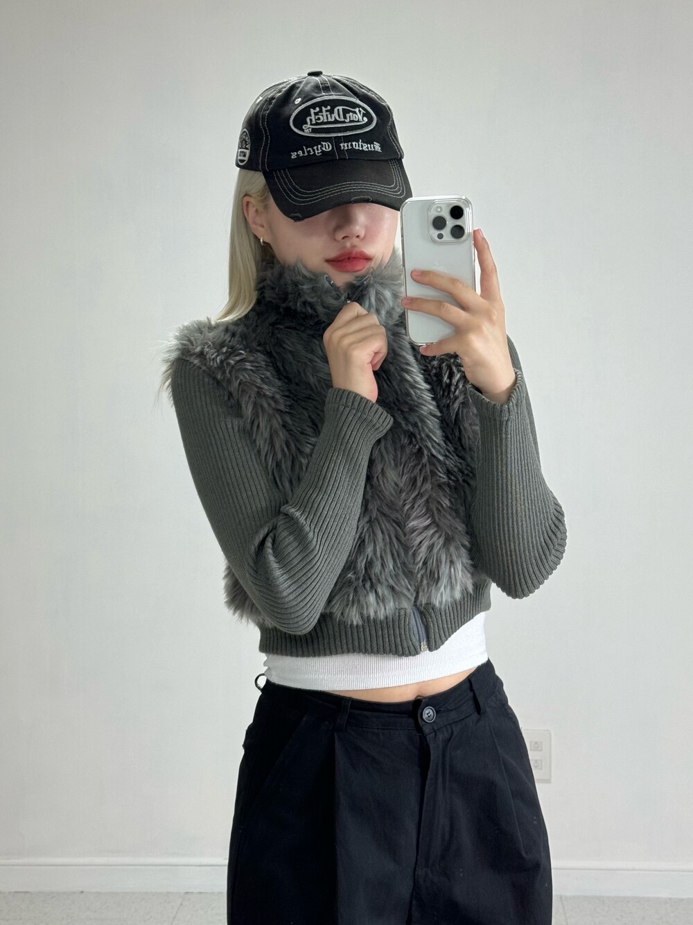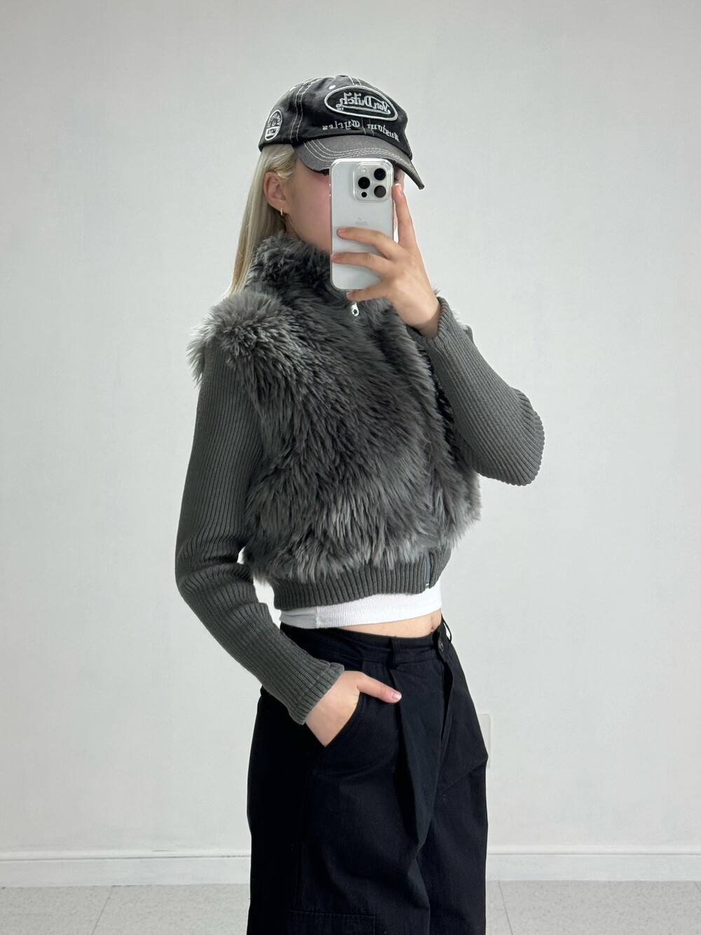 Knit fur crop zipup