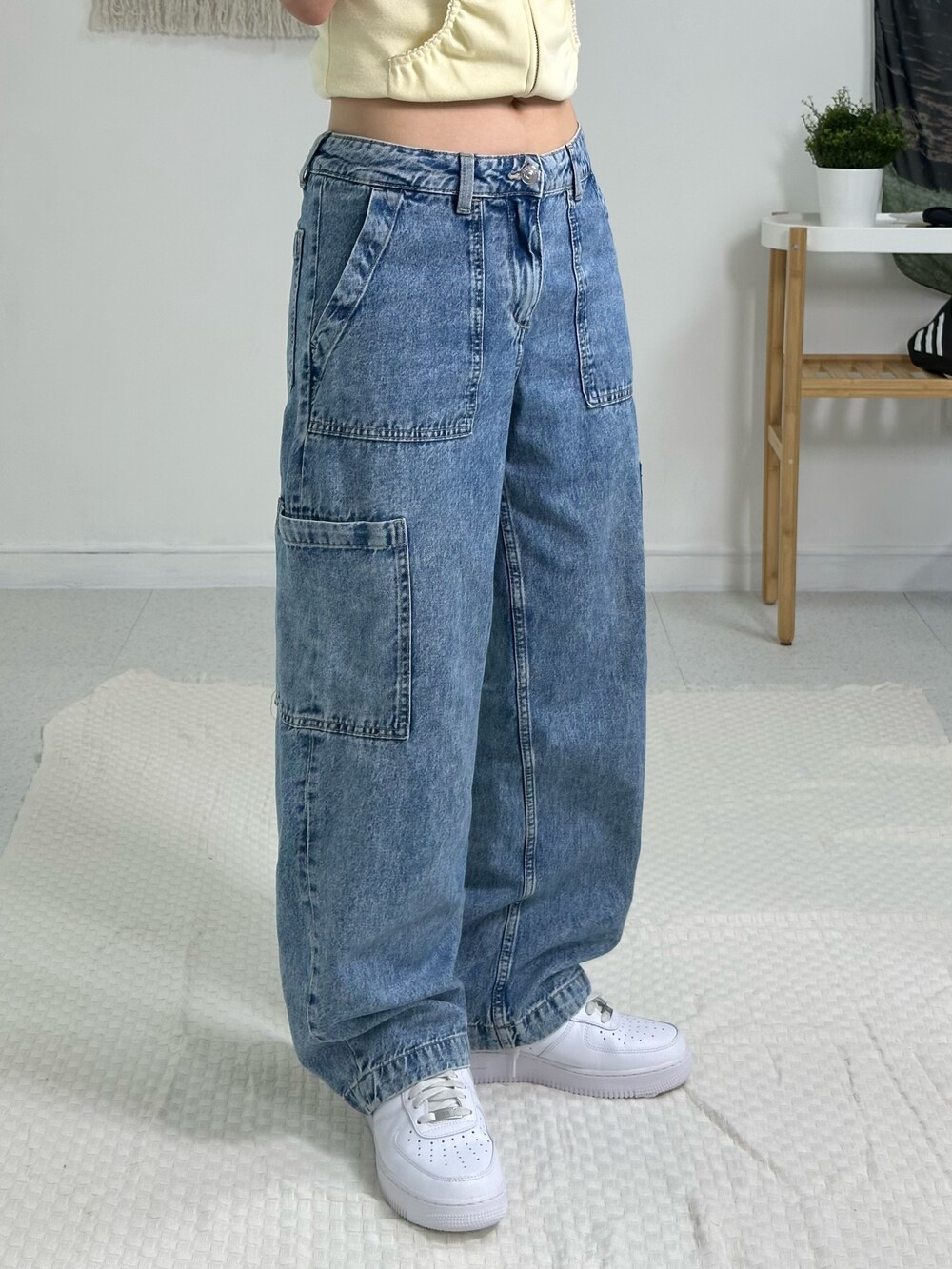 Stone denim cargo pants