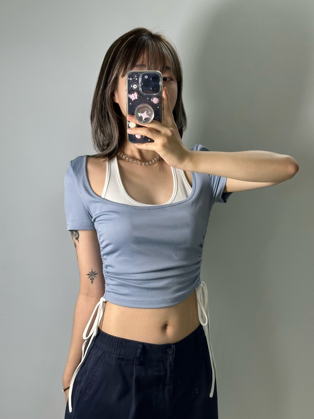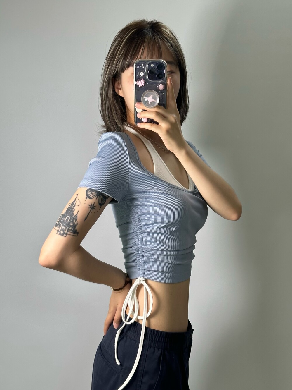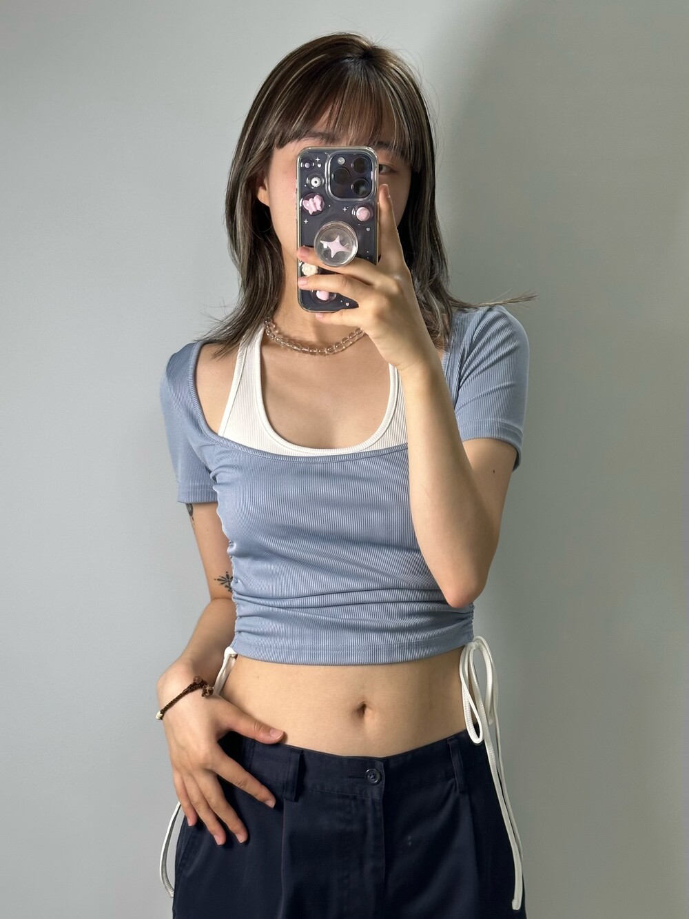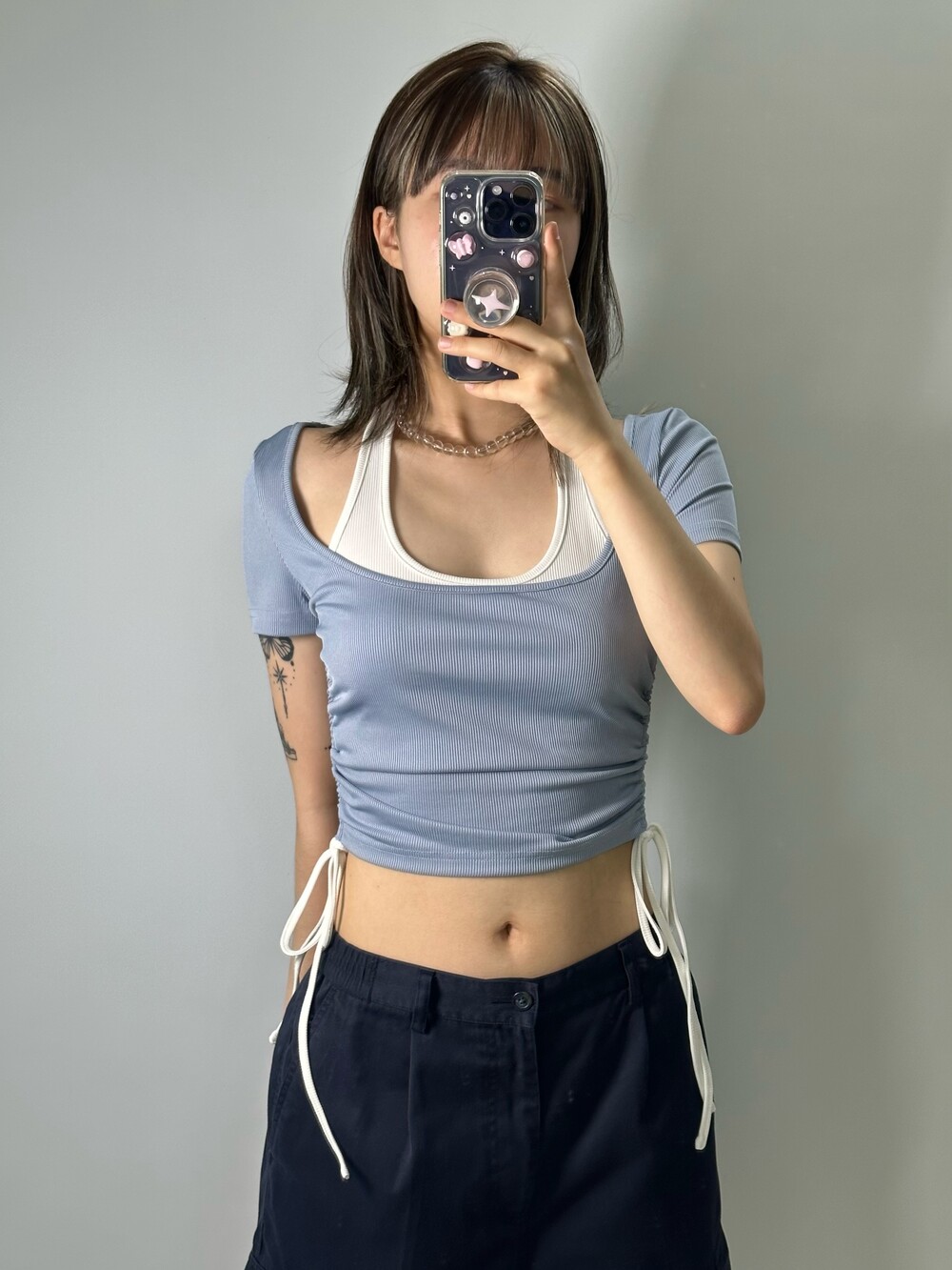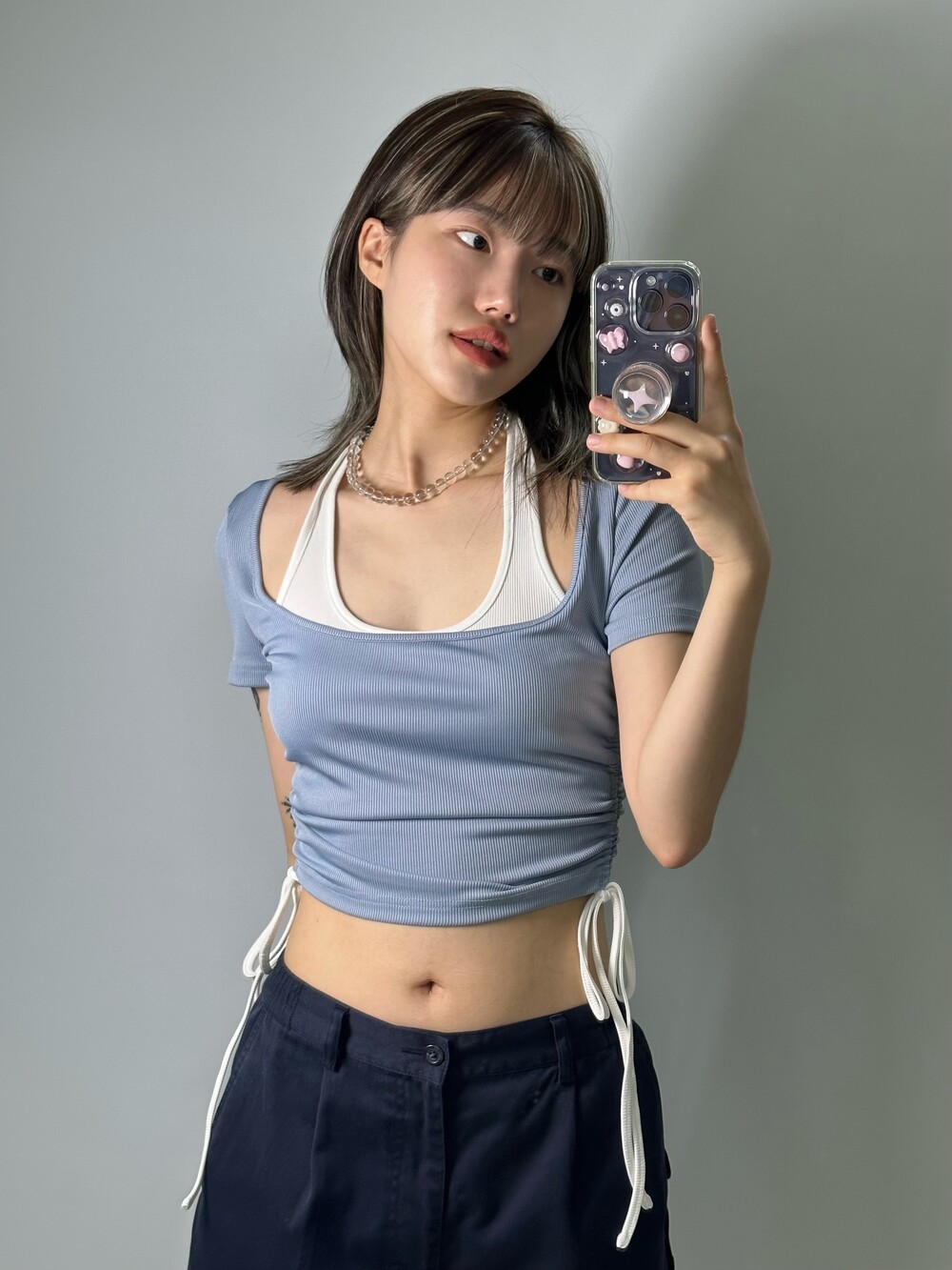 •샵사이다 제품이에요! 레이어드가 되어있는 제품이라 단독으로 착용해주시면 엄청 편하답니다! 시축성도 좋고, 사이드에 셔링 디테일을 줄 수 있어서 좋아요!
