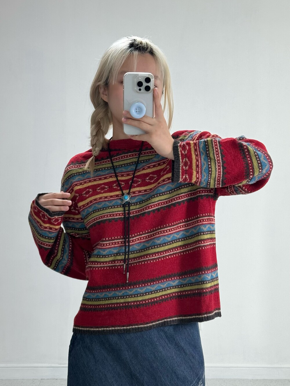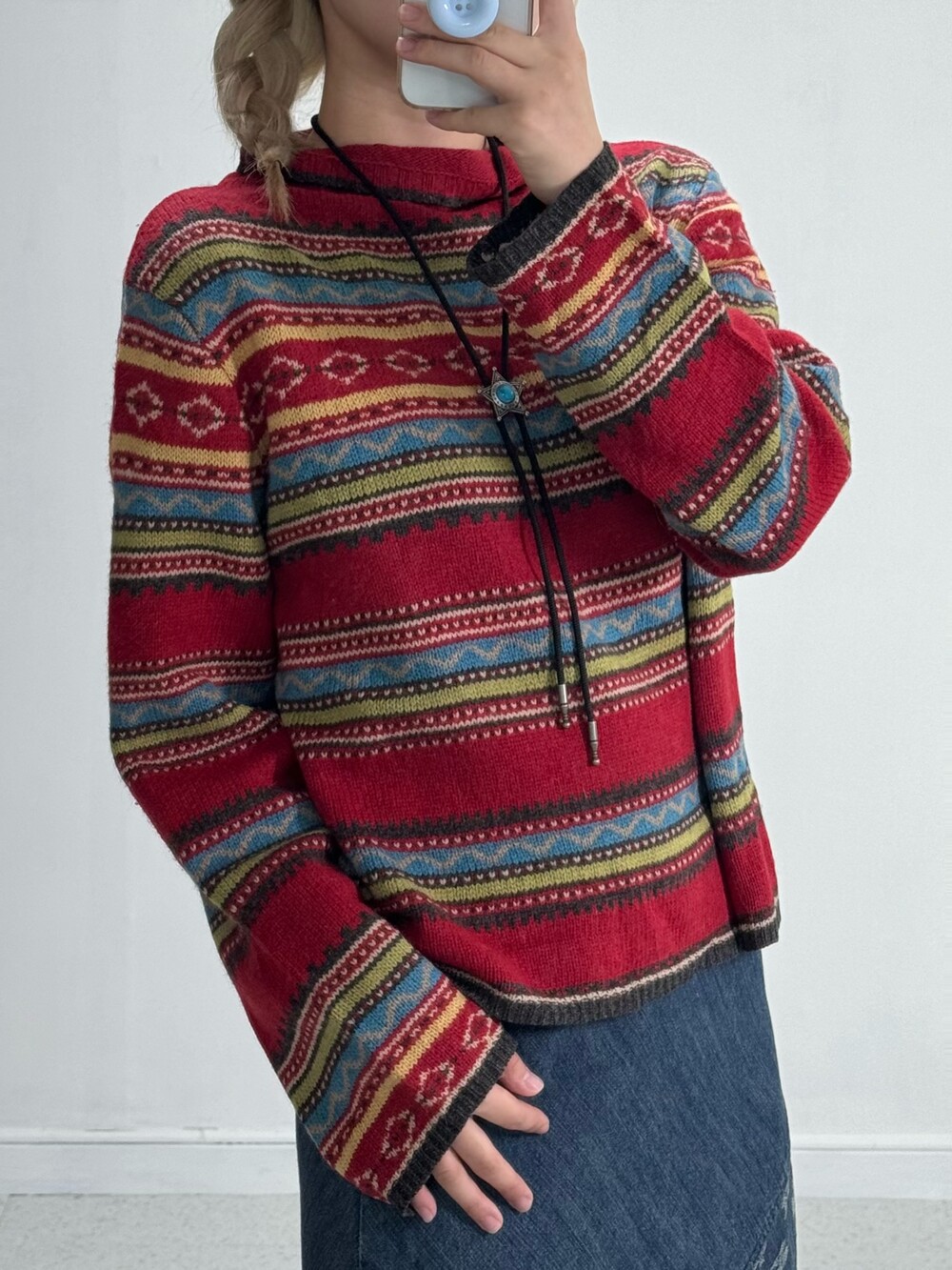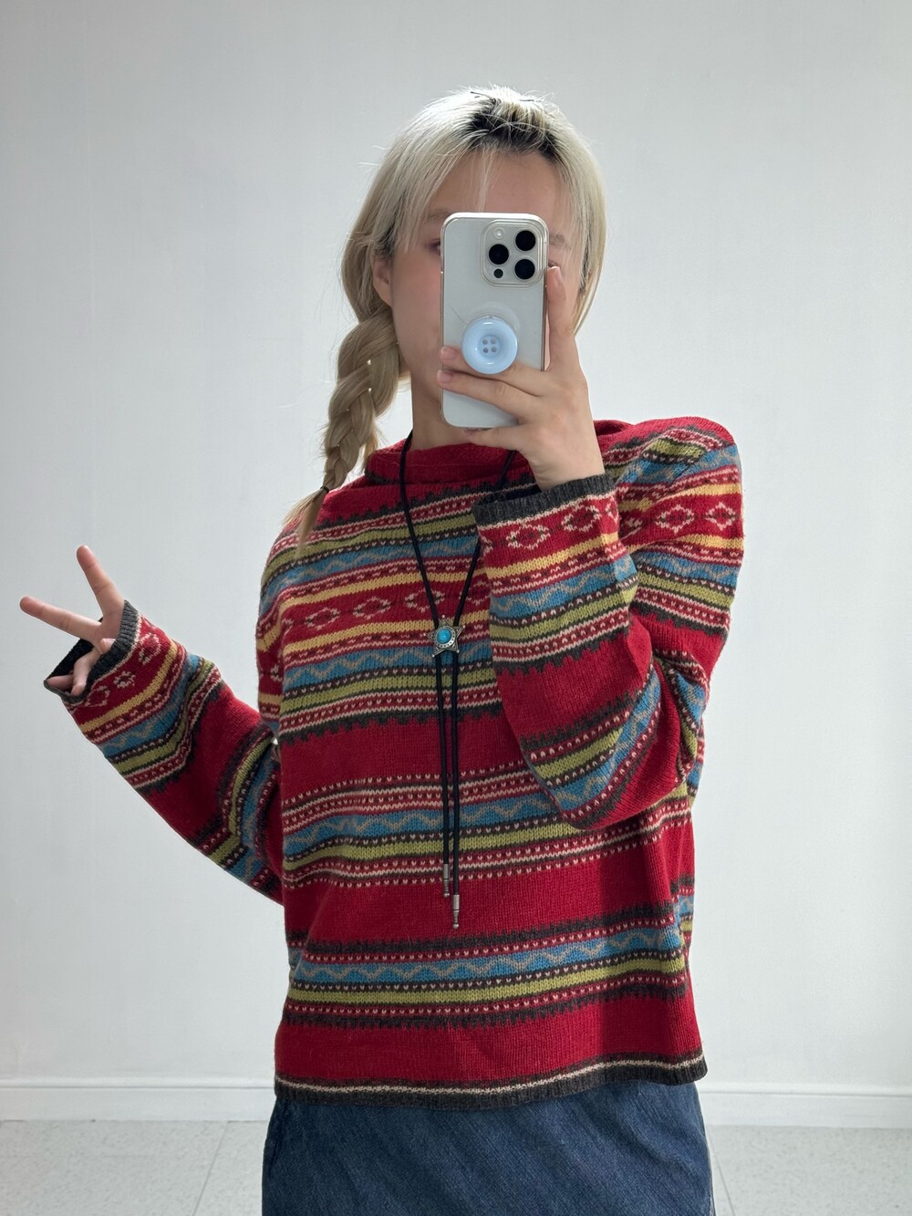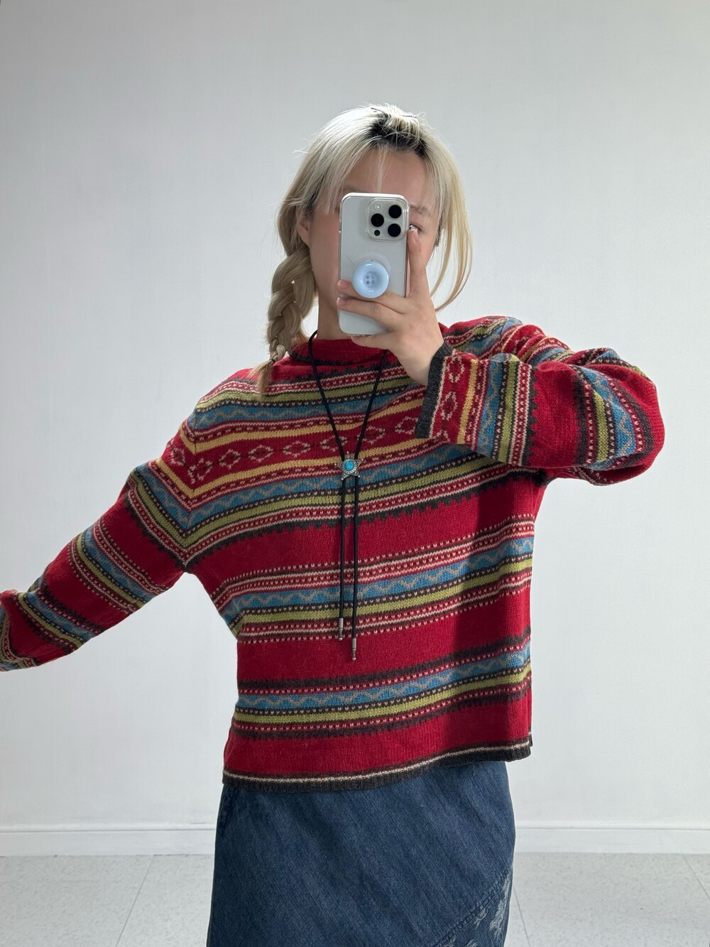 •보헤미안, 에스닉, 크리스마스 분위기 까지 느낌 가득한 니트에요! 살짝 루즈한 핏의 반폴라 제품입니다 ㅎㅎ