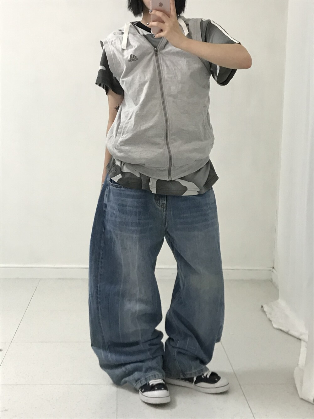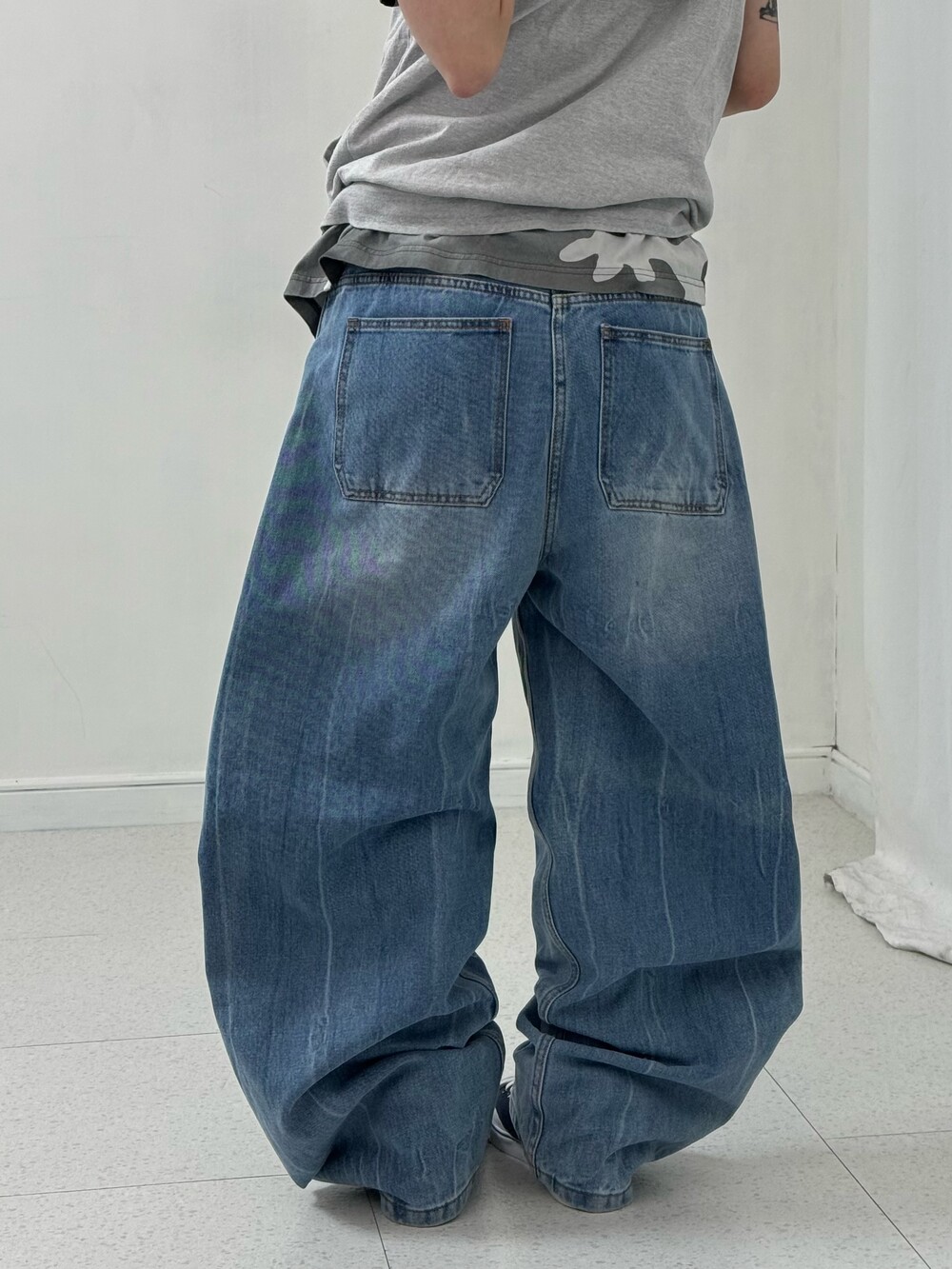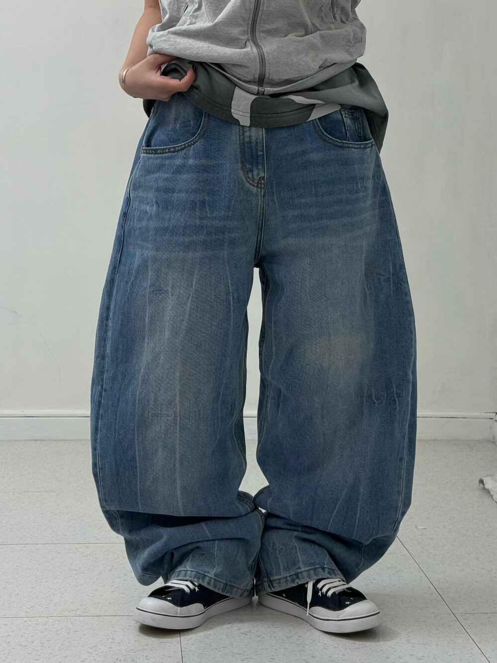 •밀로 아카이브 데님팬츠 입니다. 아.. 이거 핏 진짜 넘 예뻐요!!! 벌룬핏은 싫고 그렇다고 일자핏도 싫은 그런 분들이 입어주시면 됩니다. 적당한 아방루즈핏!!! 강추!!!!