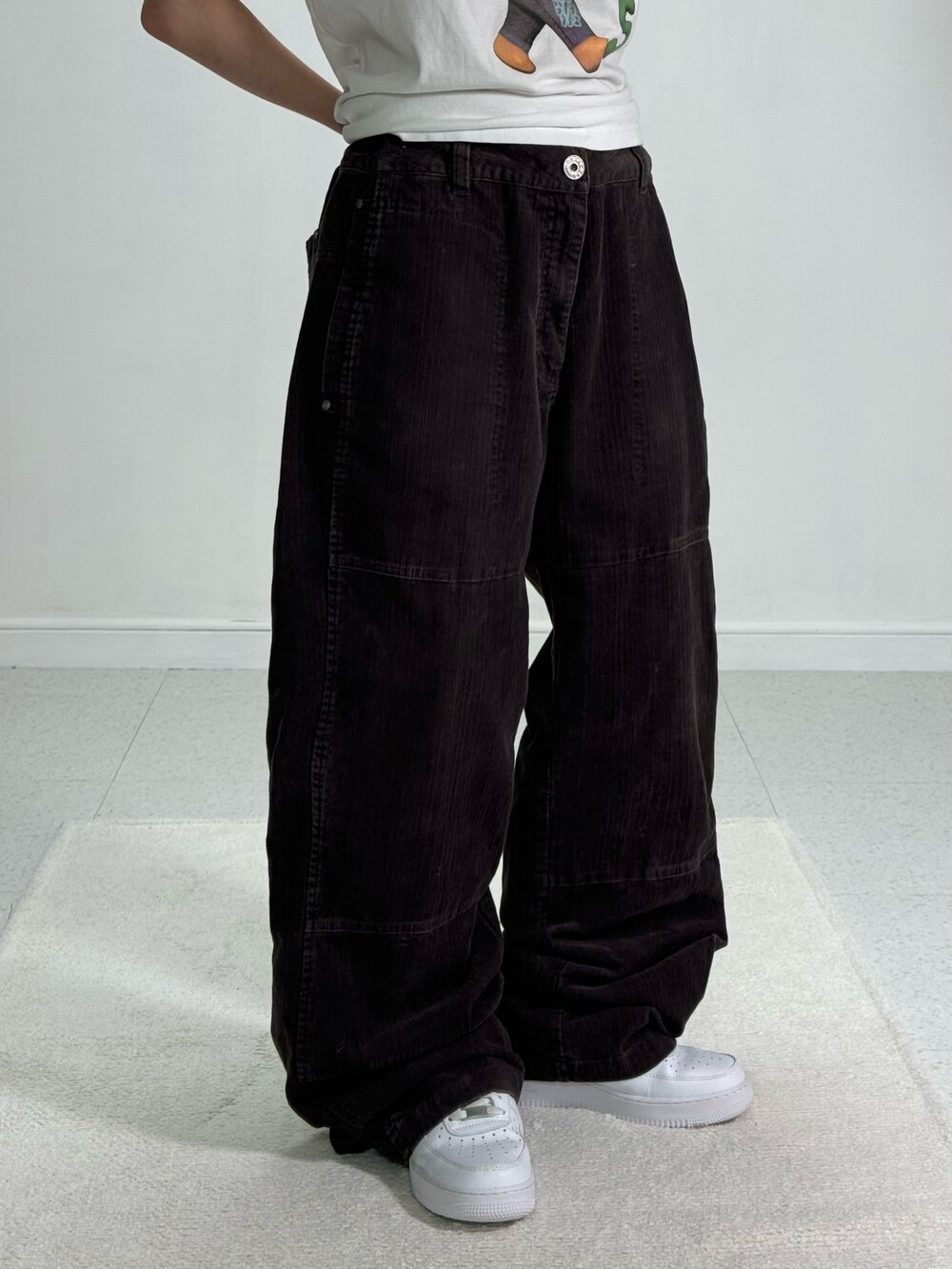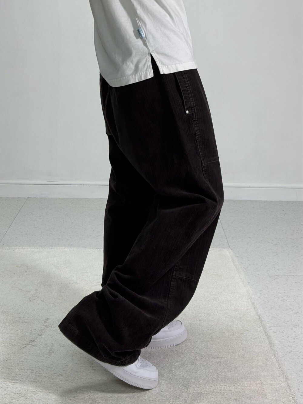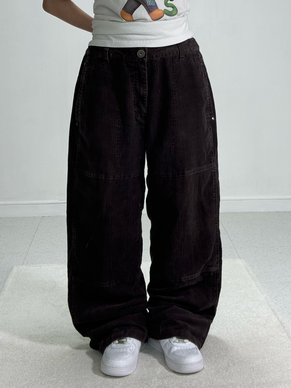 •와이드 루즈 그 자체라고 보시면 됩니다! 어떤 상의와 걸쳐도 잘어울리는 핏이며, 브라운에 살짝 퍼플 한방울 떨어진 색감이라고 보시면 됩니다ㅎㅎ 가을 겨울에 즐겨입기 좋은 코듀로이 원단이며 스티치 디테일 대박!