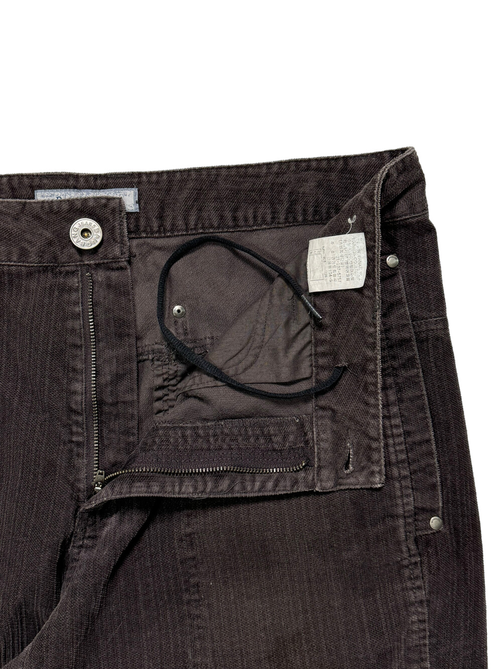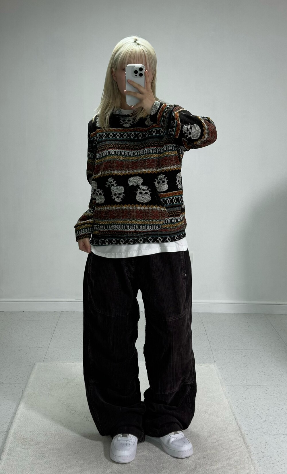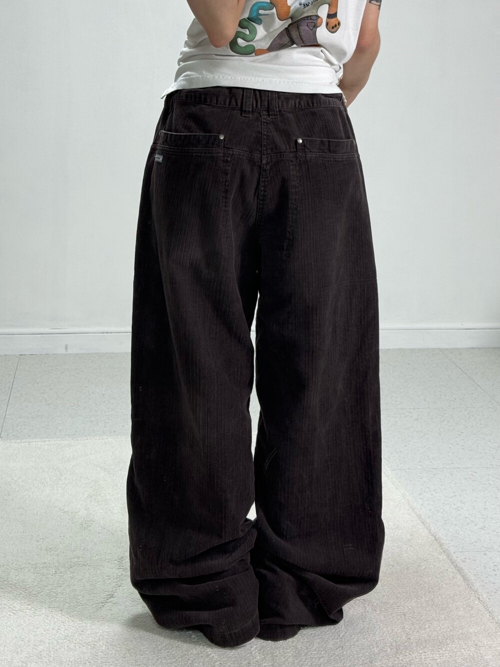 •와이드 루즈 그 자체라고 보시면 됩니다! 어떤 상의와 걸쳐도 잘어울리는 핏이며, 브라운에 살짝 퍼플 한방울 떨어진 색감이라고 보시면 됩니다ㅎㅎ 가을 겨울에 즐겨입기 좋은 코듀로이 원단이며 스티치 디테일 대박!