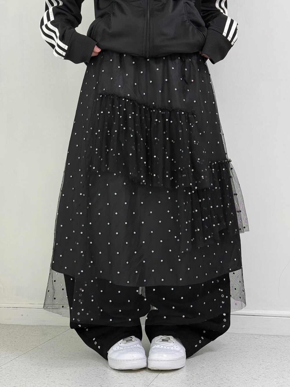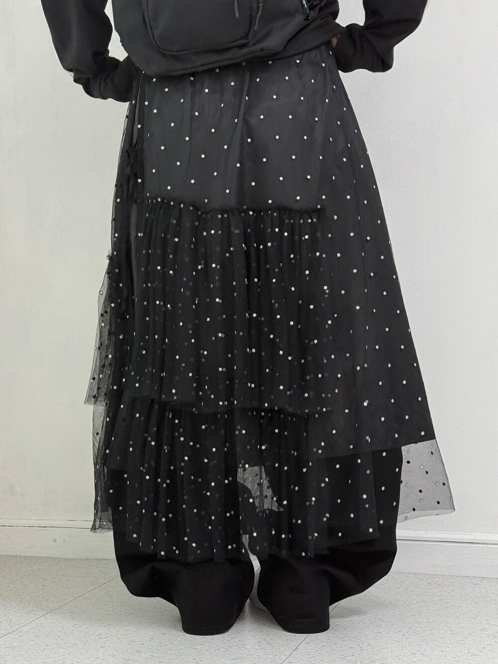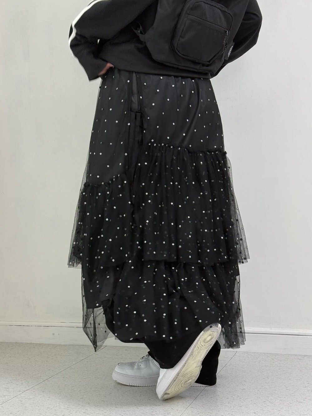 •땡땡이가 너어무 귀여운 스커트에요! 디자인 자체가 독특하고 안감이 실크로 되어 있어 비치거나 단독으로 착용했을때도 부담없이 착용하실 수 있는 빈티지 유니크한 아이템 입니다🖤