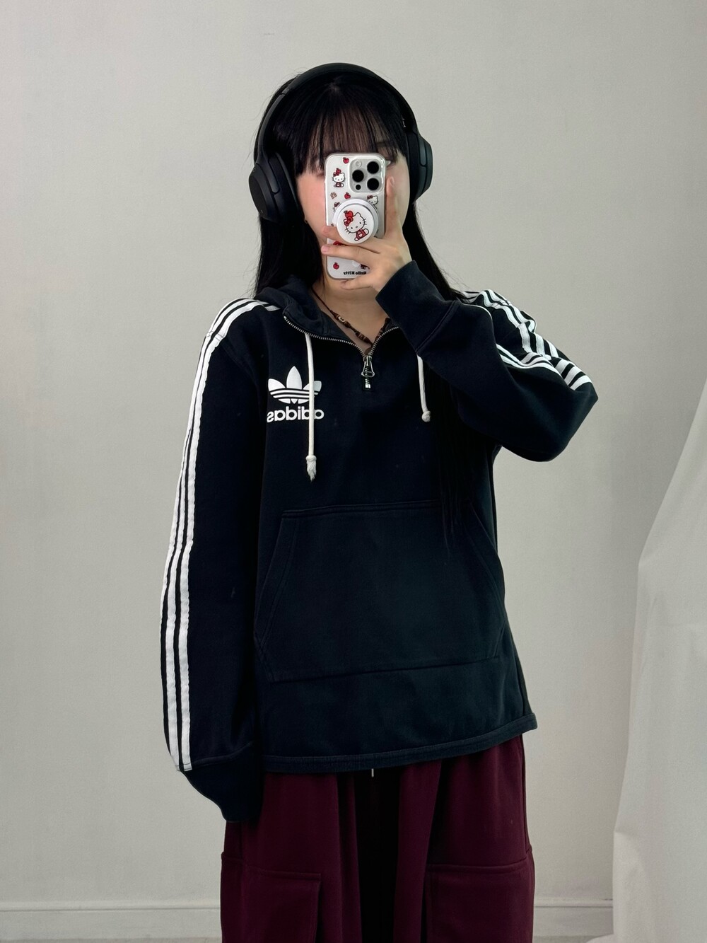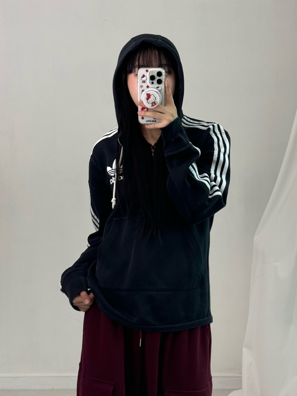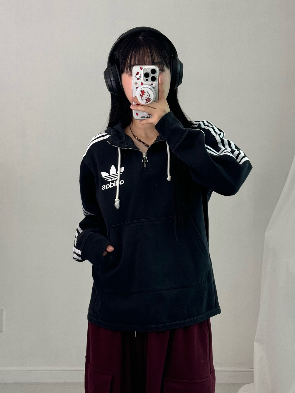 •가을에 스포티하게 툭 입어주시기 좋은 반집업 아디다스 후디에요ㅎㅎ 블랙 컬러에 빅파이어버드 디자인까지 너무 예뻐유..>,<